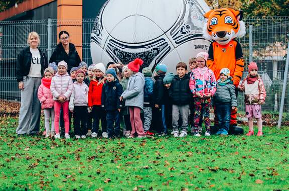 Wizyta przedszkolaków z Grębocic W środę gościliśmy liczną grupę przedszkolaków z Grębocic! Dzieci wzięły udział we wspólnym treningu z trenerem Akademii Pawłem Marszałkiem oraz zwiedzały stadion. 16-10-2025 08:01 autor: ŁJ