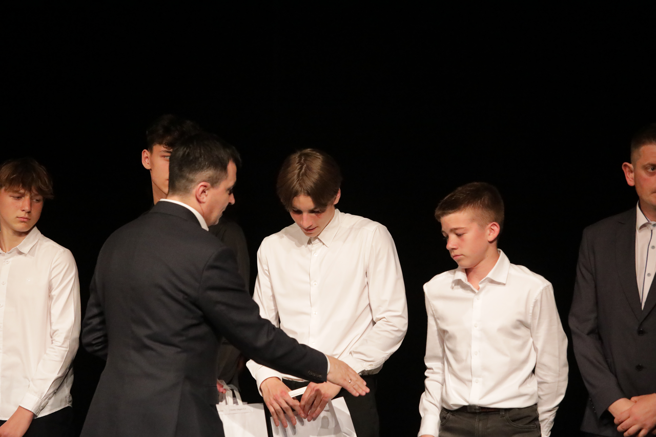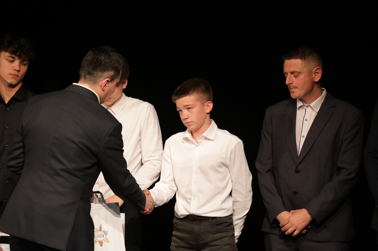 Nasi zawodnicy wyróżnieni przez prezydenta W Teatrze im. Andreasa Gryphiusa odbyło się Podsumowanie Roku Sportowego, podczas którego prezydent Rafael Rokaszewicz nagrodził wyróżniających się sportowców i trenerów z głogowskich klubów. 17-04-2025 04:06 autor: ŁJ - To jest cudowny widok patrzeć na najmłodszych i nieco starszych sportowców z naszego miasta, którzy przynoszą nam chlubę w trakcie sportowej rywalizacji. Jesteście ambasadorami Głogowa na arenach regionalnych, polskich i międzynarodowych - powiedział prezydent Rafael Rokaszewicz. Po stronie Chrobrego wyróżnienie przyznano ośmiu sportowcom. W tej grupie byli trenerzy Akademii Piłki Nożnej, trenujący w niej zawodnicy, ale też tacy, którzy etap szkolenia się w APN mają już w całości lub przynajmniej większości za sobą - mowa o regularnie grającym w pierwszym zespole 19-letnim Szymonie Bartlewiczu oraz o dwa lata młodszym Kamilu Grzelaku, który jesienią stał się kolejnym młodzieżowcem z debiutem w pierwszoligowym Chrobrym. Wszystkim wyróżnionym przedstawicielom pomarańczowo-czarnego Chrobrego i innych klubów / stowarzyszeń sportowych naszego miasta serdecznie gratulujemy! Wyróżnieni w Chrobrym: Grzelak Kamil Bartlewicz Szymon Szczęsny Filip Drożyński Michał Pietrzyk Tomasz Musialski Szymon Andrzej Kwaśnik - trener Jakub Wolny - trener Fot. Mateusz Komperda / myglogow.pl