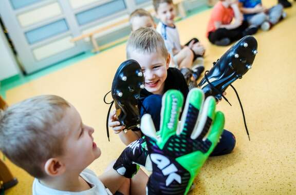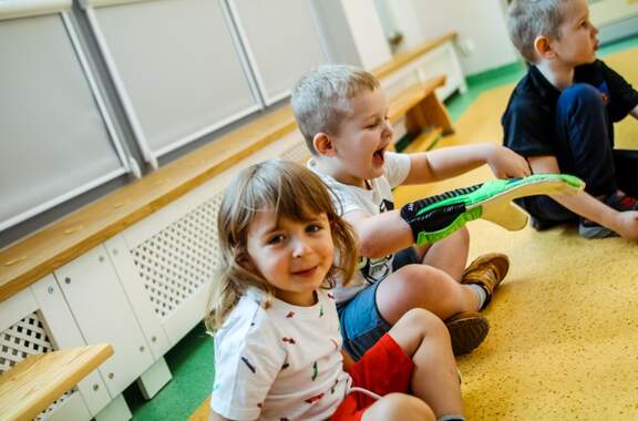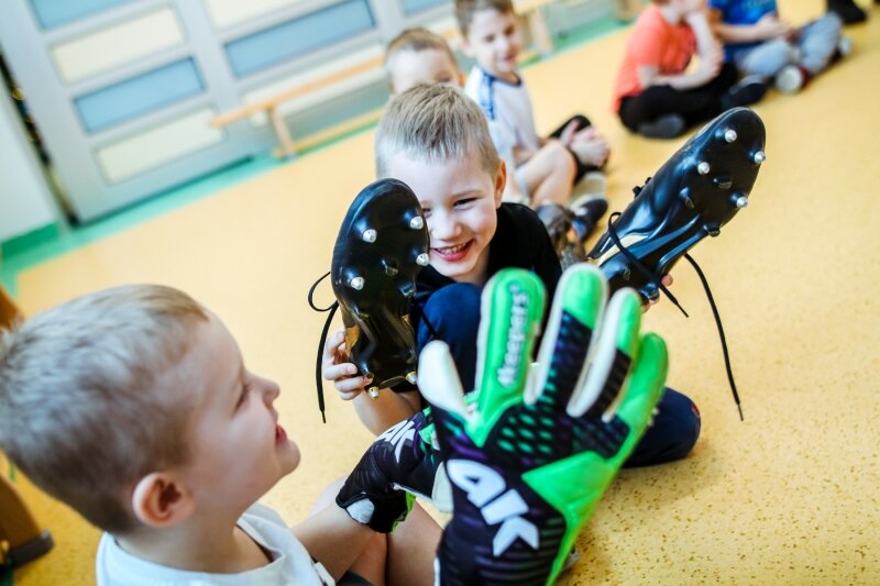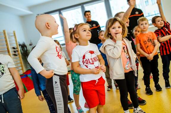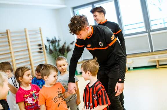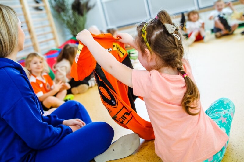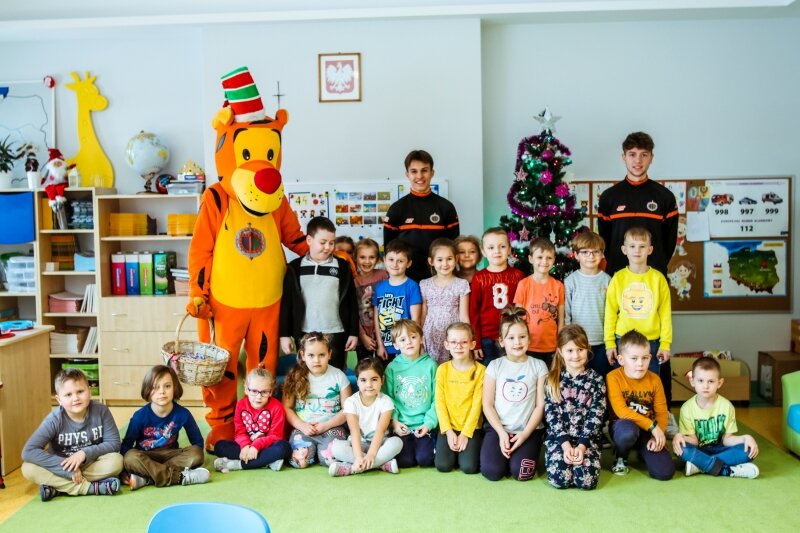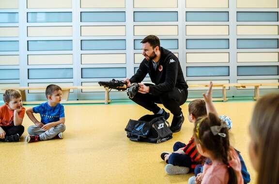 Mikołaj Lebedyński z juniorami w przedszkolu