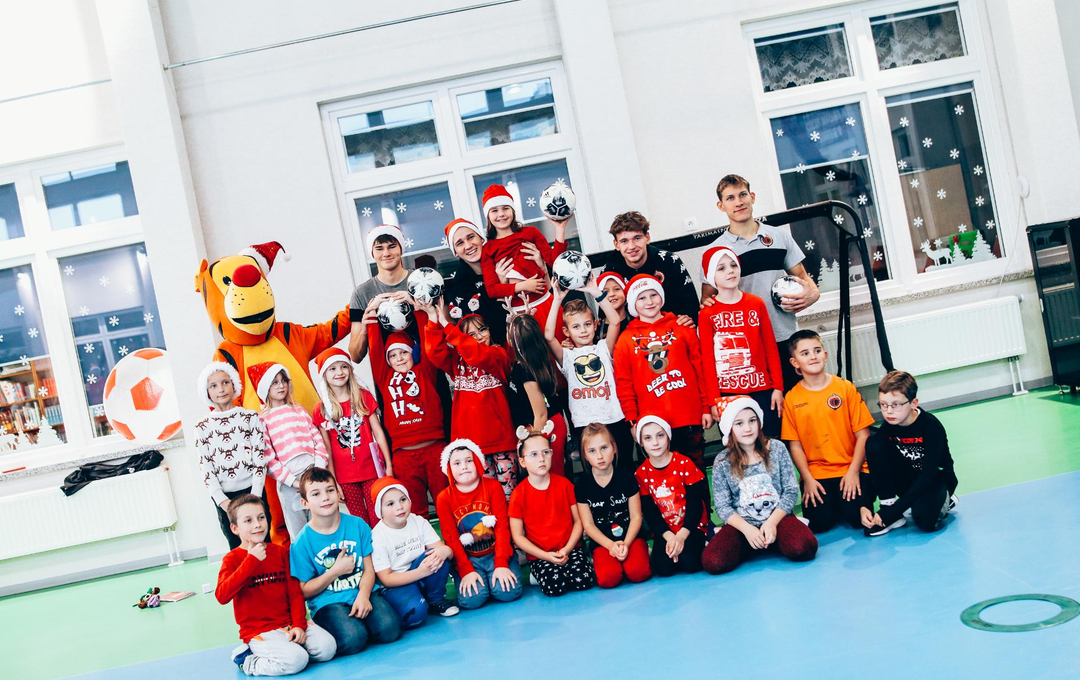 Mikołajkowy WF z piłkarzami Chrobrego