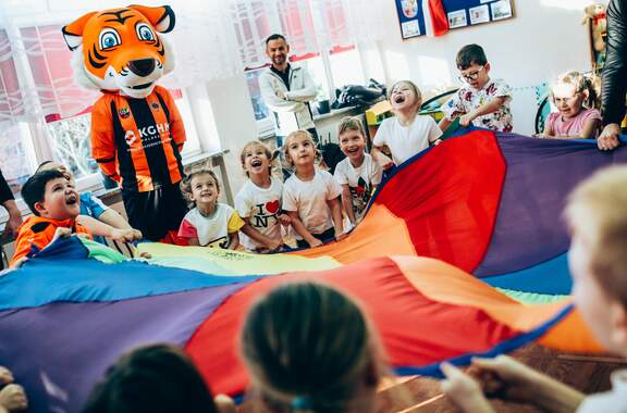 Nasz trener i Tygrysek w przedszkolu nr 10