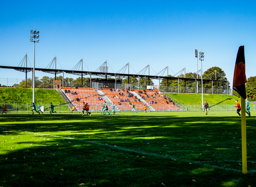 Przy stadionie są dwie płyty treningowe, boisko kryte oraz budynek zaplecza piłkarskiego. Znajdują się tam trzy szatnie, magazyn, pomieszczenia biurowe oraz dobrze wyposażona siłownia.