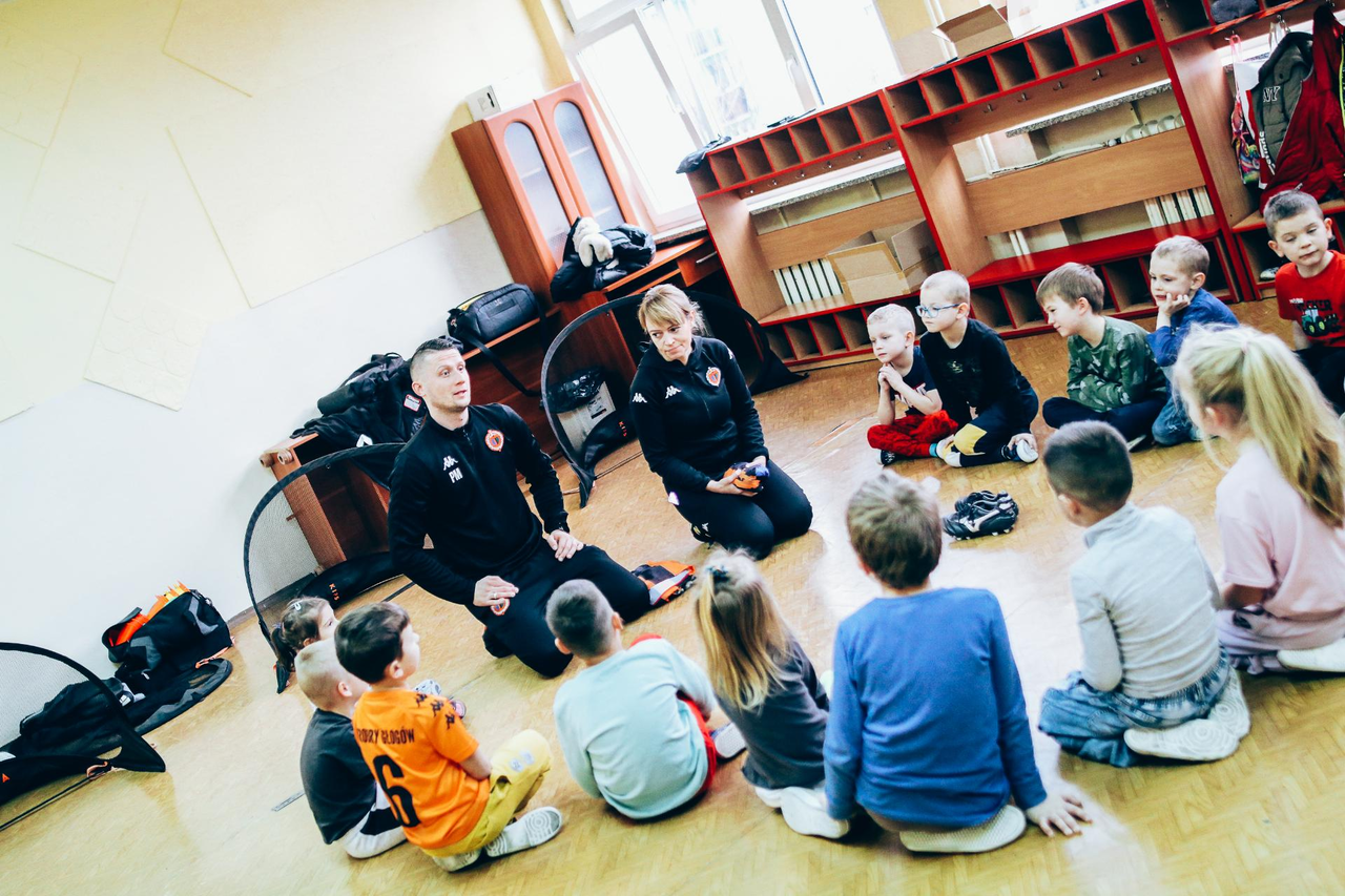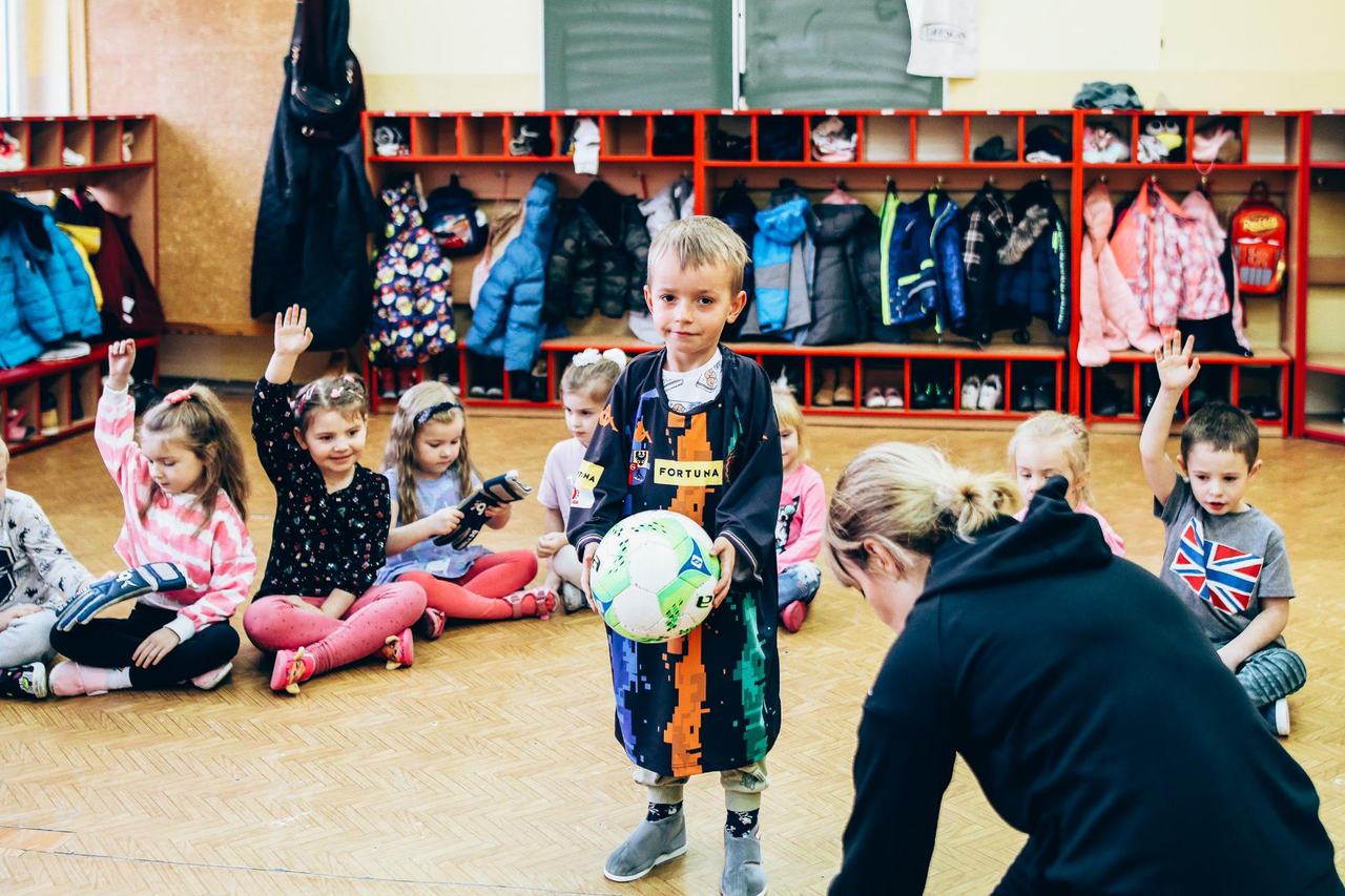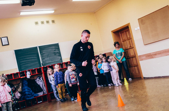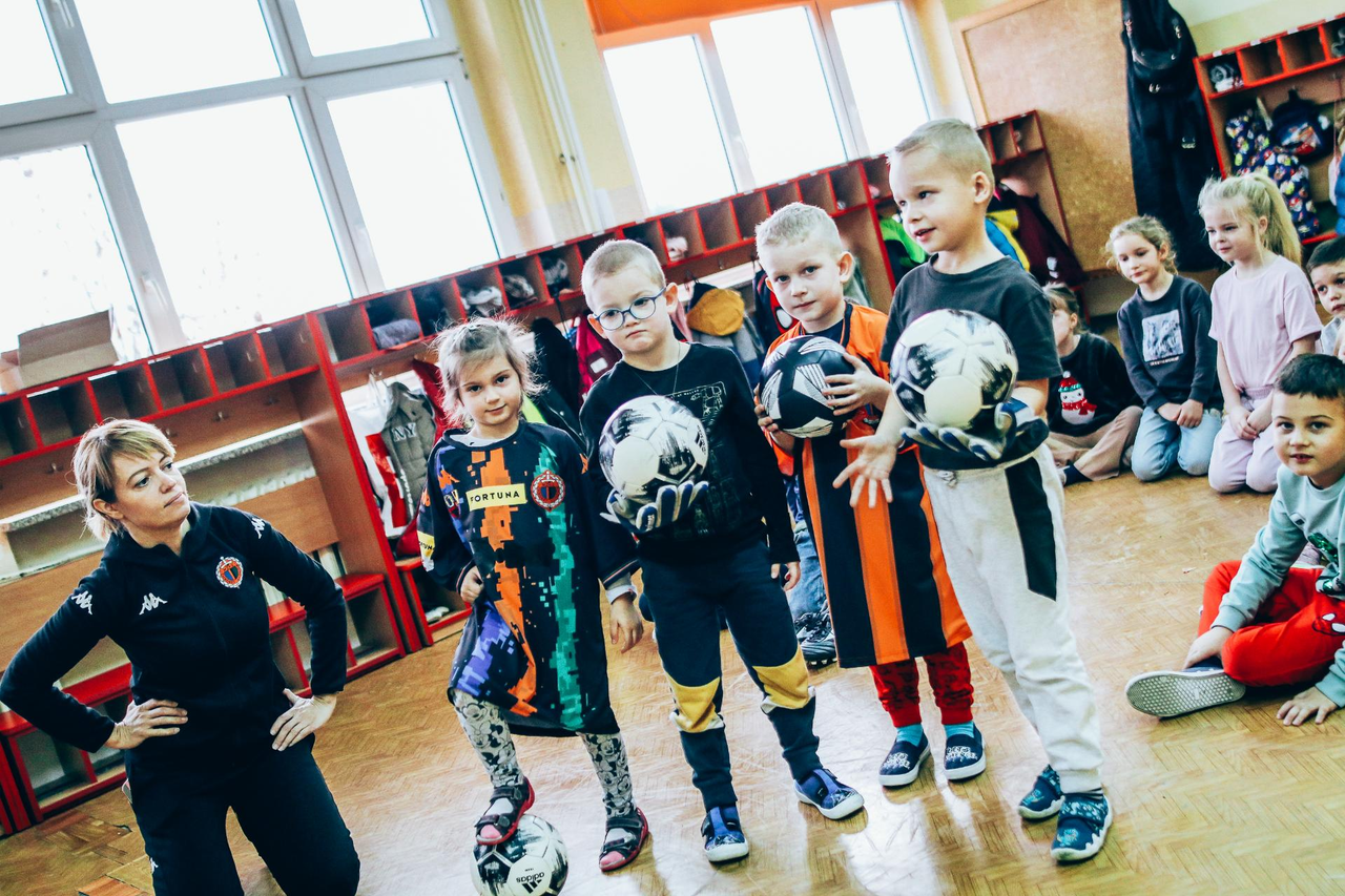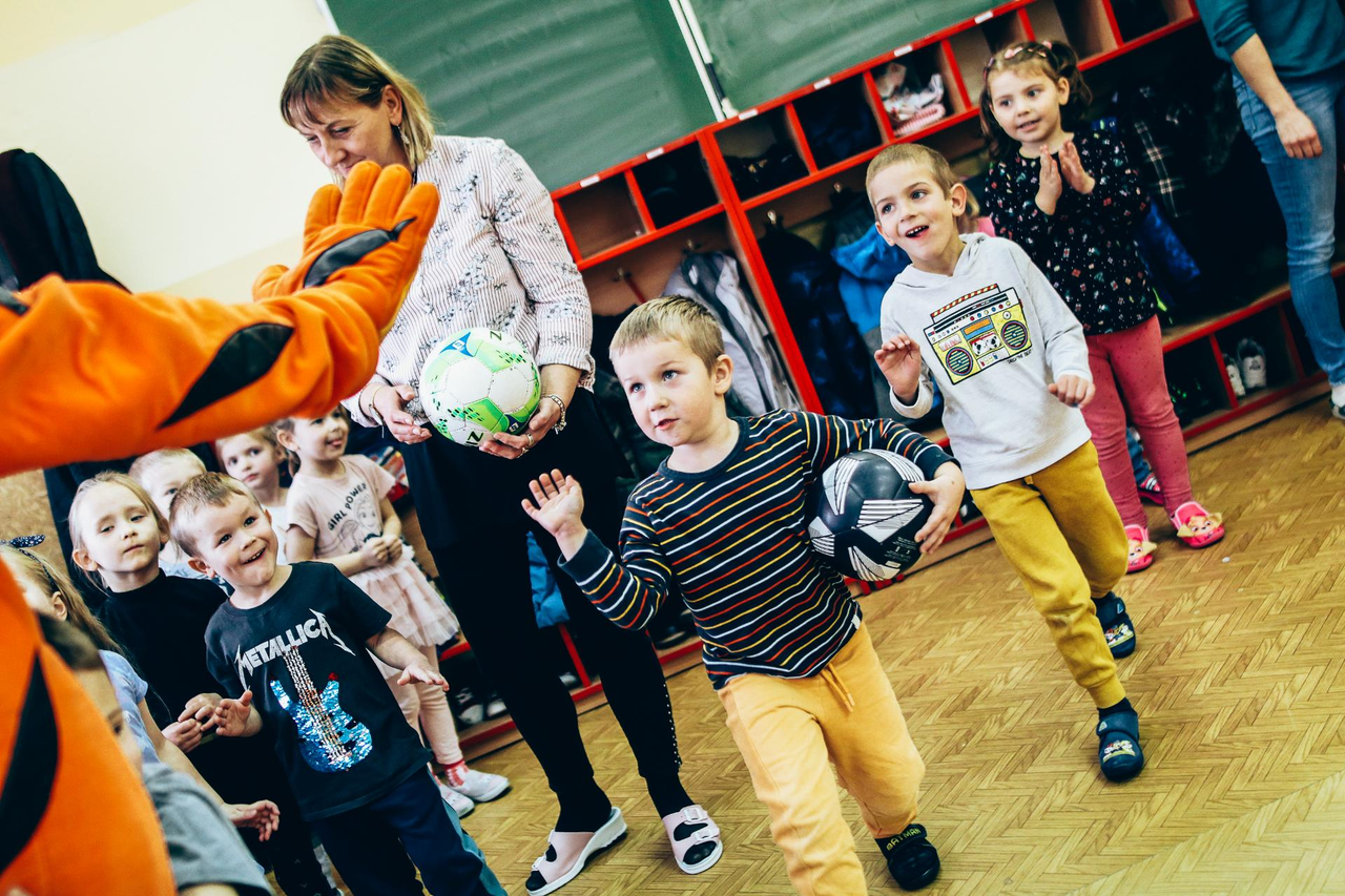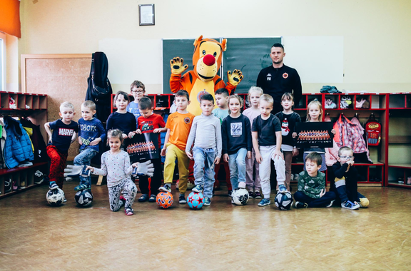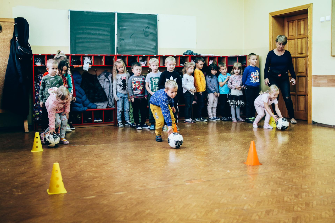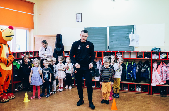 Trening Akademii z przedszkolakami z "piątki" Wraz z trenerem Chrobrego U-7 Pawłem Marszałkiem i klubową maskotką odwiedziliśmy dziś dzieci z Przedszkola Publicznego nr 5. 29-11-2022 11:25 autor: ŁJ Podzieliliśmy się wiedzą o piłce nożnej, bo wielu przedszkolaków wiedziało nawet z jakim numerem występuje Robert Lewandowski, pokazaliśmy stroje meczowe, specjalne buty z korkami i potrenowaliśmy z piłką, pokazując w ten sposób, jak wyglądają treningi w Akademii Piłki Nożnej Chrobrego dla najmłodszych. Zapraszamy do obejrzenia zdjęć z wizyty Akademii Piłki Nożnej u przedszkolaków.