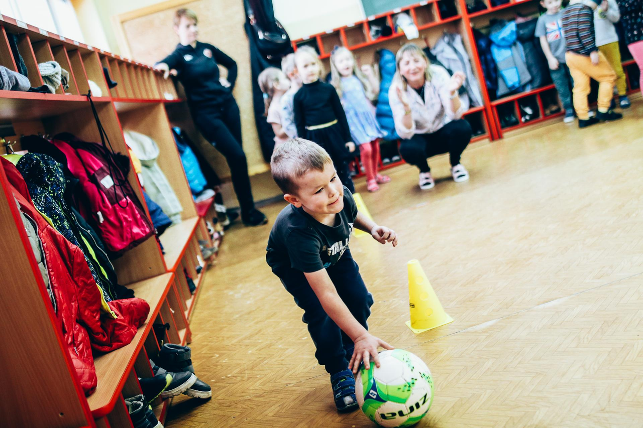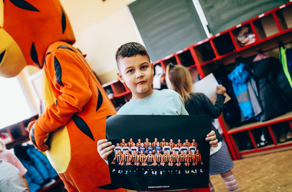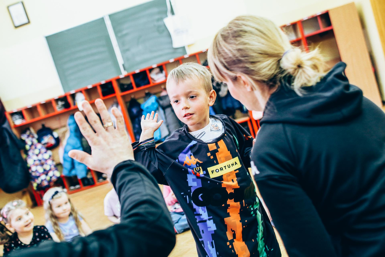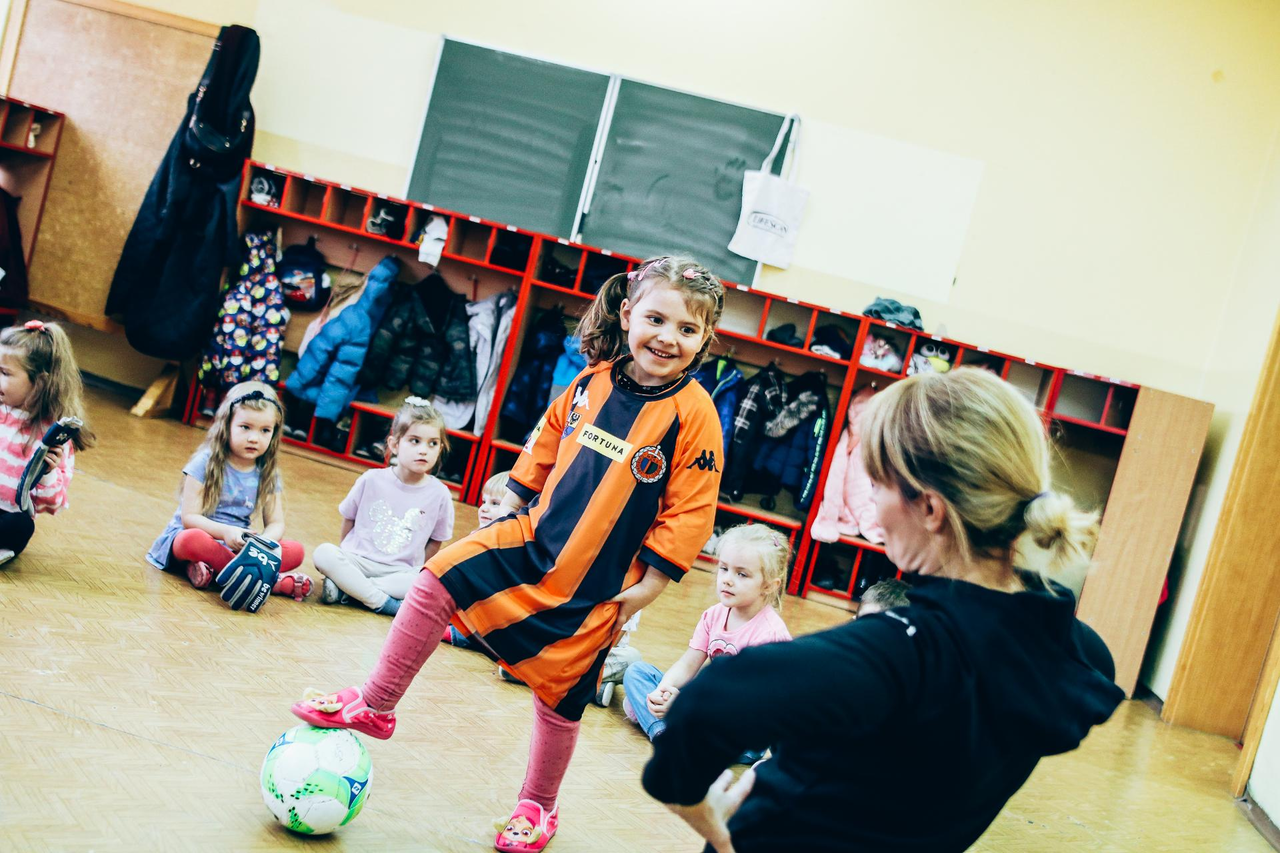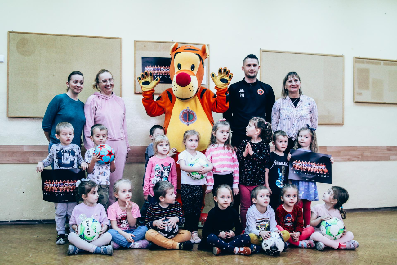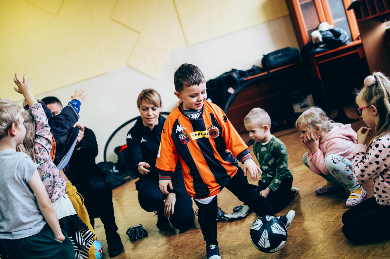 Trening Akademii z przedszkolakami z "piątki" Wraz z trenerem Chrobrego U-7 Pawłem Marszałkiem i klubową maskotką odwiedziliśmy dziś dzieci z Przedszkola Publicznego nr 5. 29-11-2022 11:25 autor: ŁJ Podzieliliśmy się wiedzą o piłce nożnej, bo wielu przedszkolaków wiedziało nawet z jakim numerem występuje Robert Lewandowski, pokazaliśmy stroje meczowe, specjalne buty z korkami i potrenowaliśmy z piłką, pokazując w ten sposób, jak wyglądają treningi w Akademii Piłki Nożnej Chrobrego dla najmłodszych. Zapraszamy do obejrzenia zdjęć z wizyty Akademii Piłki Nożnej u przedszkolaków.