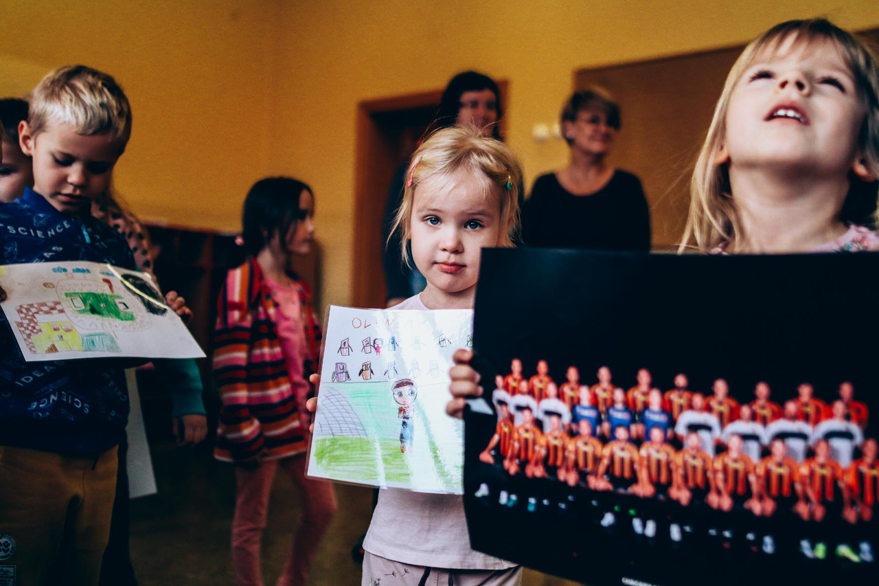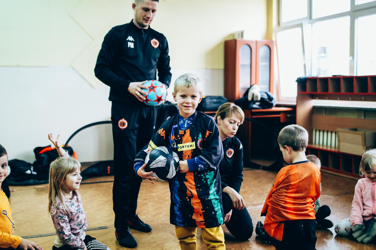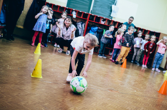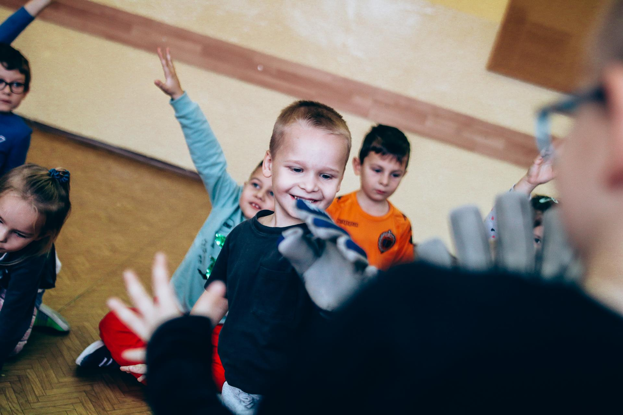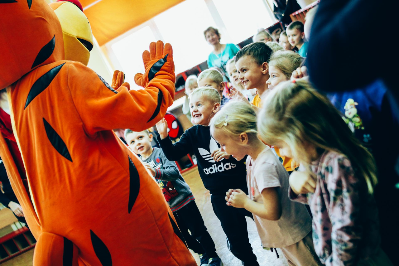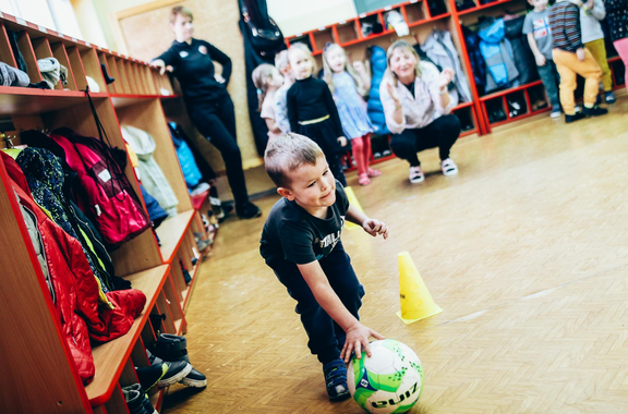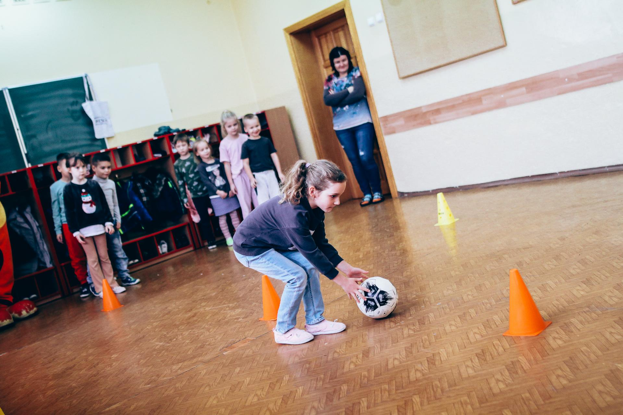Trening Akademii z przedszkolakami z "piątki" Wraz z trenerem Chrobrego U-7 Pawłem Marszałkiem i klubową maskotką odwiedziliśmy dziś dzieci z Przedszkola Publicznego nr 5. 29-11-2022 11:25 autor: ŁJ Podzieliliśmy się wiedzą o piłce nożnej, bo wielu przedszkolaków wiedziało nawet z jakim numerem występuje Robert Lewandowski, pokazaliśmy stroje meczowe, specjalne buty z korkami i potrenowaliśmy z piłką, pokazując w ten sposób, jak wyglądają treningi w Akademii Piłki Nożnej Chrobrego dla najmłodszych. Zapraszamy do obejrzenia zdjęć z wizyty Akademii Piłki Nożnej u przedszkolaków.