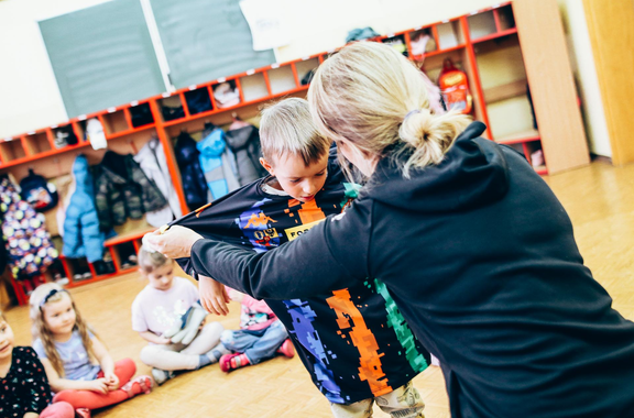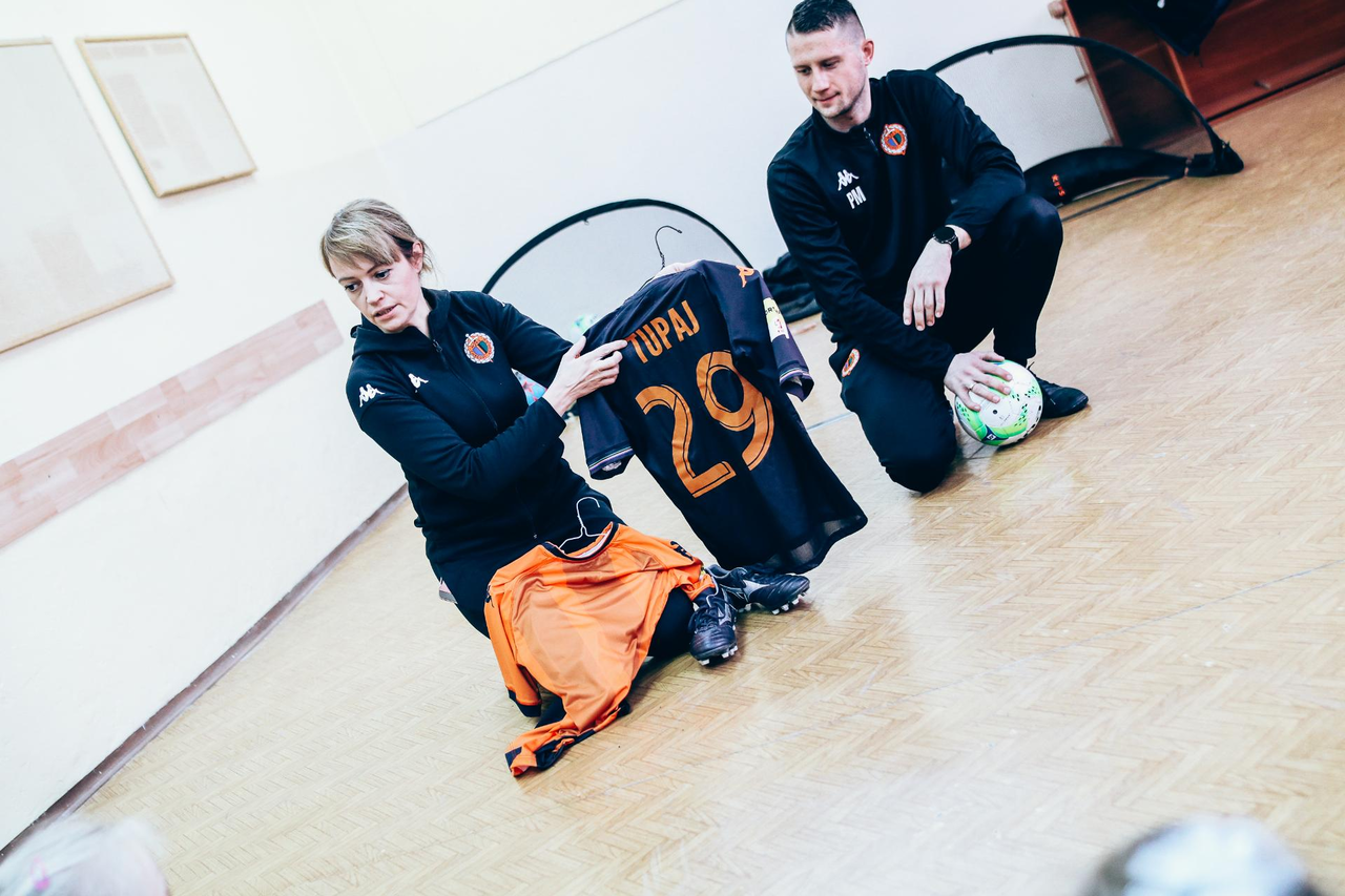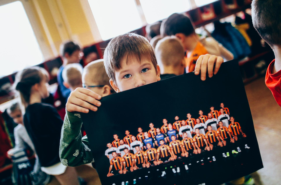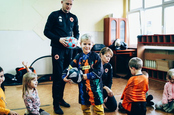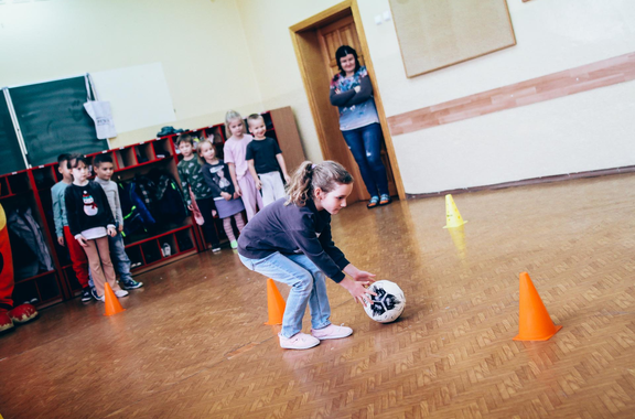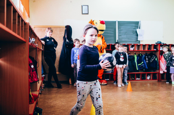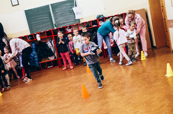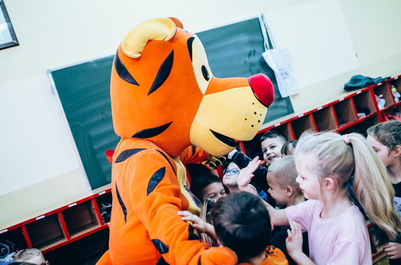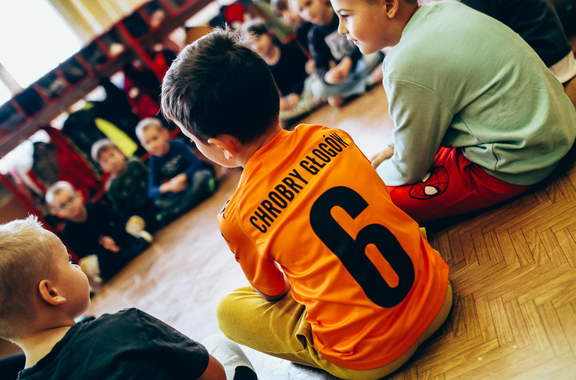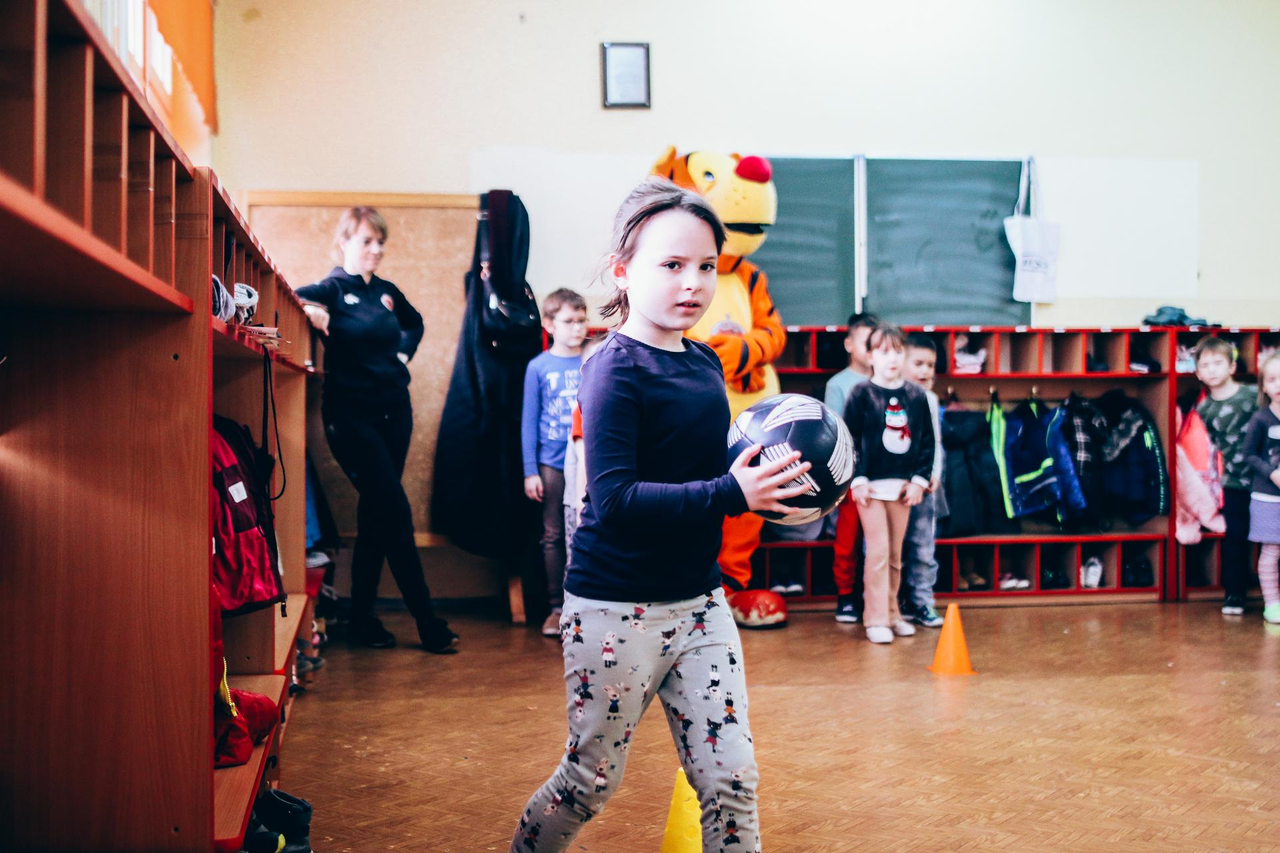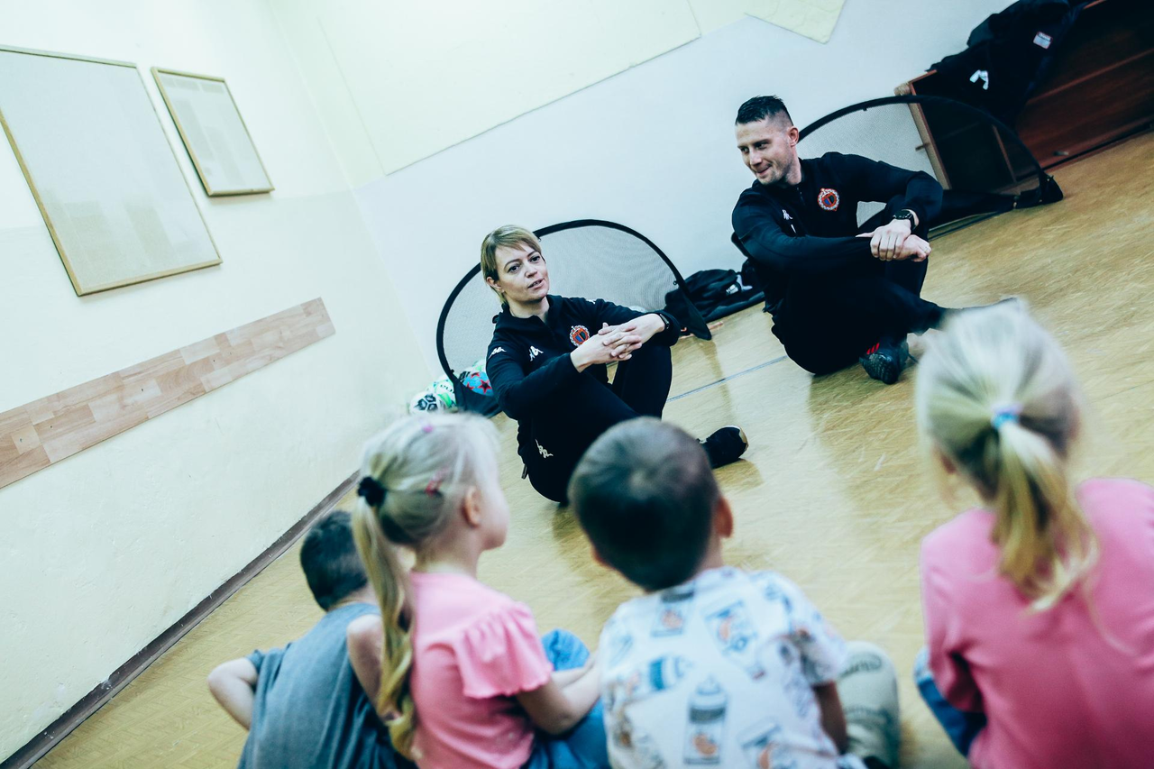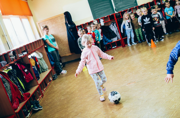 Trening Akademii z przedszkolakami z "piątki" Wraz z trenerem Chrobrego U-7 Pawłem Marszałkiem i klubową maskotką odwiedziliśmy dziś dzieci z Przedszkola Publicznego nr 5. 29-11-2022 11:25 autor: ŁJ Podzieliliśmy się wiedzą o piłce nożnej, bo wielu przedszkolaków wiedziało nawet z jakim numerem występuje Robert Lewandowski, pokazaliśmy stroje meczowe, specjalne buty z korkami i potrenowaliśmy z piłką, pokazując w ten sposób, jak wyglądają treningi w Akademii Piłki Nożnej Chrobrego dla najmłodszych. Zapraszamy do obejrzenia zdjęć z wizyty Akademii Piłki Nożnej u przedszkolaków.