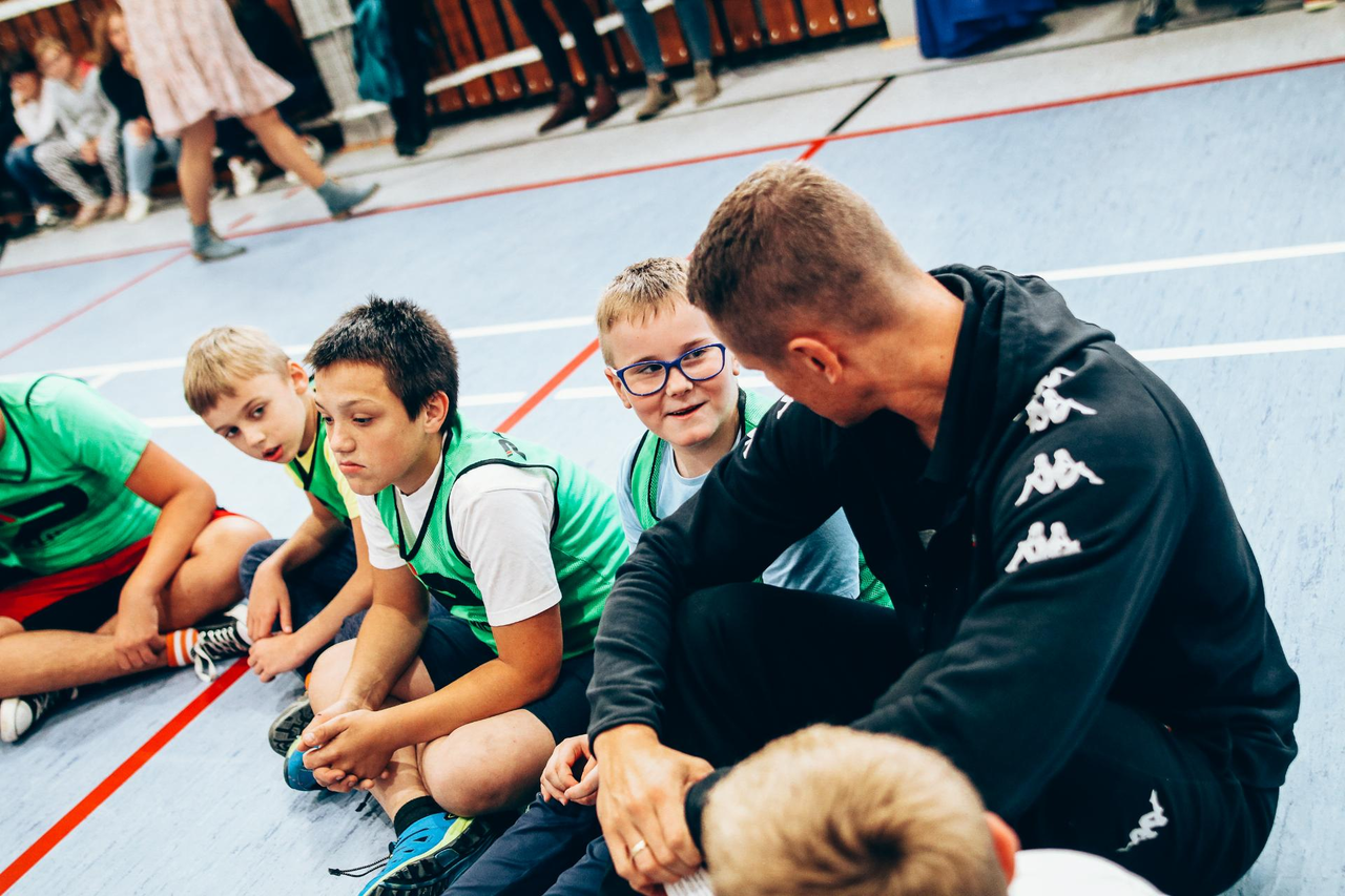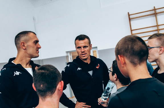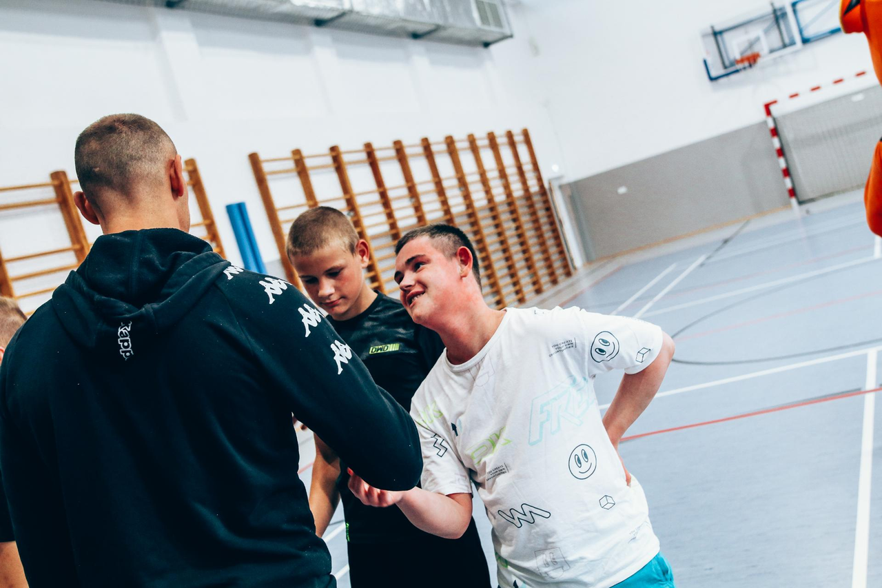 Trening w Zespole Placówek Szkolno-Wychowawczych Kamil Wojtyra, Michał Ilków-Gołąb i trener Chrobrego U-7 Paweł Marszałek w Zespole Placówek Szkolno-Wychowawczych w Głogowie. 28-09-2022 10:35 autor: ŁJ We wtorek mieliśmy przyjemność zorganizować piłkarski trening w Zespole Placówek Szkolno-Wychowawczych w Głogowie. W sąsiadującej z klubową bazą placówką pojawili się Michał Ilków-Gołąb, Kamil Wojtyra, trener jednej z najmłodszych grup w Akademii Piłki Nożnej Paweł Marszałek oraz klubowa maskotka. Miło było oglądać pełne zaangażowanie podopiecznych placówki i jeszcze milej będzie zobaczyć ich na stadionie podczas meczu, na który zostali zaproszeni.