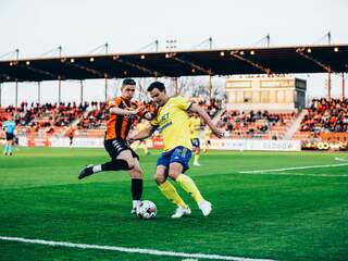 Dwa gole Wojciechowskiego i przełamanie Chrobrego II W 25 kolejce 3 Ligi Chrobry pokonał na wyjeździe Carinę Gubin 2:1. 22-04-2023 05:23 autor: ŁJ Drugi zespół Chrobrego Głogów w myśl zasady, że gra do końca, po serii pięciu meczów bez punktów przywiózł ich komplet z Gubina. Gospodarze objęli prowadzenie, ale Pomarańczowo-Czarni jeszcze w trakcie pierwszej połowy wyrównali, a po zmianie stron przechylili szalę na swoją stronę. Oba gole dla Chrobrego zdobył Tomasz Wojciechowski. Najpierw pewnie wykonał rzut karny, a następnie w zdecydowany sposób wykorzystał składną, zespołową akcję. Następny mecz w 3 Lidze wyjątkowo w piątek. 28 kwietnia o godz. 17.30 Chrobry zagra u siebie z Pniówkiem Pawłowice. CARINA GUBIN – CHROBRY II GŁOGÓW 1:2 (1:1) 1:0 Laskowski 26 1:1 Wojciechowski 41 (k) 1:2 Wojciechowski 60 CHROBRY II: Szafer – Praznovsky, Wawrzyniak, Jandziak (46 Hanc), Pieczarka (73 Wysiński), Marciniak (90 Maćkowiak), Wojciechowski (80 Zygmunt), Bartlewicz (73 Antkowiak), Górski J., Inoue, Ilków-Gołąb. ŻÓŁTE KARTKI (CHROBRY II): Antkowiak, Jandziak, Pieczarka. ZOBACZ TABELĘ 3 LIGI