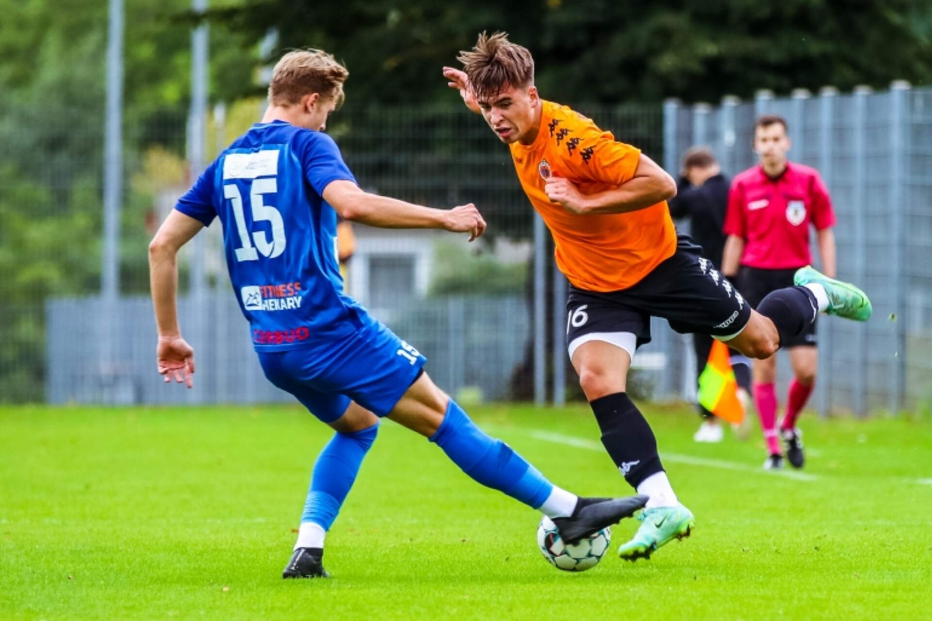 ChG II: zadecydowała ostatnia akcja. Porażka z Mewą Kunice Drugi Chrobry po emocjonującej końcówce bez punktów w meczu z Mewą Kunice. Rywale po bramce w doliczonym czasie gry wygrali 1:0.W pierwszej połowie obie drużyny miały po jednej, bardzo dobrej, ale niewykorzystanej okazji. W… 28-08-2021 07:00 autor: ŁJ Drugi Chrobry po emocjonującej końcówce bez punktów w meczu z Mewą Kunice. Rywale po bramce w doliczonym czasie gry wygrali 1:0.W pierwszej połowie obie drużyny miały po jednej, bardzo dobrej, ale niewykorzystanej okazji. W pierwszych minutach groźniejsi byli goście, po jednej z akcji trafiając w słupek. Z czasem głogowianie wypracowali sobie większą przewagę i mogli ją udokumentować golem. Po dograniu z prawej strony Gracjan Antkowiak, podobnie jak wcześniej rywale, uderzył jednak w słupek.Wszystkie emocje przeniosły się na końcowe minuty. W 86 minucie Mewa stanęła przed najlepszą okazją tej połowy, ale Bartek Szafer zaliczył w bramce interwencję meczu. 240 sekund później drugą żółtą kartką ukarano wchodzącego kilkanaście minut wcześniej Pawła Wilczyńskiego i goście kończyli w dziesięciu. Pomarańczowo-Czarni starali się to wykorzystać, a na bramkę rywali uderzał m.in. Adrian Marciniak, po czym piłkę pewnie chwycił Kamil Szawaryn. Wydawało się, że oba zespoły skończą z punktem, jednak w ostatniej minucie doliczonego czasu gry głogowianie sfaulowali, a po dośrodkowaniu z rzutu wolnego Bartka Szafera pokonał Rafał Szumański. Sędzia od razu po tym golu zagwizdał po raz ostatni, więc nawet nie było szansy na odpowiedź.Po trzech kolejkach Chrobry ma trzy punkty na swoim koncie. Teraz ten dorobek będzie mógł poprawić w Roztoce. Mecz z Granitem w sobotę 4 września.- Zdecydowanie musimy zmienić nasze myślenie i przestawić się na piłkę seniorską, zacząć grać odważniej i z większą pewnością siebie oraz odpowiedzialnością. Dziś to nie 90 minuta zadecydowała, tylko to, że nie potrafiliśmy złapać swojego rytmu. Musimy nabierać dalszego doświadczenia. Fakt, że dzisiejszy skład był chyba najmłodszy, tylko z dwójką nie będącą w wieku juniorskim, ale mimo tego mamy swoje ambicje i wiemy, że z meczu na mecz musimy grać coraz lepiej - powiedział trener Chrobrego II Sebastian Górski. CHROBRY II GŁOGÓW - MEWA KUNICE 0:1 (0:0)0:1 Szumański 90CHROBRY II: Szafer - Jurgo (77 Draczyński), Malczuk, Zarówny, Pieczarka, Marciniak, Antkowiak (77 Bartecki), Krawiec, Włodarczyk (46 Burda), Jóźwiak (63 Matysiak), Fryzowicz.MEWA: Szawaryn - Durkalec, Petlakowski, Szumański, Chodyga, Rokosz, Kowalczyk (46 Opaluch), Krupa (72 Czuba), Plebaniak (72 Wilczyński), Kaczmarek, Smolny (60 Cichocki).ŻÓŁTE KARTKI: Antkowiak, Marciniak, Matysiak - Krupa, Wilczyński.CZERWONE KARTKI: Wilczyński 90 (Mewa - za faul).