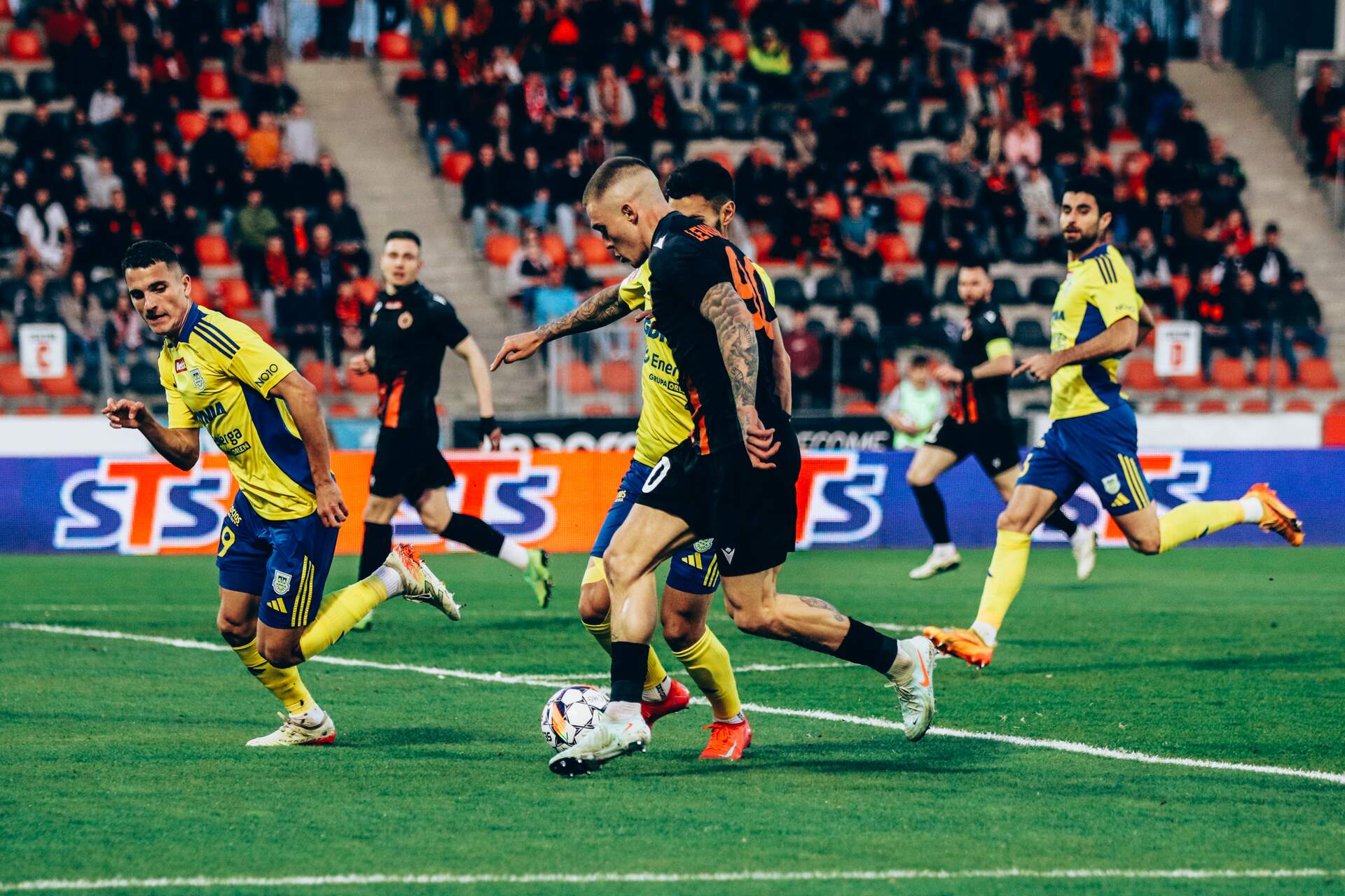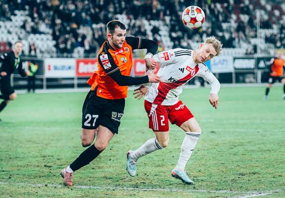 Punkt z liderem Choć Chrobry ma punkt po zakończonym na 2:2 starciu z liderem, pozostał… niedosyt. Jeszcze na kilku minut przed końcem to Pomarańczowo-Czarni byli na prowadzeniu. 12-04-2025 09:19 autor: ŁJ Zaczęło się od groźnej akcji ze strony Arki, bo w 10 minucie po wybiciu piłki przez Pawła Lenarcika próbował poprawić to Adam Ratajczyk, ale nie zdołał tego wykorzystać. W 14 minucie sędzia Tomasz Musiał odgwizdał natomiast faul na Pawle Tupaju w polu karnym, lecz po długiej analizie i wsparciu się VAR-em odwołał swoją decyzję. Nie było za to kontrowersji w 21 minucie. Goście zrobili użytek z rzutu wolnego, a po wrzutce pechowo interweniował Mikołaj Lebedyński, który tym samym bardzo niefortunnie pokonał swojego bramkarza. Po tym gdynianie starali się i mogli pójść za ciosem. Paweł Lenarcik w sobie znany sposób skierował futbolówkę na poprzeczkę po główce Szymona Sobczaka. Skapitulował w 28 minucie po strzale Adama Ratajczyka, lecz 0:2 utrzymało się tylko przez chwilę. Sędzia po raz drugi w tym meczu posiłkował się informacjami z wozu VAR i ostatecznie bramki nie uznał. Chrobry tylu okazji nie miał, choć Damian Węglarz musiał interweniować po strzale z rzutu wolnego w wykonaniu Myroslava Mazura. Po 45 minutach rywale prowadzili jedną bramką i trzeba przyznać, że zasłużenie. W drugiej połowie Chrobry wziął się w garść i efektownie odwrócił losy spotkania. Co zrobił w 61 minucie Mateusz Lewandowski, to trzeba ponownie zobaczyć. Przewrotką pokonał Damian Węglarza, który nawet pomimo parady między słupkami nie zdołał zapobiec utracie gola – zdecydowanie gola kolejki*. W tak widowiskowy sposób głogowianie doprowadzili do wyrównania. I poszli za ciosem. Po kilku kolejnych minutach wywalczyli rzut rożny. Dobrą wrzutką popisał się niezawodny w tym elemencie Patryk Mucha, a główką Przemysław Szarek. To po niej próbował jeszcze coś z tym zrobić Szymon Sobczak, ale tym tylko trafił do własnej bramki. Szkoda końcówki. Mocne wejście zaliczył były gracz Chrobrego Michał Rzuchowski. Wszedł na boisko w 87 minucie, a już w 88 minucie główkując po rzucie rożnym dał swojej drużynie remis. Na fali po tym Arkowcy przycisnęli jeszcze w doliczonym czasie gry, ale ofiarnie walczący przynajmniej o ten punkt nie pozwolili na więcej i mecz zakończył się na remisie 2:2. W następnej, świątecznej kolejce Chrobrego czeka daleki wyjazd do Łęcznej. Spotkanie z Górnikiem zaplanowano na wielkanocny poniedziałek na godz. 12.00. *bramka została uznana samobójczą Damiana Węglarza