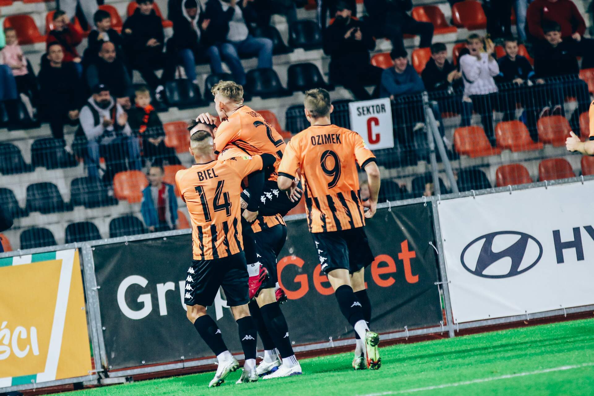 Zdeterminowany Chrobry z kompletem punktów Co za trzymający w napięciu do końca mecz! Chrobry Głogów pokonał Arkę Gdynia 1:0 i tym samym zanotował trzecie z rzędu spotkanie bez porażki. 23-09-2023 09:47 autor: ŁJ Pierwsza połowa należała pod pewnymi względami do Arki, bo to ona dłużej utrzymywała się przy piłce i częściej podchodziła pod pole karne. Groźnie było w 13 minucie, gdy uderzał Kacper Skóra, ale wtedy dopisało szczęście, bo futbolówka odbiła się od słupka. Później spróbował jeszcze ten sam zawodnik, lecz przymierzył za wysoko. Głogowska defensywa po raz kolejny była szczelna. Goście, jak na posiadaną przewagę, z pewnością mogli liczyć na więcej z przodu. Ale nie z tak dobrze dysponowanym na tyłach Chrobrym. I do tego ta skuteczność. W 40 minucie piłkę dostał Mikołaj Lebedyński, szybko popędził z nią na bramkę gdynian i strzałem z kilkunastu metrów, jak tu u niego - z nieoczywistej pozycji, pokonał Pawła Lenarcika. Głogowianie z jednobramkowym prowadzeniem i stuprocentową skutecznością udali się na przerwę. Po zmianie stron, cóż, bywało ciężko. Chrobry mając korzystny rezultat musiał go bronić. Co innego Arka, która szybko ruszyła do ataku. Już w 50 minucie wypracowała rzut karny, jednak po strzale Karola Czubaka świetną interwencją popisał się Damian Węglarz. A gdy kilka minut później znów strzelał Czubak stało się coś, co najlepiej pokazuje determinację zespołu. Najpierw futbolówkę wybijał z linii bramkowej Michał Michalec, a gdy goście zdołali dobić, znów ofiarnie przy swojej bramce interweniowali głogowianie. Skoro to nie wpadło, z Arki jakby uszło trochę powietrza, choć trzeba przyznać, że głogowska defensywa była dziś bardzo twarda. W 88 minucie drugą żółtą kartkę otrzymał Kasjan Lipkowski i choć sędzia do regulaminowego czasu gry doliczył aż siedem minut, wobec skutecznej blokady Pomarańczowo-Czarnych rywalizująca w dziesięciu drużyna z Gdyni nie była już w stanie nic zrobić. Grafik na przyszły tydzień jest bardziej napięty. Już we wtorek mecz Pucharu Polski i daleka wyprawa do Puław (spotkanie z Wisłą rozpocznie się o godz. 17.00). Natomiast w sobotę wydarzenie tygodnia i derby w Legnicy z Miedzią (godz. 15.00).