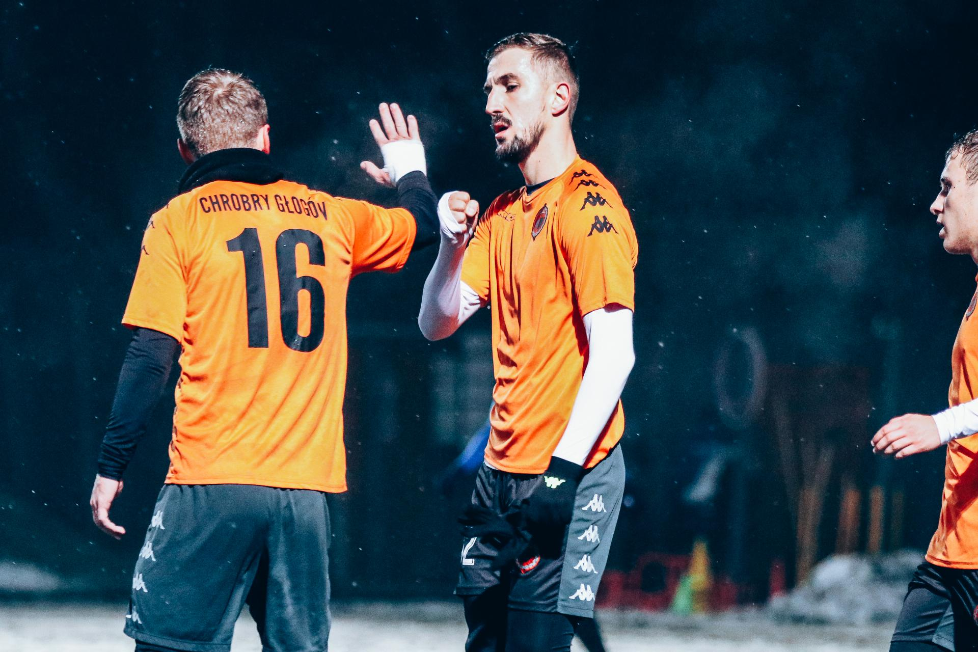 Strzelecki początek roku 7:1 w pierwszym tegorocznym sparingu, a w nim gole czołowych zawodników, jak i debiutujących młodzieżowców. 18-01-2023 07:10 autor: ŁJ W ubiegłorocznym sparingu z Błękitnymi Stargard Chrobry pokonał rywali 6:0. Tym razem, choć już w zupełnie innym zestawieniu, jeszcze bardziej ten wynik podkręcił. Chrobry – Błękitni 7:1 w pierwszej z sześciu gier kontrolnych. W meczu z Błękitnymi z powodu urazów udziału nie wzięli Michał Ilków-Gołąb, Paweł Tupaj, Oliver Praznovsky i Jakub Kuzdra. Dwaj pierwsi wracają do dyspozycji po wielomiesięcznych kontuzjach, dwaj ostatni nabawili się ich w trakcie przygotowań, ale w ich przypadku nie ma dużego zagrożenia. Poza kadrą na ten mecz byli też mający tylko i wyłącznie dzień treningowy Michał Michalec, Karol Dybowski oraz Mateusz Bochnak. Szansę otrzymali za to młodzi z klubowej Akademii i Szkoły Mistrzostwa Sportowego, w tym debiutujący Natan Malczuk, Adrian Tworzydło czy Szymon Bartlewicz. Dwaj pierwsi swój występ zakończyli zresztą z bramką na koncie. W pierwszych 45 minutach od strzeleckiej strony wykazał się Kamil Wojtyra. Stary rok zakończył na dwóch trafieniach w ligowym meczu ze Stalą Rzeszów, nowy zaczyna w identyczny sposób - od dwóch. Bramkę po dośrodkowaniu z rzutu rożnego dołożył też Natan Malczuk i po 45 minutach Pomarańczowo-Czarni prowadzili 3:0. W drugiej odsłonie powiększali bramkową przewagę. Dobrą dyspozycję napastników potwierdził Rafał Wolsztyński, który podobnie jak Kamil Wojtyra również dwukrotnie pokonał bramkarza rywali. Autorem najładniejszego trafienia był strzelający podcinką Sebastian Steblecki, a autorem ostatniego, ustalającego rezultat pojedynku Adrian Tworzydło. Wcześniej, przy stanie 4:0, gościom udało się wpisać na listę strzelców. Między słupkami głogowskiej bramki stał wtedy jeden z dwóch testowanych w tym pojedynku piłkarzy. Drugi test zaplanowano na sobotę w Żmigrodzie. Tam o godz. 12.00 rozpocznie się spotkanie z drugoligowym KKS-em Kalisz.
