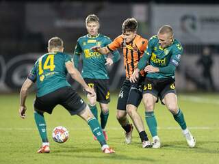 Porażka z GKS-em Nie wyszedł Chrobremu ostatni domowy mecz tego roku. Mimo kilku bardzo dobrych szans, to GKS Katowice wygrywa to spotkanie. Na cztery gole katowiczan Pomarańczowo-Czarni zdobyli jednego. 16-12-2023 04:08 autor: ŁJ Jako pierwszy sprawdzony został Damian Węglarz, który w 6 minucie obronił strzał z dystansu w wykonaniu Antoniego Kozubala. Chrobry odpowiedział na to jeszcze bardziej konkretnie, a w przeciągu 120 sekund dwie bardzo dobre okazje miał Szymon Bartlewicz. W 10 minucie uderzał z rzutu wolnego, lecz górą był interweniujący Dawid Kudła. Natomiast w 12 minucie jego wolej po wrzutce z prawej strony Bartosza Biela okazał się nieznacznie niecelny. Goście wyszli na prowadzenie w 15 minucie. Piłkę na połowie głogowian przechwycił Antoni Kozubal. Najpierw trafił w słupek, ale będącym w dobrym miejscu poprawił strzał i dał swojej drużynie prowadzenie. W 18 minucie kolejną szansę miał Szymon Bartlewicz - niecelnie główkujący po ładnej akcji Pomarańczowo-Czarnych. Chwilę później działo się po drugiej stronie, gdzie Damian Węglarz przerzucił futbolówkę po próbie zza pola karnego Sebastiana Bergiera. Głogowianie zdołali wrócić do gry w samej końcówce. Zza szesnastki przymierzył Patryk Mucha, co zostało zablokowane przez rywala ręką i już w polu karnym. Sędzia jednak nie od razu wskazał na jedenasty metr. Zdecydował się skorzystać z analizy VAR i przy pomocy systemu nabrał co do tego pewności. Pewnym egzekutorem tego stałego fragmentu był niezawodny Mikołaj Lebedyński i to jego dziewiąty gol w tym sezonie. Niestety, tym razem nie dał prowadzenia na dłużej. Jeszcze w 45 minucie katowiczanie ponownie objęli prowadzenie, a Damiana Węglarza skuteczną główką pokonał były zawodnik Chrobrego Oskar Repka. Być może to przez ten gol do szatni, ale w drugiej połowie się posypało. W 49 minucie trzecią bramkę dla GKS-u zdobył Arkadiusz Jędrych, a w 53 minucie czwartą - a swoją drugą - Antoni Kozubal. Przy takim rezultacie już po ośmiu minutach drugiej połowy ciężko o jakikolwiek zryw. Co prawda bramkową sytuację miał jeszcze Bartosz Biel, a już do 63 minuty trener Piotr Plewnia dokonał pięciu zmian, ale do końca pojedynku niż złego dla gości się nie wydarzyło i to oni mieli lepsze okazje na kolejne trafienia, czemu zapobiegał Damian Węglarz. W tym roku Chrobry jeszcze raz stanie przed szansą na trzy punkty i przekroczenie bariery 20 po całej jesieni. We wtorek rozegrany zostanie zaległy, wyjazdowy mecz z Zagłębiem Sosnowiec. Fot. 400mm.pl