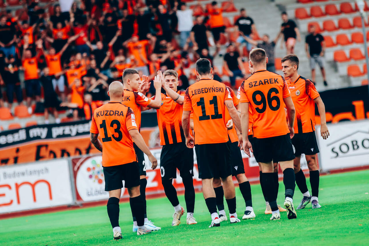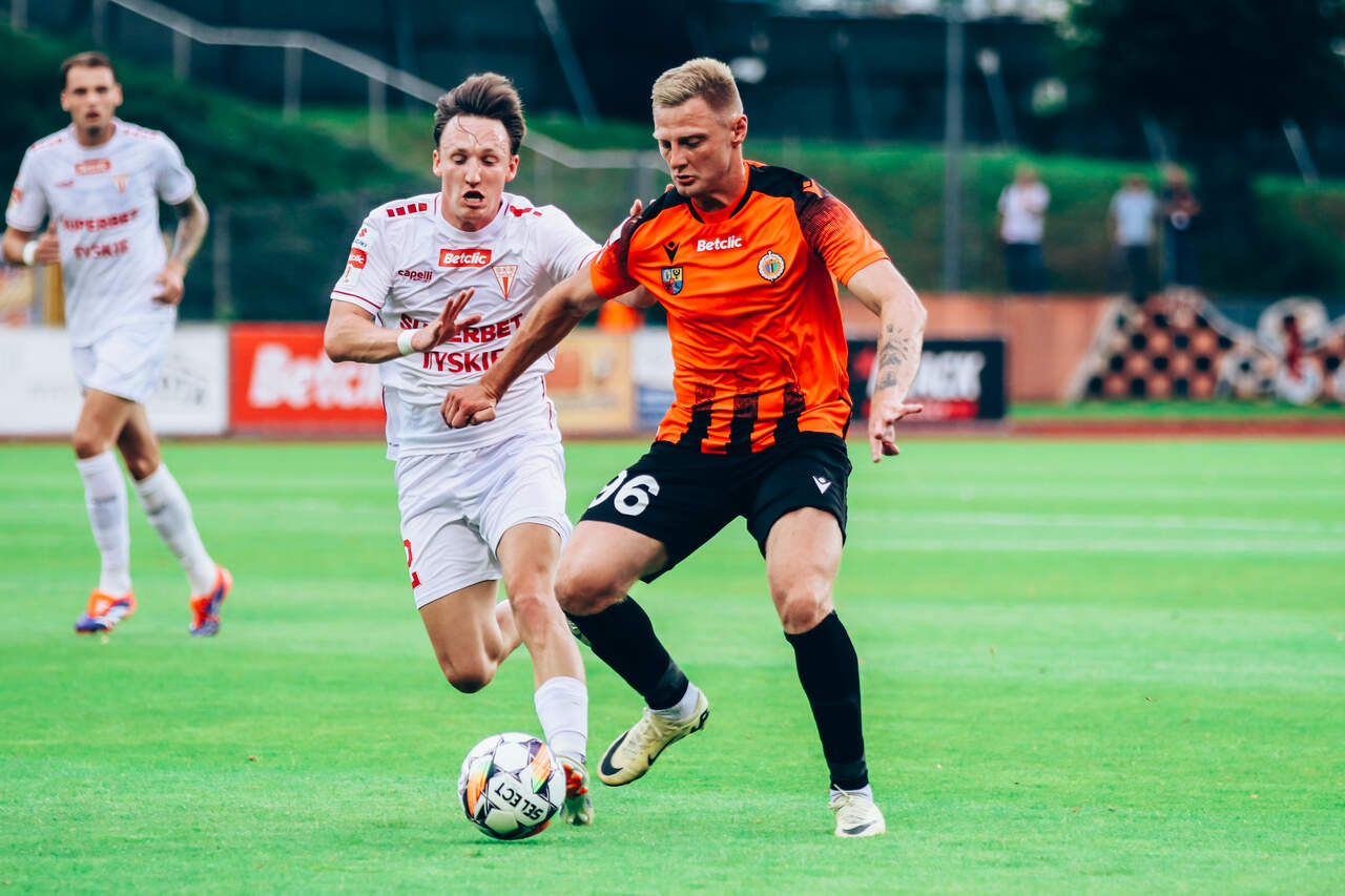 Czwarty punkt Chrobrego Chrobry remisuje z GKS-em Tychy 0:0 w 4 kolejce Betclic 1 Ligi. Dla tyszan to czwarty remis w czwartym meczu tego sezonu, dla głogowian punkt po dwóch spotkaniach bez zdobyczy. 09-08-2024 07:38 autor: ŁJ W pierwszych minutach to goście postraszyli, oddając dwa groźne uderzenia. Krzysztofa Wróblewskiego próbował pokonać m.in. Maksymilian Dziuba, ale głogowski golkiper był na posterunku. Z zespołu, który poczuł zagrożenie, Chrobry szybko stał się zespołem, który sam to zagrożenie stwarzał. W 13 minucie niecelnie po rzucie rożnym przymierzył Mavroudis Bougaidis. Futbolówka nie zmierzała też w światło bramki po uderzeniach Patryka Muchy w 17 minucie i Patryka Szwedzika w 23 minucie. Musiało to być jednak niebezpieczne dla gości, choć odpowiedzieli czymś podobnym. W 27 minucie Wróblewski musiał interweniować po raz kolejny, gdy zaskoczyć go starał się tym razem Mamin Sanyang. Tak więc sytuacje były, lecz to nie przekładało się na gole. Po 45 minutach utrzymywał się bezbramkowy remis. Po zmianie stron żadna z drużyn już nie miała tyle z przodu. W Chrobrym na listę strzelców mógł wpisać się Sebastian Bonecki, po którego strzale z dystansu piłka poszybowała powyżej poprzeczki. Najbliżej bramki byli jednak rywale. W 64 minucie sędzia Piotr Rzucidło podyktował rzut karny, a do piłki ustawionej na jedenastym metrze podszedł Wiktor Żytek. Z tego pojedynku zwycięsko wyszedł jednak Krzysztof Wróblewski, który tym samym wyrósł na bohatera bezbramkowego meczu. W dalszej części spotkania nie wydarzyło się już nic, co mogłoby zmienić rezultat. Tak jakby był to pojedynek równorzędnych ekip, które podchodzą do siebie z respektem i nie ryzykują mocnego ruchu do przodu. Skończyło się na 0:0 i na czwartym punkcie dla obu drużyn w tym sezonie Betclic 1 Ligi. W następnej kolejce Chrobrego czeka daleki wyjazd do Stalowej Woli. Mecz ze Stalą w piątek 16 sierpnia o godz. 18.00.