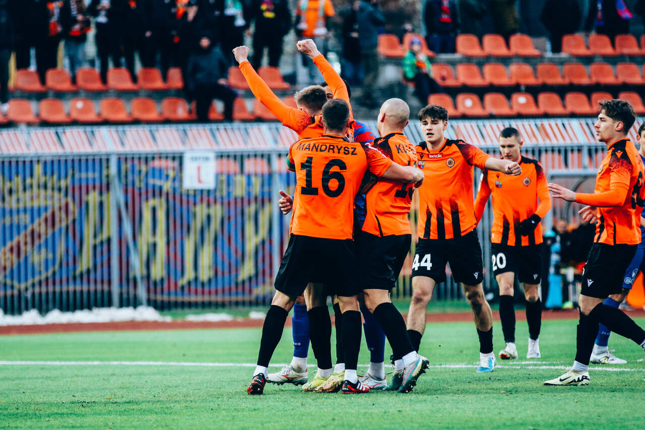 Podział punktów Chrobry otworzył mecz, jak jeszcze ani razu w tym sezonie, bo z najszybciej zdobytym golem, ale to nie wystarczyło. Chrobry – Odra 1:1. 23-11-2024 04:45 autor: ŁJ Chrobry miał znakomity początek. Już w 6 minucie objął prowadzenie. Sprawnie wywalczał sobie stałe fragmenty, a po jednym z nich i wrzutce Patryka Muchy celnie główkował Przemysław Szarek. Po tym głogowianie jakby oddali inicjatywę. Nie można powiedzieć, że Odra wyraźnie przeważała, ale wykorzystała jedną z nielicznych w tej części sytuacji. Niespełna kwadrans przed zejściem do szatni sędzia przerwał grę i zdecydował się na wsparcie systemu VAR. Po analizie wskazał na rzut karny, dostrzegając przy tej pomocy rękę Alberta Zarównego w szesnastce. Po chwili na gola zamienił to najlepszy strzelec opolan – Edvin Muratovic i od tego momentu na stadionie w Głogowie był remis. Z przebiegu gry wydawało się, że to rezultat oddający boiskowe poczynania obu drużyn. Po zmianie stron spotkanie nie uległo zmianie. Żadna z drużyn nie była w stanie stworzyć na tyle dużego zagrożenia, aby mówić o stuprocentowej szansie i przechylić szalę na swoją korzyść. To nie znaczy jednak, że tych okazji nie było. Chrobry mógł trafić w 54 minucie. Na czystą pozycję wychodził Patryk Szwedzik, ale o ile przed sobą miał tylko bramkarza, o tyle obok naciskającego go rywala. Przeszkodził w oddaniu skutecznego uderzenia i obronną ręką wyszedł z tego golkiper opolan Adam Wójcik. W odpowiedzi, w 57 minucie, zaskoczyć Dawida Arndta próbował z prawej strony Rafał Niziołek, lecz głogowski bramkarz przerzucił futbolówkę ponad poprzeczką. Po tych dwóch zdarzeniach już nic konkretnego się nie wydarzyło i drużyny podzieliły się punktami, co zarówno jeśli chodzi o pierwszą, jak i drugą część jest sprawiedliwym rezultatem. Za tydzień Chrobry zagra po raz trzeci z rzędu u siebie – w niedzielę 1 grudnia o godz. 12.00 czeka go mecz z Pogonią Siedlce. Będzie on przedostatnim tegorocznym występem.