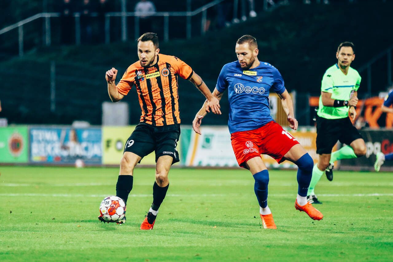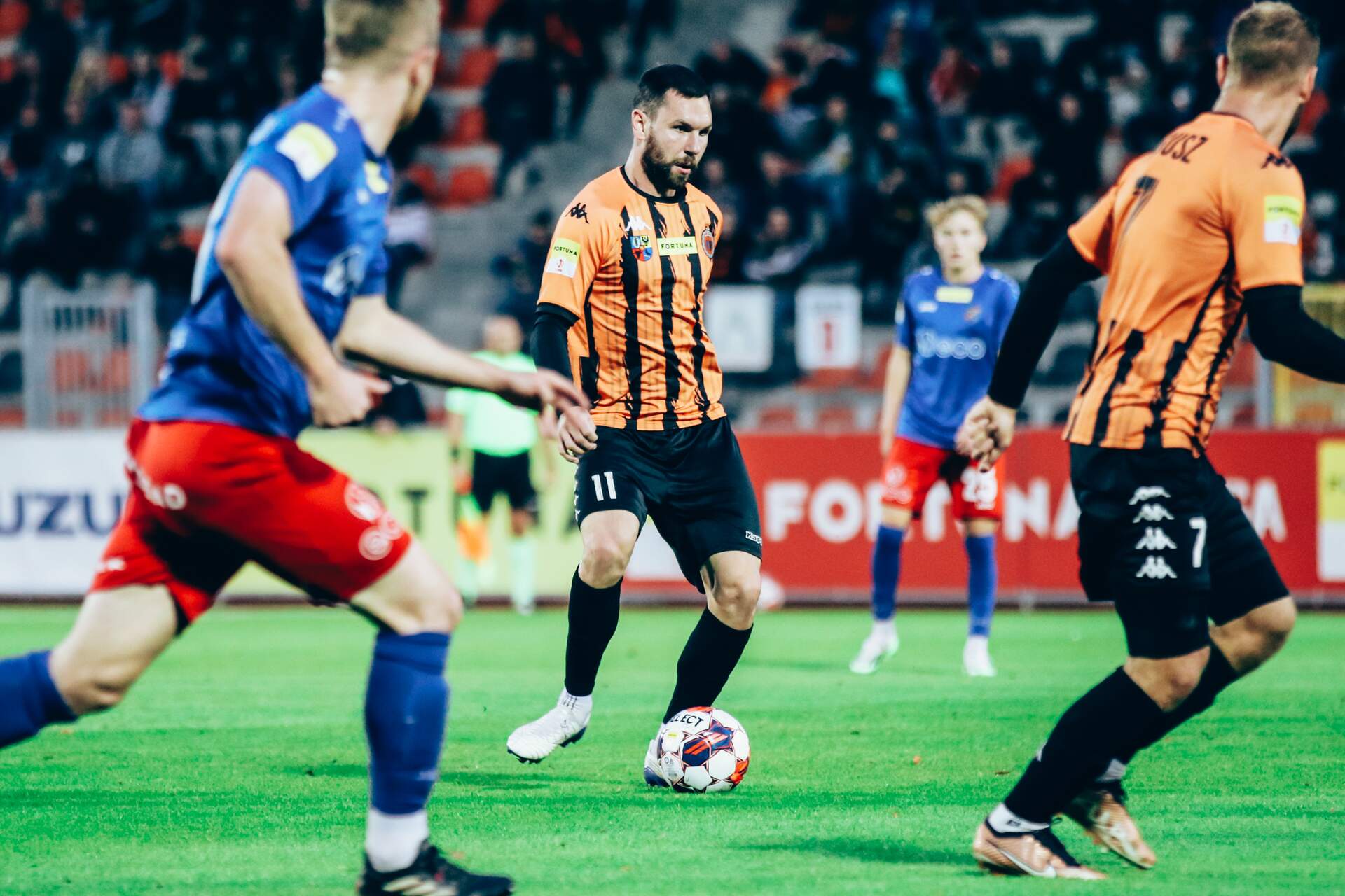 Chrobry urywa punkty liderowi Trwa seria meczów bez porażki. Tym razem Chrobry zyskuje punkt po meczu z liderem - Odrą Opole. 06-10-2023 07:47 autor: ŁJ Pierwsza polowa nie obfitowała w wiele sytuacji. Chrobry jakby nabrał więcej pewności siebie i starał się być aktywniejszy w ofensywie, ale nie przełożyło się to na duże zagrożenie pod bramką Odry. Z pomocą mógł przyjść stały fragment gry. W 22 minucie na strzał z rzutu wolnego zdecydował się Patryk Mucha, lecz piłkę chwycił bramkarz Odry. Goście też nie mieli wiele z przodu, ale gorąco zrobiło się w samej końcówce. Opolanie domagali się rzutu karnego i sędzia początkowo do tego się przychylał. Komunikował się jednak z sędziami VAR i po tej analizie nakazał wznowienie gry Pomarańczowo-Czarnym. Tym samym po 45 minutach mieliśmy sprawiedliwe 0:0. Druga połowa wcale nie miała mocno różniącego się oblicza. Głogowianie byli dobrze zorganizowani i choć już nie na tyle aktywni z przodu (poza niecelnym uderzeniem Patryka Muchy zza szesnastki i główki Mikołaja Lebedyńskiego, która jednak nie sprawiła kłopotu Arturowi Haluchowi), utrzymujący się remis wydawał się być całkiem stabilny. Choć drgnął ten wynik w 76 minucie, gdy piłkę w bramce umieścił Mateusz Kamiński. Wtedy sędzia Piotr Rzucidło zdecydował się skorzystać z wideoweryfikacji i po wcale nie tak krótkiej analizie anulował gola opolan. Rezultat wrócił do stanu remisowego i utrzymał się do samego końca. Teraz Chrobrego czeka dwutygodniowa przerwa z powodu meczów reprezentacji, do których powołania otrzymali też Pomarańczowo-Czarni. Szymon Bartlewicz weźmie udział w zgrupowaniu reprezentacji Polski U-19, a Jesus Paz zmienia kontynent, aby uczestniczyć w zgrupowaniu Wenezueli U-23. Powrót do ligi nastąpi w piątek 20 października. Tego dnia Chrobry podejmie u siebie Motor Lublin.
