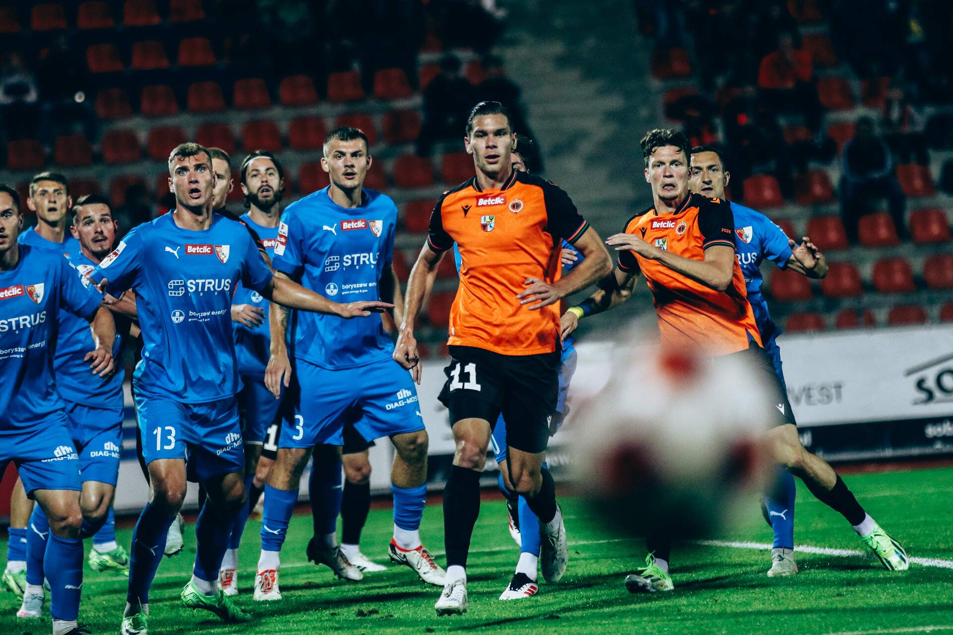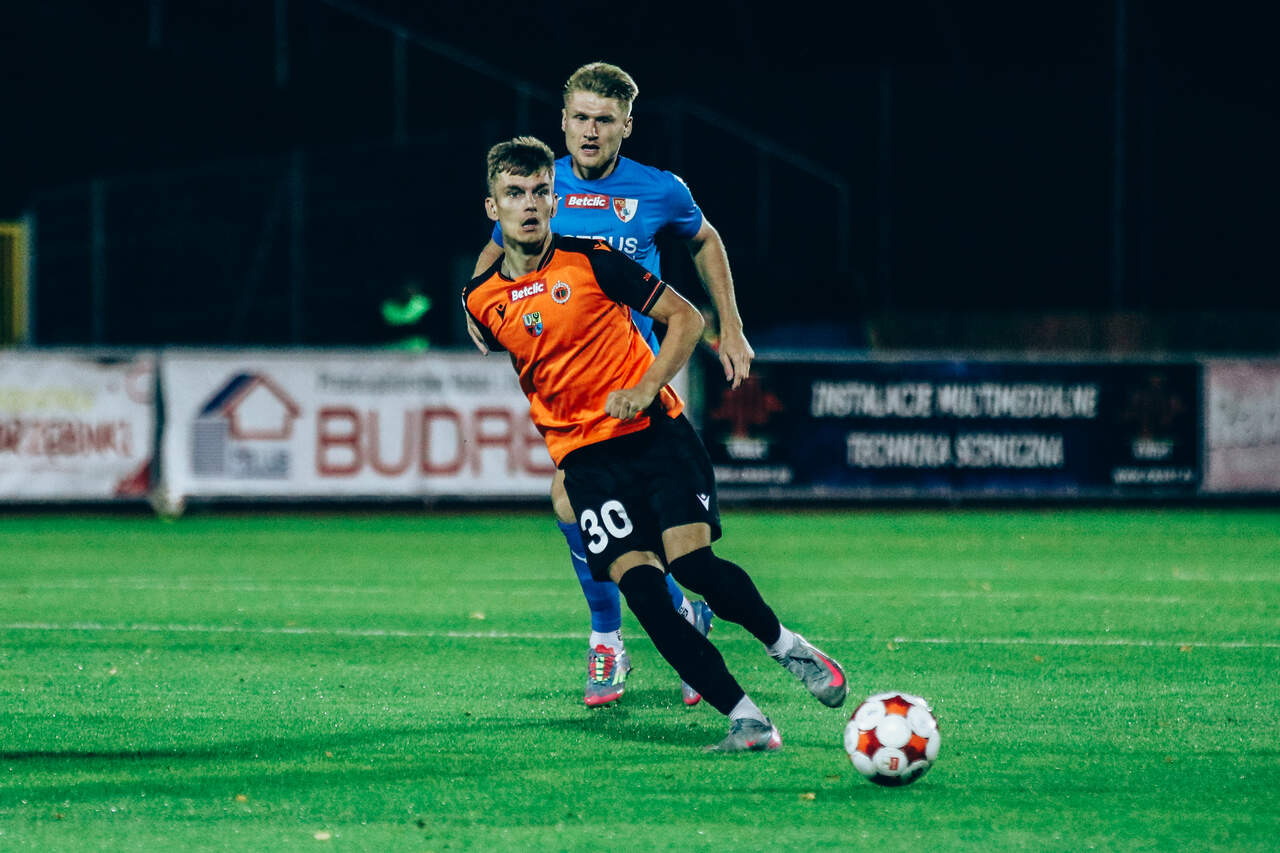 Udokumentowane dwiema bramkami i trzema punktami Chrobry po bramkach Roberta Mandrysza i Mateusza Ozimka wygrał z Pogonią Siedlce 2:1, w ten sposób dokumentując swoją przewagę od pierwszej do ostatniej minuty. 12-09-2025 10:02 autor: ŁJ Pierwsza połowa całkowicie upłynęła pod dyktando Chrobrego, jednak nie przełożyło się to na bramki, choć okazji ku temu nie brakowało. Największe zagrożenie Chrobry stworzył w 17. i 18. minucie. W ciągu 60 sekund dwa groźne strzały na bramkę Pogoni oddali kończący zespołową akcję Paweł Tupaj oraz Jakub Gric, który główkował po rzucie rożnym. Najpierw skutecznie interweniował bramkarz Pogoni, a chwilę później piłka uderzona przez Gricia odbiła się od górnej części poprzeczki. Do końca pierwszej połowy głogowianie utrzymywali przewagę, a momentami nawet ją powiększali. Gdy jednak sędzia gwizdkiem zaprosił drużyny do szatni, wynik wciąż pozostawał bez zmian. Kwadrans przerwy nie rozstroił Pomarańczowo-Czarnych, którzy zaraz po wznowieniu gry potwierdzili swoją przewagę. W 47. minucie w podbramkowym zamieszaniu świetnie odnalazł się Robert Mandrysz i trafił na 1:0. Choć nic nie wskazywało na zmianę sytuacji – Chrobry wydawał się kontrolować przebieg meczu – po kilku minutach gospodarze wywalczyli rzut karny. W 55. minucie Dawida Arndta pokonał w ten sposób Marcin Flis, który ma w tym momencie na koncie cztery bramki i wszystkie zdobyte z… 11. metra. Chrobry jednak nie spuścił z tonu. Już w 64. minucie, po wrzutce Pawła Tupaja z prawej strony, przyblokowany został próbujący wykończyć akcję Sebastian Strózik, ale Mateusz Ozimek już nie – dopadł do piłki i pewnym strzałem dał swojemu zespołowi prowadzenie 2:1. Do końca wynik nie uległ zmianie. Choć był na styku, to w tym dniu to Chrobry był stroną wyraźnie przeważającą i stwarzającą kolejne sytuacje. Po drugim golu sam Ozimek miał dwie świetne okazje, lecz w obu przypadkach doskonale interweniował Jakub Lemanowicz. Przed swoją stanął również Kelechukwu Ibe-Torti, jednak po jego uderzeniu piłka minęła słupek. Goli mogło być więcej, padły „tylko” dwa, ale najważniejsze, że trzy punkty zostały w Głogowie. Przed Chrobrym tydzień treningów. Kolejny mecz głogowianie rozegrają w Chorzowie z Ruchem. Spotkanie 10. kolejki zaplanowano na poniedziałek, 22 września, o godzinie 17:45.