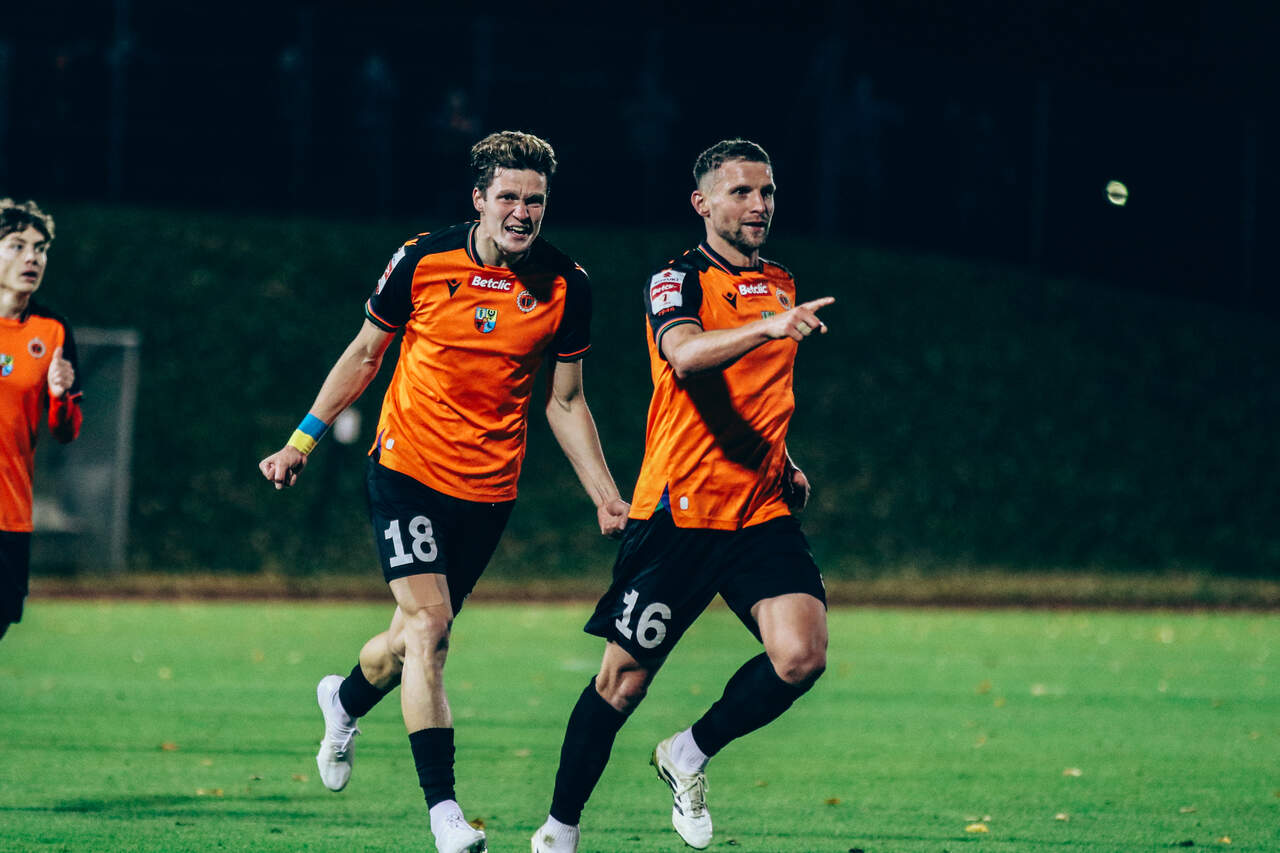 Piorunujący finisz Chrobrego Jeszcze w 85. minucie utrzymywał się bezbramkowy remis, ale Chrobry rozstrzygnął ten mecz na swoją korzyść za sprawą piorunującej końcówki i dwóch zdobytych wtedy bramek. 18-10-2025 09:49 autor: ŁJ Jako pierwszy na bramkę rywali strzelał Chrobry, ale pierwsze poważne zagrożenie stworzyła Polonia. W 21. minucie uderza Dani Vega i tym zmusił Dawida Arndta do interwencji. Głogowianie odpowiedzieli nieznacznie niecelną główką Jakuba Gricia po wrzutce Mateusza Ozimka. Od 37. minuty Czarne Koszule musiały sobie radzić w dziesięciu. Odważnie z bramki wyszedł Adrian Sandach i choć wygrał pojedynek poza „szesnastką”, interweniował ręką. Sędzia z pomocą VAR zdecydował się pokazać mu czerwoną kartkę. Przerwa trwała dość długo – arbiter do 45 minut doliczył później aż 12. Nie wytrąciło to jednak z równowagi nierozgrzanego, wchodzącego na murawę Mateusza Kuchtę. Próbowali go pokonać Szymon Bartlewicz, Kacper Laskowski i Robert Mandrysz, ale przy dwóch sytuacjach Kuchta popisał się świetnymi interwencjami. M.in. dzięki temu oba zespoły schodziły na przerwę przy bezbramkowym wyniku. Po zmianie stron, mimo gry w przewadze, Chrobremu długo nie udawało się przełamać rywali. Aż do 85. minuty utrzymywał się bezbramkowy remis, a Polonia potrafiła jeszcze wywołać zagrożenie – na bramkę Dawida Arndta uderzał m.in. Łukasz Zjawiński, ale golkiper Chrobrego nie dał się zaskoczyć. Głogowianie cały czas atakowali, szukając swoich szans i zostali za to nagrodzeni. W 86. minucie prowadzenie dał ten, który na to zasłużył – obchodzący jubileusz 250. meczu w barwach Chrobrego Robert Mandrysz, któremu dograł Szymon Lewkot. To dodało zespołowi luzu, który przełożył się w 89. minucie na trafienie meldującego się na boisku w drugiej połowie Kacpra Nowakowskiego. Asystował mu inny zaczynający ten pojedynek na ławce młodzieżowiec – Kamil Grzelak. Pomarańczowo-Czarni pokonali więc Polonię Warszawa 2:0. To trzecie zwycięstwo z rzędu Chrobrego. O czwarte zespół powalczy w niedzielę, 26 października, w Tychach (godz. 12.00).