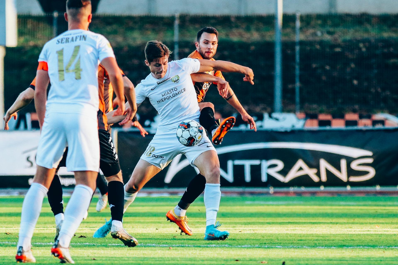 Czwarte ligowe zwycięstwo z rzędu! Po bramce Rafała Wolsztyńskiego na 10 minut przed końcem Chrobry pokonuje Puszczę Niepołomice 1:0, jest z czwartym ligowym zwycięstwem z rzędu i czwartym miejscem w tabeli. 06-11-2022 04:53 autor: ŁJ Trener Marek Gołębiewski musiał poeksperymentować w obronie, którą wobec kontuzji i kartek tworzyli teraz Michał Michalec i Oliver Praznovsky na środku, a po bokach Artur Bogusz i… Robert Mandrysz. Kadrowo skomplikowało się jeszcze bardziej w trakcie spotkania, bo już w 11 minucie boisko z powodu kontuzji musiał opuścić Patryk Kusztal. W pierwszych minutach zaatakowała Puszcza, ale nic z tego nie miała i z czasem zarysowała się przewaga Chrobrego. Przynajmniej w stworzonych sytuacjach, bo piłkę po strzale Patryka Kusztala odbił Krzysztof Wróblewski, a po późniejszym uderzeniu Rafała Wolsztyńskiego przeleciała ponad bramką. W końcówce głogowianie mogli jeszcze wykorzystać jeden ze stałych fragmentów, ale po ciekawie rozegranym rzucie wolnym i kolejnym strzale Wolsztyńskiego znów dobrze interweniował golkiper gości. W bramkowych okazjach Chrobry miał przewagę, ale mimo tego był to bardzo zacięty pojedynek i bezbramkowe 0:0 po 45 minutach zdawało się to potwierdzać. Taka zaciętość przeniosła się na drugą połowę. Wiele zapowiadało bezbramkowy remis, a już z dużą pewnością można było powiedzieć, że kto strzeli, ten wygra. Strzelił Chrobry, wykorzystując jedną z nielicznych w tej części sytuacji stworzonych przez oba zespoły. W 80 minucie po dograniu Sebastiana Stebleckiego z lewej strony piłkę głową do bramki skierował nabiegający na dalszy słupek Rafał Wolsztyński. Tym napastnik Pomarańczowo-Czarnych zapewnił swojej drużynie kolejny komplet punktów, który przesuwa ją w tabeli. Na kolejkę przed końcem rundy jesiennej głogowianie są na czwartej pozycji – najwyżej w sezonie. Za tydzień na Wita Stwosza ostatni mecz tego roku. O godz. 15.00 Chrobry zagra ze Stalą Rzeszów.