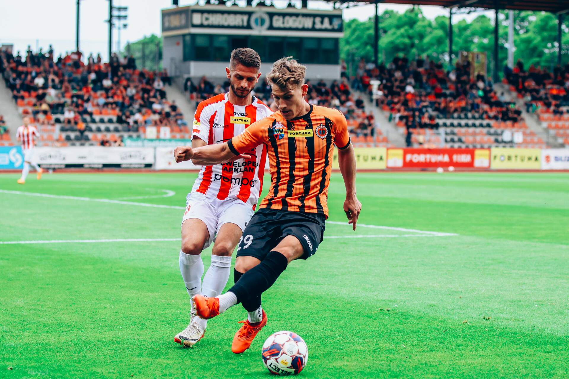 Chrobry Głogów - Resovia Rzeszów 1:1 11-05-2024 04:45 autor: ŁJ W meczu 32 kolejki Fortuna 1 Ligi Chrobry zremisował z Resovią Rzeszów 1:1. CHROBRY GŁOGÓW - RESOVIA RZESZÓW 1:1 (1:0) 1:0 Bartlewicz 36 1:1 Eizenchart 66 CHROBRY: Węglarz - Tupaj (75 Kuzdra), Zarówny, Bougaidis, Malczuk, Hanc, Machaj (71 Ozimek), Mucha (88 Bogusz), Lewkot, Bartlewicz (46 Biel), Lebedyński (88 Wojciechowski). RESOVIA: Pindroch - Tomal (84 Mikrut), Bondarenko, Buchał, Mikulec, Ibe-Torti, Wasiluk (46 Kanach), Ciepiela (84 Adamski), Łyszczarz, Eizenchart (75 Mazek), Górski. ŻÓŁTE KARTKI: Bartlewicz, Bougaidis - Buchał, Wasiluk, Ciepiela, Mikulec. CZERWONE KARTKI: SĘDZIA: Piotr Urban - Warszawa. WIDZÓW: 974.