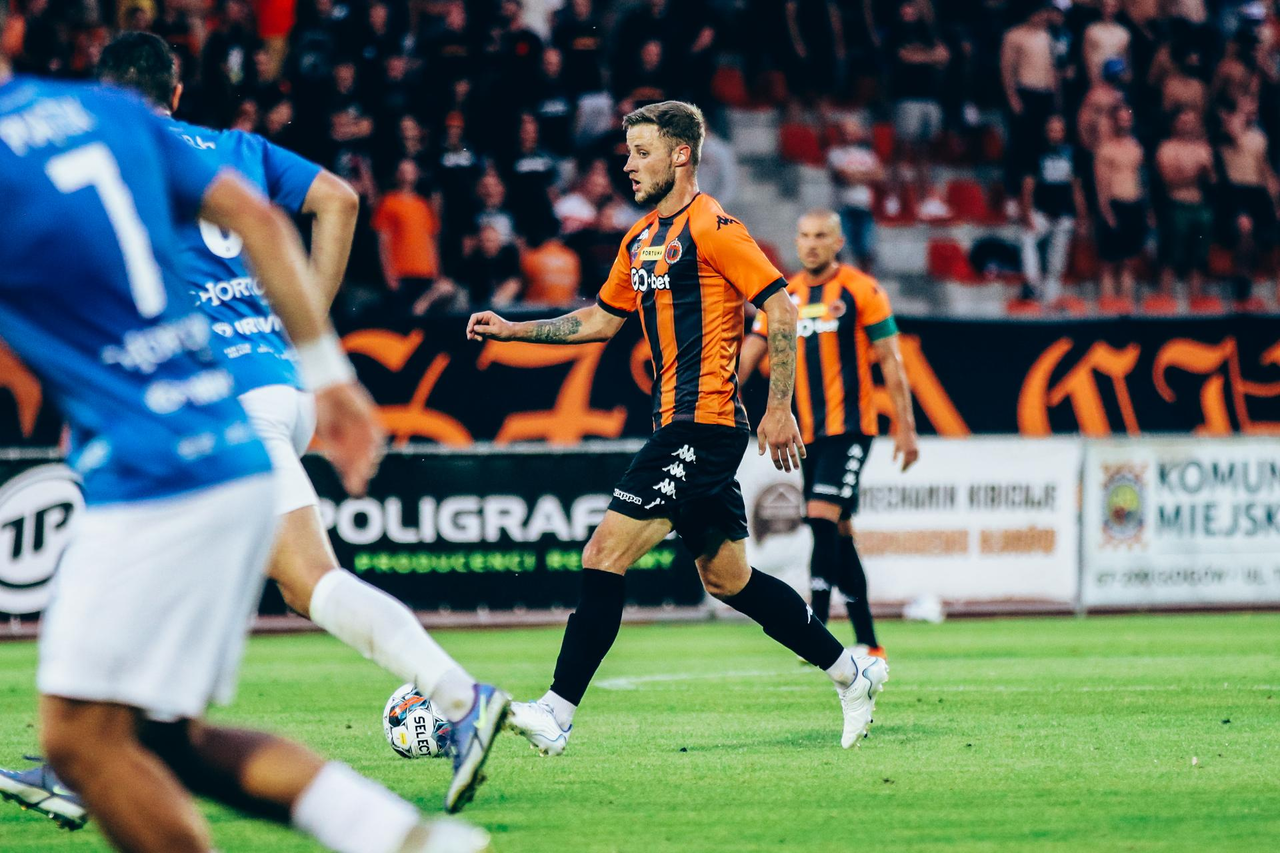 Ruch z kompletem punktów Po dwóch golach zdobytych w ostatnim kwadransie Ruch Chorzów wyjeżdża z Głogowa z kompletem punktów. 23-07-2022 10:20 autor: ŁJ Przez większość meczu z Ruchem Chorzów utrzymywał się remis, jednak ostatni kwadrans w wykonaniu rywali przesądził o wyniku. Chorzowianie wygrali 2:0, choć w drugiej części, do momentu pierwszego gola, wydawało się, że to Chrobry jest bliższy trafienia. W pierwszej połowie szanse były po obu stronach, ale żadna ich nie wykorzystała. W pierwszych kilkunastu, może nawet kilkudziesięciu minutach groźniej było za sprawą chorzowian. Niebezpiecznie uderzał m.in. Daniel Szczepan. Nie wszystkie podejścia pod pole karne głogowian kończyły się niebezpiecznie, ale ogółem chorzowianie tych prób początkowo podejmowali więcej. Sygnał do ataku dali w 29 minucie Mateusz Machaj z Mateuszem Bochnakiem. Pierwszy wypatrzył ruszającego do przodu Mateusza Bochnaka, zagrał mu dokładną piłkę, po czym boczny pomocnik Chrobrego stanął niemal oko w oko z bramkarzem rywali. W tej sytuacji górą był Jakub Bielecki. Po chwili niecelny strzał z kilkunastu metrów oddał Patryk Kusztal, a w końcówce po dograniu wzdłuż bramki od Sebastiana Stebleckiego niewiele zabrakło Mateuszowi Bochnakowi, aby skierować piłkę do bramki. W drugiej połowie obraz gry uległ zmianie i z tej gry przez długi moment więcej zdawał się mieć Chrobry. Tylko rzut rożny miał z akcji, którą próbowali wykończyć Mavroudis Bougaidis i następnie Jakub Kuzdra. Przed jeszcze lepszą szansą stanął Mateusz Bochnak, po którego uderzeniu kolejny raz dobrze interweniował golkiper Ruchu. Wstrzelić zza szesnastki starał się Jaka Kolenc, lecz futbolówka przeszła obok słupka. Kiedy wydawało się, że Pomarańczowo-Czarni są bliżej gola, tego zdobyli rywale. W 75 minucie bardzo odważnie w pole karne wbiegł Tomasz Wójtowicz i jeszcze pewniejszym, mocnym strzałem pokonał Damiana Węglarza. W 78 minucie na 0:2 podwyższył wchodzący na boisko dosłownie chwilę wcześniej Artur Pląskowski. Ruch ruszył z kontrą, na końcu której Pląskowski dołożył nogę i właściwie było po meczu. Taki wynik w takim momencie spotkania spowodował bowiem, że ciśnienie ze strony Chrobrego opadło. Mimo obecności na murawie ofensywnych Rafała Wolsztyńskiego i debiutującego Miłosza Jóźwiaka nie było okazji do zmiany rezultatu. Chrobry przegrywa na swoim stadionie 0:2, chociaż nie zabrakło pozytywnych momentów, jak wspomniany debiut Miłosza Jóźwiaka. W następnej serii Chrobry zagra z Chojniczanką Chojnice. Mecz 3 kolejki Fortuna 1 Ligi w niedzielę 31 lipca o godz. 18.00 w Chojnicach. Ważne piłkarskie wydarzenie będzie miało miejsce także w piątek, kiedy to w samo południe w Warszawie odbędzie się losowanie Pucharu Polski. Głogowianie poznają przeciwnika, z którym zmierzą się w 1/16 finału.