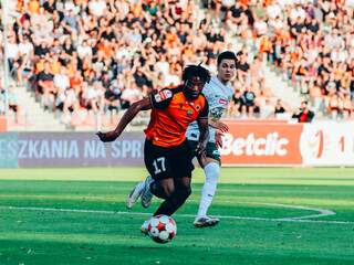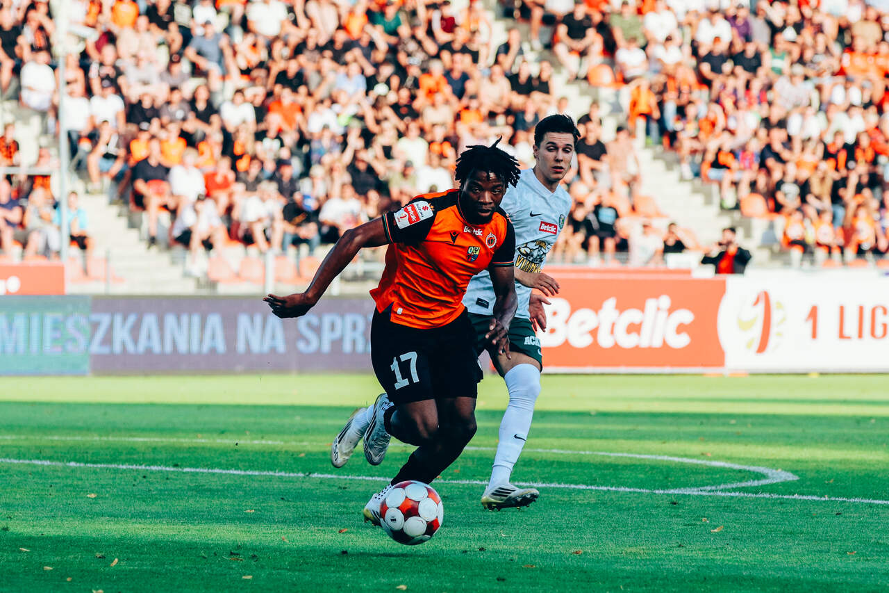 Śląsk wygrywa w Głogowie Piłkarze Chrobrego Głogów musieli uznać wyższość Śląska Wrocław, który wygrał w Głogowie 2:1. O losach spotkania przesądziły dwie bramki Damiana Warchoła w pierwszej połowie. 20-08-2025 08:02 autor: ŁJ Od początku meczu gospodarze starali się zagrozić bramce Michała Szromnika, ale w 27. minucie to goście objęli prowadzenie. Serafin Szota posłał długie podanie z własnej połowy, a to otworzyło drogę do bramki Damianowi Warchołowi. Zawodnik WKS-u przejął futbolówkę i mocnym strzałem pokonał Dawida Arndta. Głogowianie mogli szybko wyrównać – w 30. minucie Szymon Bartlewicz znalazł się w polu karnym i oddał mocny strzał, jednak Szromnik końcami palców odbił piłkę na poprzeczkę. Tuż przed przerwą Śląsk zadał drugi cios. Po dośrodkowaniu Tommaso Guercio z prawej strony boiska, Warchoł znakomicie odnalazł się w polu karnym i głową skierował piłkę do siatki. Goście schodzili więc do szatni prowadząc 2:0. Chrobry miał czego żałować, bo nawet przy jednobramkowym prowadzeniu rywali prezentował się dobrze. Gol do szatni mógł jednak podciąć skrzydła. Po zmianie stron Śląsk mógł szybko zamknąć mecz – już w 47. minucie Arndt dwukrotnie ratował Chrobrego, najpierw po uderzeniu Guercio, a następnie po dobitce Warchoła. Nadzieja dla Pomarańczowo-Czarnych przyszła w 70. minucie, gdy po analizie VAR sędzia podyktował rzut karny za zagranie ręką Guercio. Do piłki podszedł Mazur i pewnym strzałem w górny róg zmniejszył straty. Bramkarz Śląska wyczuł intencje rywala, ale nie sięgnął piłki. Tym sposobem ukraiński obrońca zdobył już swojego czwartego gola w tych rozgrywkach i zapewnił spore emocje na ostatnie fragmenty pojedynku. W końcówce meczu Chrobry starał się pójśc za ciosem i doprowadzić do remisu – tych emocji więc nie zabrakło, ale czystych okazji już tak. Z części akcji głogowianie mieli stałe fragmenty, jednak tym razem one nie przyniosły bramkowej zdobyczy. Śląsk Wrocław wykorzystał swoje szanse i wywozi z Głogowa komplet punktów. W kolejnym spotkaniu, w sobotę 23 sierpnia o godz. 19.30, Chrobry zagra na wyjeździe z Pogonią Grodzisk Mazowiecki.