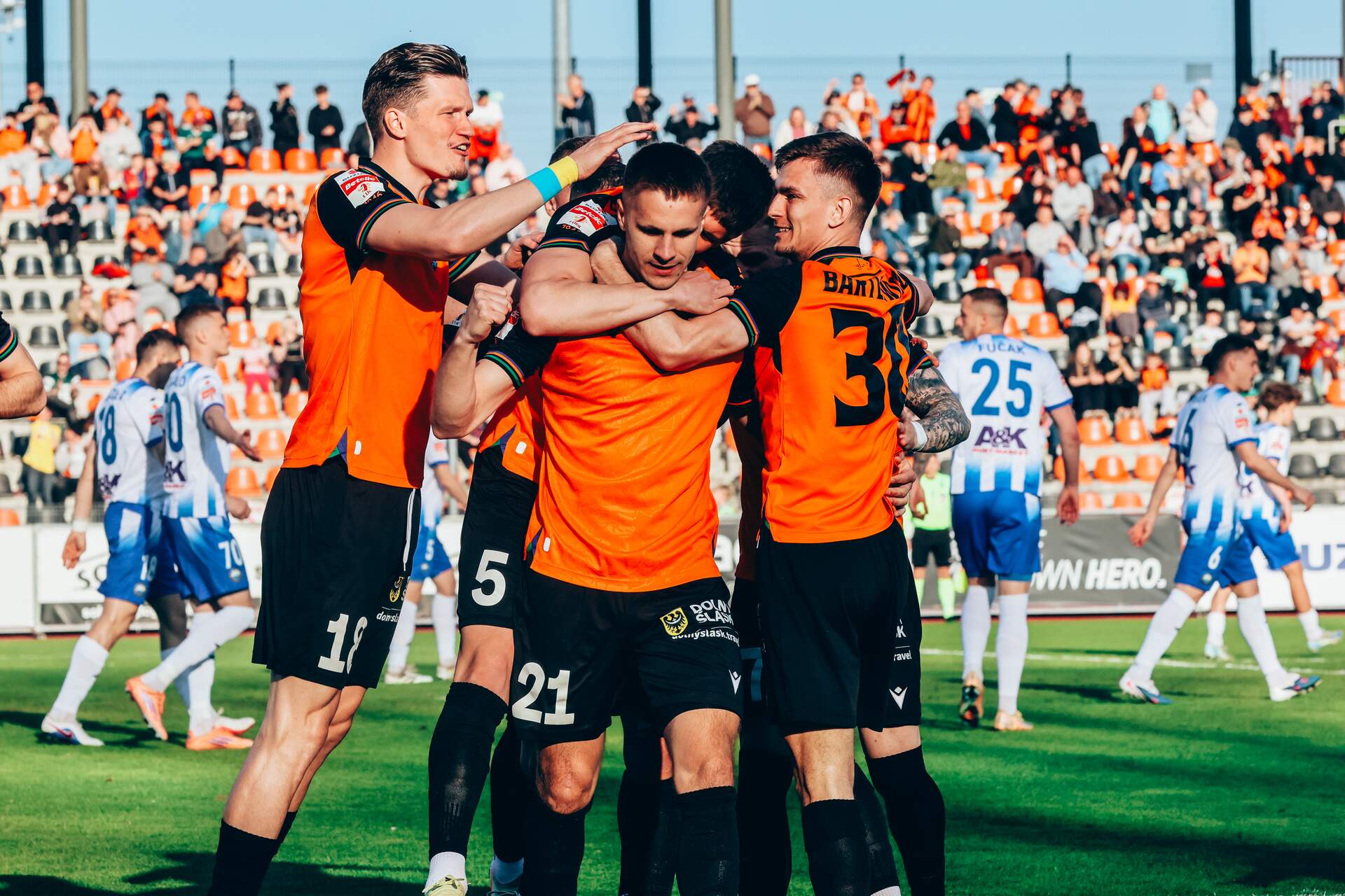 Chrobry Głogów - Stal Mielec 2:1 Punkty zostają w Głogowie. Chrobry pokonuje Stal Mielec 2:1. 17-04-2026 07:45 autor: ŁJ CHROBRY GŁOGÓW - STAL MIELEC 2:1 (2:1) 1:0 Jehor Cykało 2 (s) 2:0 Radosław Bąk 28 2:1 Jakub Grič 39 (s) CHROBRY: 99. Dawid Arndt - 21. Michał Kozajda, 18. Myrosław Mazur, 8. Jakub Grič, 28. Jakub Lis - 27. Kacper Laskowski, 7. Sebastian Bonecki (67, 23. Szymon Lewkot), 5. Radosław Bąk (90, 44. Albert Zarówny), 16. Robert Mandrysz, 30. Szymon Bartlewicz (60, 72. Kuba Szabłowski) - 11. Sebastian Strózik (67, 9. Mateusz Ozimek). STAL: 99. Maciej Gostomski - 27. Ale Díez (89, 11. Kamil Odolak), 70. Jehor Cykało, 15. Marvin Senger, 5. Hubert Matynia (46, 22. Matija Kavčič) - 90. Paweł Kruszelnicki, 24. Chema Núñez, 18. Piotr Wlazło, 6. Jošt Pišek, 78. Kamil Cybulski (73, 71. Jakub Kowalski) - 25. Kristian Fućak. ŻÓŁTE KARTKI: Mazur - Matynia. SĘDZIOWAŁ: Sebastian Krasny (Kraków).