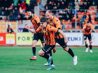 CO ZA FINISZ! Jeszcze w 88 minucie utrzymywał się bezbramkowy remis. Później 1:0, 1:1 i po bramce Dawida Hanca w doliczonym czasie 2:1, a co za tym idzie wyczekiwany komplet punktów Chrobrego! 09-03-2024 05:12 autor: ŁJ To był mecz walki. Obie ekipy w tabeli są obok siebie, mają po tyle samo punktów, i to było widać w pierwszej połowie. Chrobry może żałować sytuacji z 9 minuty, kiedy to po wrzutce z prawej strony główkował Mikołaj Lebedyński, ale futbolówka przeszła obok słupka. Później odpowiedzieli goście. Nieszczęśliwie dla głogowian mogła zakończyć się strata na własnej połowie, ale to uderzenie Patryka Walczaka było niecelne. Druga część bardzo długo podobnie wyglądała do pierwszej. Nie było czystych sytuacji, a optyczną przewagę posiadała Stal. Mimo tego można było odnieść wrażenie, że im bliżej końca, tym groźniejszy z przodu staje się Chrobry. W 77 minucie po strzale z ostrego kąta w wykonaniu Mateusza Ozimka interweniował bramkarz Stali, a dosłownie po chwili groźnie główkował Albert Zarówny. Kiedy wydawało się, że spotkanie zakończy się bezbramkowym remisem, zrobiło się widowisko przez duże „W”. W piłce zawsze warto wyczekać do samego końca, bo nigdy nie wiadomo, co może się wydarzyć. A wydarzyło sporo. W 89 minucie pięknym strzałem z kilkunastu metrów prowadzenie Chrobremu dał Kacper Tabiś. Radość z tego gola nie trwała jednak długo, bo w 90 minucie rywale skutecznie odpowiedzieli. Damiana Węglarza pokonał Sebastien Thill. Na tym nie koniec, bo ten należał do Pomarańczowo-Czarnych, którzy najpierw wywalczyli rzut wolny, a następnie - po strzale Dawida Hanca i rykoszecie - cieszyli się ze zwycięskiego gola. Chrobry z bardzo ważnym kompletem punktów, który dodatkowo nabiera na znaczeniu wobec tak szalonego finiszu! Następny mecz równo za tydzień. W sobotę 16 marca o godz. 15.00 Chrobry zmierzy się na stadionie w Tychach z miejscowym GKS-em i tym występem nasza drużyna rozpocznie serię pojedynków z rywalami z czołówki tabeli. Po tym spotkaniu w lidze nastąpi dwutygodniowa przerwa reprezentacyjna, po której na stadion przy Wita Stwosza wrócimy w sobotę 30 marca na mecz z Wisłą Kraków.