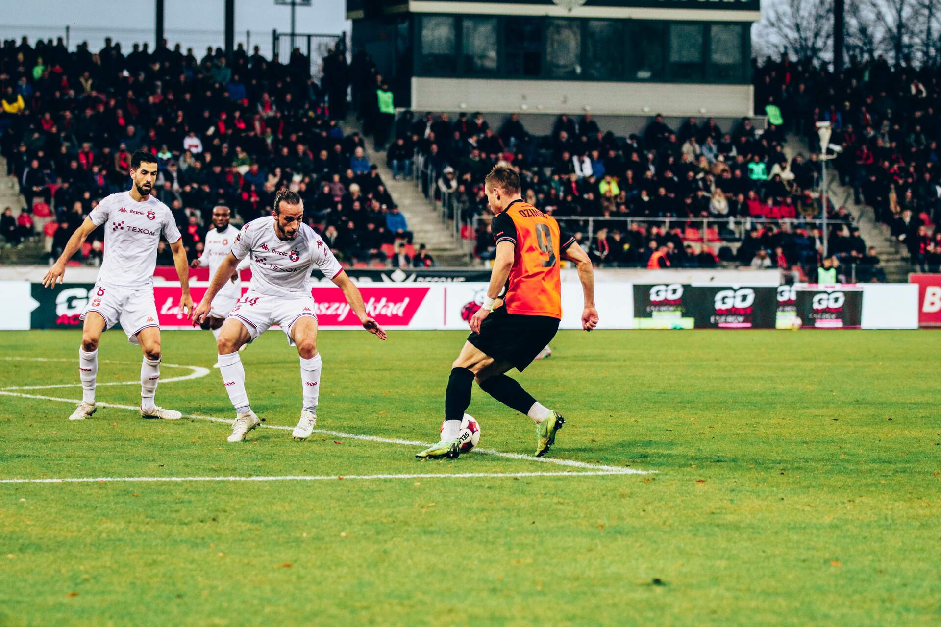 Lider przerywa serię Chrobrego Jedna bramka najlepszego strzelca całej ligi – Angela Rodado – rozstrzygnęła losy rywalizacji w Głogowie. Wisła Kraków pokonała Chrobrego 1:0. 02-11-2025 04:02 autor: ŁJ W pierwszych minutach to jednak Chrobry potrafił nieco postraszyć lidera. Szczególnie groźny był Szymon Lewkot, po którego strzale piłka odbiła się od rywala i wylądowała poza boiskiem, dając gospodarzom jedynie rzut rożny. Niecelnie, ale groźnie główkował także Piotr Janczukowicz. Później przewagę przejęli krakowianie. Dawid Arndt musiał interweniować po uderzeniach Macieja Kuziemki i Angela Rodado, lecz w 25. minucie musiał skapitulować. Najpierw z okolic szesnastki strzelał James Igbekeme, zmuszając golkipera Chrobrego do obrony. Piłka pozostała jednak w polu karnym, a najbliżej niej znalazł się Rodado, który skuteczną dobitką ustalił wynik na 0:1. Do końca pierwszej połowy Wisła utrzymywała przewagę i miała kolejne okazje, lecz Arndt bronił uderzenia Igbekeme i Raoula Gigera. Po 45 minutach prowadzenie gości było nieznaczne, ale zasłużone. Chrobry jednak mógł mieć nadzieję, że w tym meczu uda się jeszcze coś ugrać. Szkoda początku drugiej połowy w wykonaniu głogowian. Już w 48. minucie mogło być 1:1, ale nabiegający na bramkę Michał Kozajda nie zdołał sięgnąć futbolówki posłanej z boku. Zabrakło naprawdę niewiele... W tej części gry Chrobry prezentował się już lepiej, a „Biała Gwiazda” do końca musiała obawiać się o wynik. Tym bardziej, że w końcówce Pomarańczowo-Czarni coraz śmielej atakowali i wywalczyli kilka stałych fragmentów gry w dobrych miejscach. Tym razem jednak nie przyniosły one wyrównania i po 90 minutach z kompletu punktów cieszyli się goście, którzy - pomimo odważniejszej postawy Chrobrego w tej odsłonie - wypracowali najgroźniejszą sytuację, gdy Frederico Duarte po wyjściu na czystą pozycję i lobie trafił jedynie w słupek. Lider z Krakowa potwierdził więc ekstraklasowe aspiracje. Na meczu z liderem zakończyła się seria czterech zwycięstw z rzędu Chrobrego, ale nie umniejsza to dobrej formie głogowian. Przed nimi teraz wyjazd do Pruszkowa na spotkanie ze Zniczem – w najbliższy piątek o godz. 20:30.