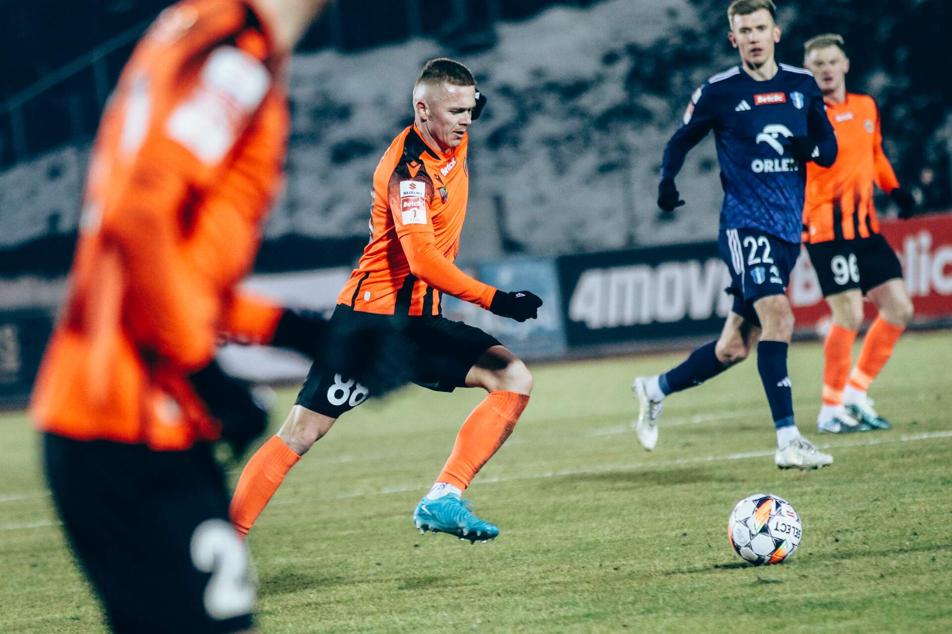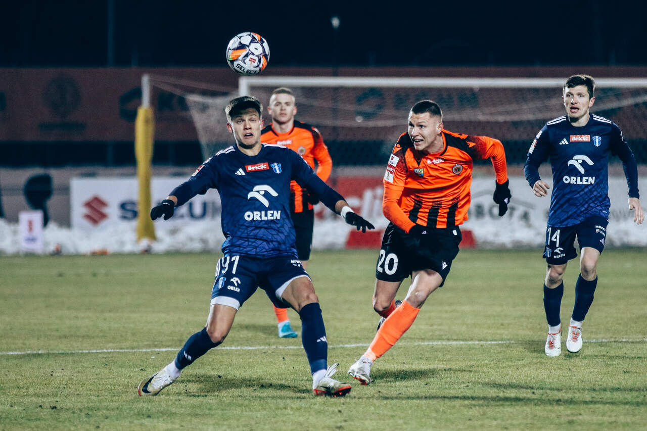 Cenny punkt na początek Tegoroczne zmagania w Betclic 1 Lidze Chrobry zaczyna od punktu. W 20 kolejce głogowianie zremisowali z Wisłą Płock 0:0. 16-02-2025 06:57 autor: ŁJ Pierwsza połowa należała do wyrównanych. Uderzenia oddawali i jedni, i drudzy. Po stronie Chrobrego próbowali z dystansu Kacper Tabiś i Szymon Bartlewicz oraz dwukrotnie główkujący Mikołaj Lebedyński, jednak piłka ani razu nie znalazła drogi do bramki Wisły. Pod bramką strzeżoną przez Pawła Lenarcika też potrafiło być groźnie, choćby w 15 minucie, gdy wślizgiem dogranie próbował zamknąć Iban Salvador, ale nie zdołał tego zrobić. Po pierwszej połowie na Wita Stwosza mieliśmy więc bezbramkowy remis i sporo walki - pod tym względem tak grający Chrobry mógł się podobać. Po zmianie stron nieco więcej z gry zdawali się mieć rywale, ale to było wciąż za mało, aby pokonać głogowskiego golkipera. Obrona Chrobrego była bardzo szczelna, a momentami ofiarnie interweniujący defensorzy nie do przejścia. Tak, jak w 58 minucie, gdy Piotra Krawczyka zatrzymał Paweł Tupaj. Już do końca wynik nie uległ zmianie. Kibice Chrobrego wobec ujemnej temperatury z pewnością liczyli na mogące nieco bardziej rozgrzać gole, ale choć ich zabrakło, to wywalczony na starcie remis w starciu z mierzącym wysoko przeciwnikiem wydaje się być dobrym rezultatem. W kolejnym meczu Chrobry zagra na wyjeździe z GKS-em Tychy. To spotkanie w niedzielę 23 lutego o godz. 12.00.