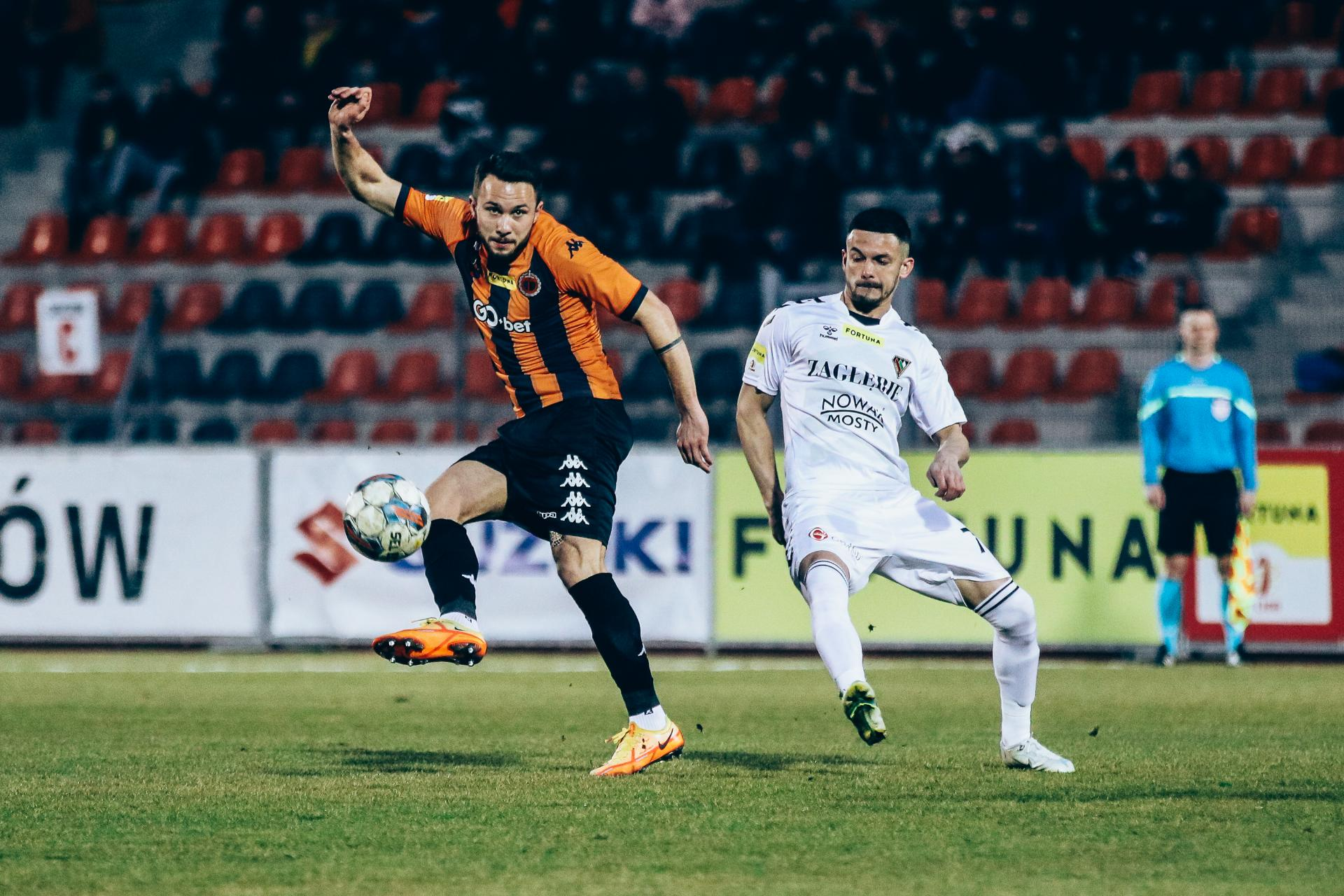 Podział punktów Nie ma zwycięstwa, ale jest wyczekiwane przełamanie. Chrobry zostawia za sobą serię trzech porażek z rzędu i remisuje z Zagłębiem Sosnowiec 0:0. 19-03-2023 08:15 autor: ŁJ Chrobry mecz z Zagłębiem rozpoczął z czwórką młodzieżowców, nie tylko Albertem Zarównym, ale też Dawidem Hancem, Miłoszem Jóźwiakiem i Jakubem Górskim. Ponadto do bramki powrócił Damian Węglarz grając po raz pierwszy od października. Częściowo były to wymuszone zmiany, bo do kontuzjowanych graczy doszedł pauzujący za kartki Artur Bogusz, ale było też widać, że trener próbował coś zrobić, żeby przełamać się po trzech porażkach. Pierwsza część nie obfitowała w sytuacje. Mecz był wyrównany, choć jeśli na kogoś nieznacznie wskazać, to może trochę na Zagłębie, które miało groźniejsze uderzenia. W 13 minucie piłkę po strzale Adriana Trocia odbił Damian Węglarz. Niebezpieczniej mogło być w 45 minucie. Goście mieli wtedy rzut wolny na linii pole karnego, lecz strzał Sebastiana Boneckiego, który przecież potrafi przymierzyć z dalszych odległości, co udowadniał też jako zawodnik Chrobrego, nie był celny. To byłoby na tyle. Oddającego przebieg rywalizacji 0:0 po pierwszych 45 minutach i wszystko musiało rozstrzygnąć się w drugich. Wydawało się, że kluczowy moment nastąpił w 58 minucie. To wtedy sędzia po analizie VAR pokazał czerwoną kartkę. Za uderzenie łokciem Sebastiana Stebleckiego w walce o piłkę otrzymał ją Oleksii Bykov. Zagłębie grało więc w dziesięciu, ale mimo tego to ono zaczęła wyraźniej przeważać. W 67 minucie niecelny strzał oddał Szymon Sobczak, a w 76 minucie Dean Guezen, choć trzeba przyznać, że to było groźne i mogło coś z tego być. Gorąco było też w doliczonym czasie gry, kiedy Szymon Sobczak wychodził na dobrą pozycję i przegrał rywalizację z Albertem Zarównym. Przy tym upadł, na szczęście sędziowie pozostali niewzruszeni na protesty sosnowiczan. Chrobry po tej czerwonej kartce nie ruszył odważniej do przodu i ma punkt. Trzeba go docenić tym bardziej, że przełamuje serię trzech porażek z rzędu. Mecz z Zagłębiem był ostatnim w marcu. W przyszłym tygodniu liga nie gra w związku z przerwą reprezentacyjną, a kolejne mecze o punkty za dwa tygodnie. W sobotę 1 kwietnia Chrobry zagra na wyjeździe z Wisłą Kraków, więc ma kilkanaście dni na odpowiednie przygotowanie się do starcia z niepokonaną w tym roku drużyną.