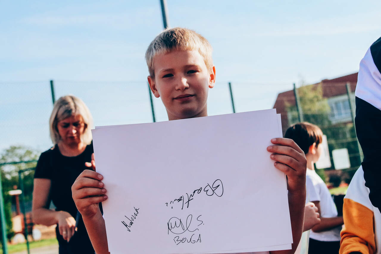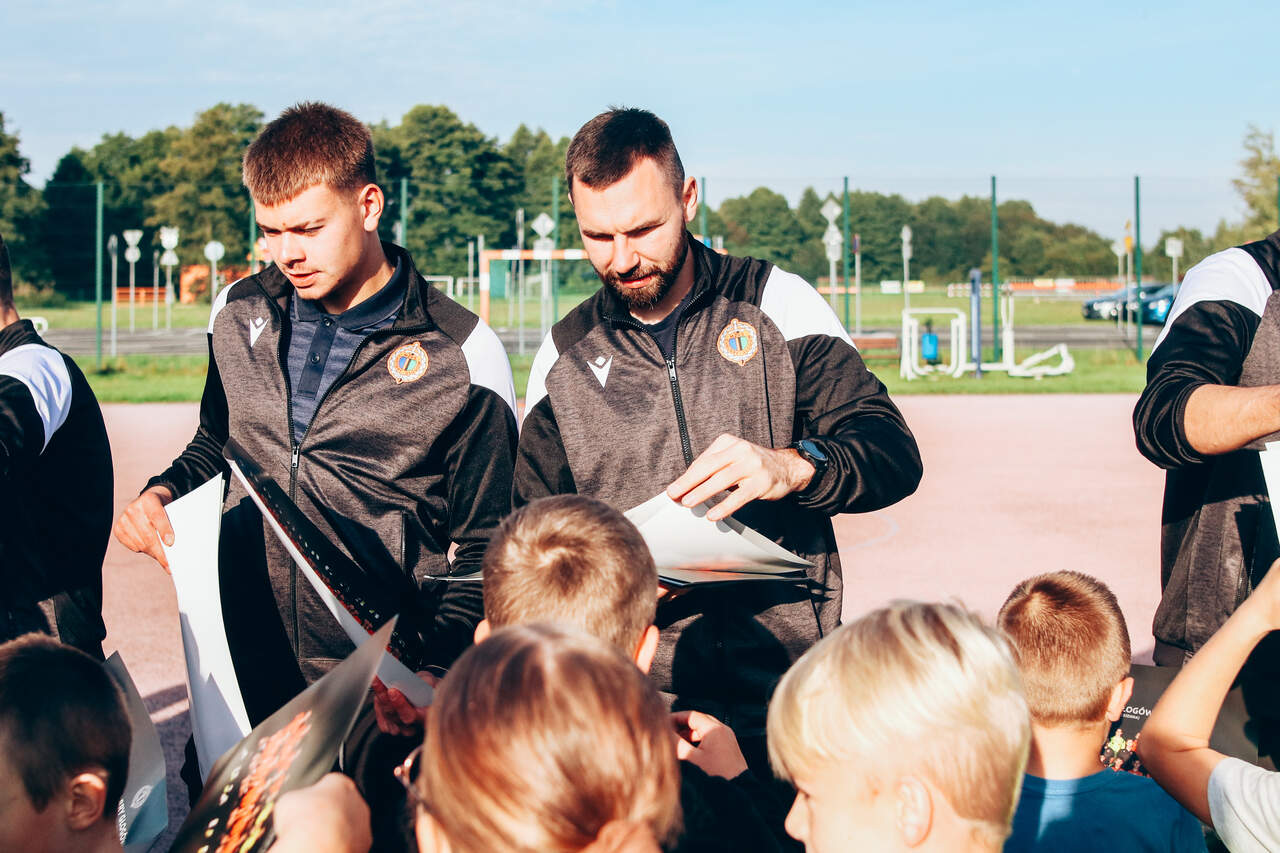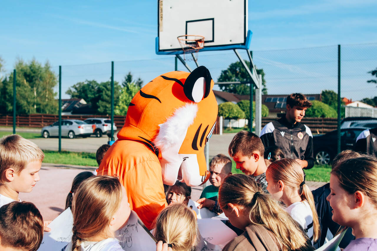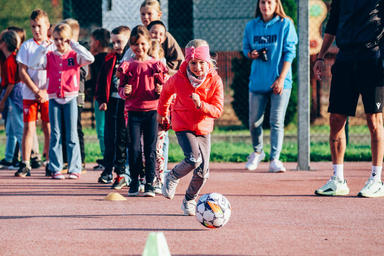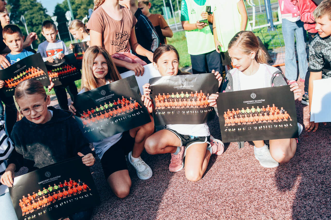 Chrobry z wizytą w Buczynie Chrobry Głogów z gościnną wizytą u najmłodszych klas Szkoły Podstawowej im. Marii Konopnickiej w Buczynie. 24-09-2024 03:03 autor: ŁJ W oddalonej od Głogowa o ponad 20 kilometrów miejscowości pojawiła się silna delegacja pierwszej drużyny, bo z Mavroudisem Bougaidisem, Mikołajem Lebedyńskim, Natanem Malczukiem, Szymonem Bartlewiczem i Marcelem Gawłowskim. Nasi zawodnicy zostali wsparci klubową maskotką i trenerem Akademii Piłki Nożnej Pawłem Marszałkiem, który najpierw poprowadził rozgrzewkę, a następnie sędziował pokazowy mecz reprezentacji szkoły z Chrobrym. Bardzo miłe spotkanie zostało zakończone rozdaniem plakatów, zdjęciami i autografami. Dziękujemy za przyjęcie i do zobaczenia!