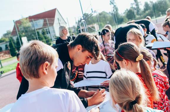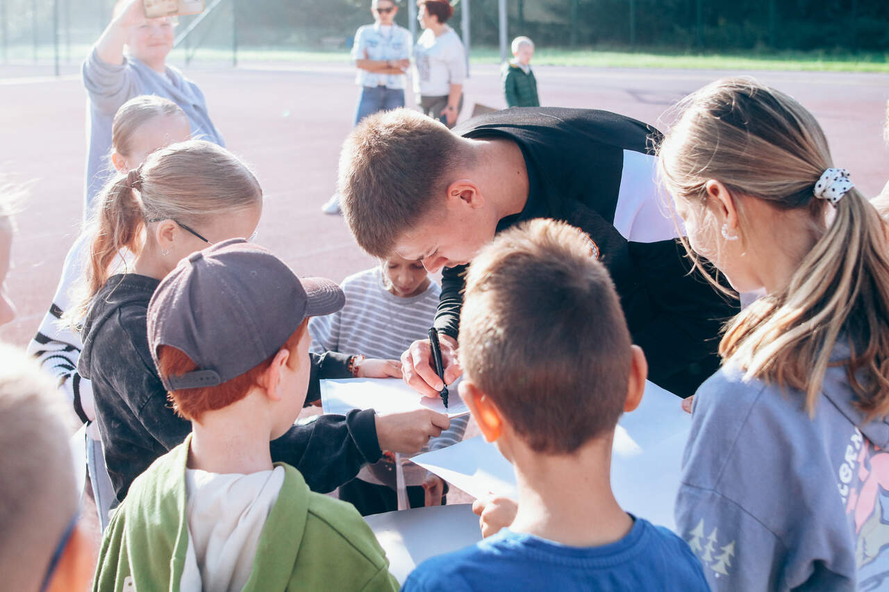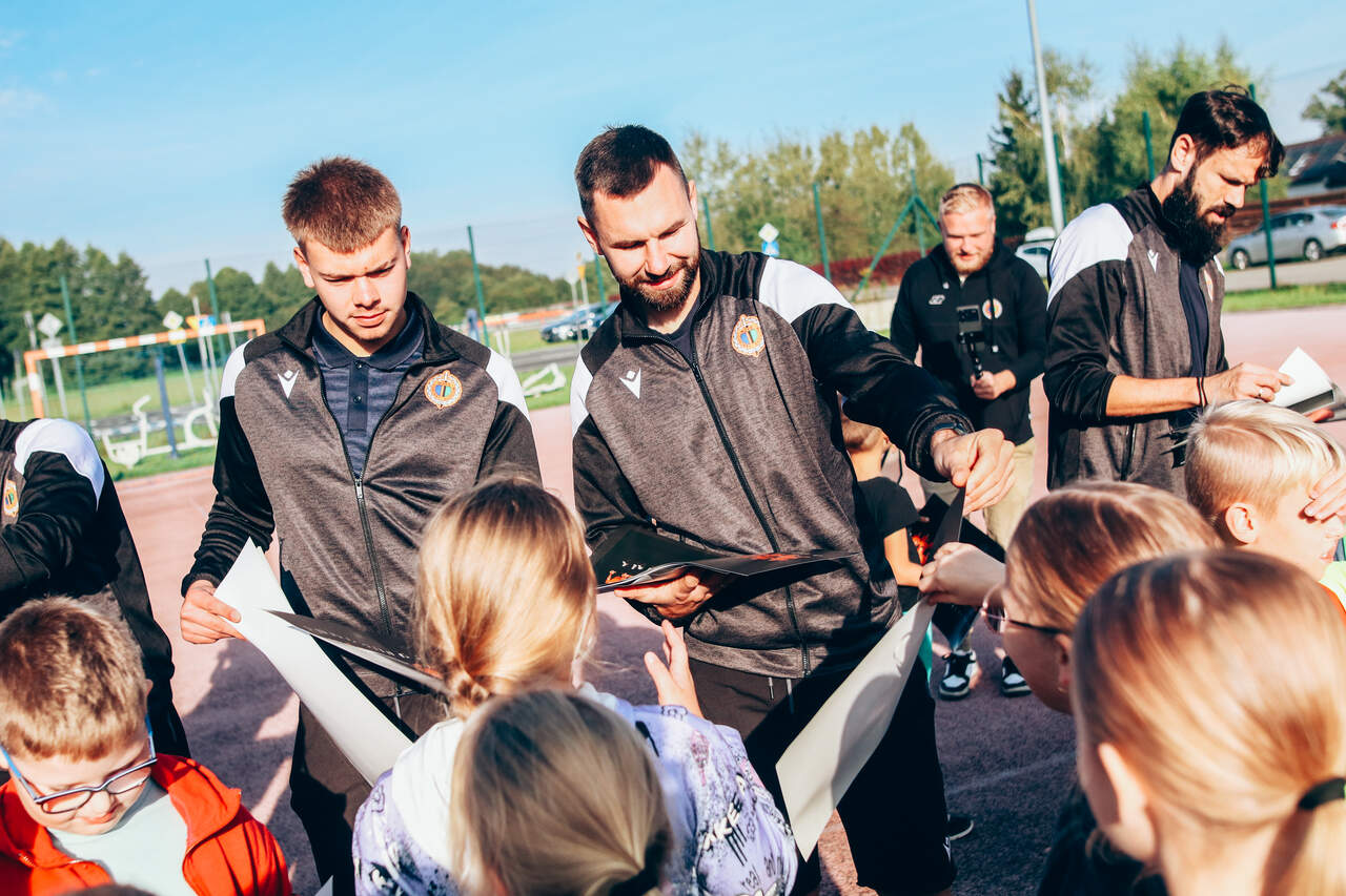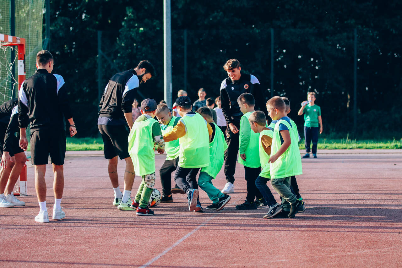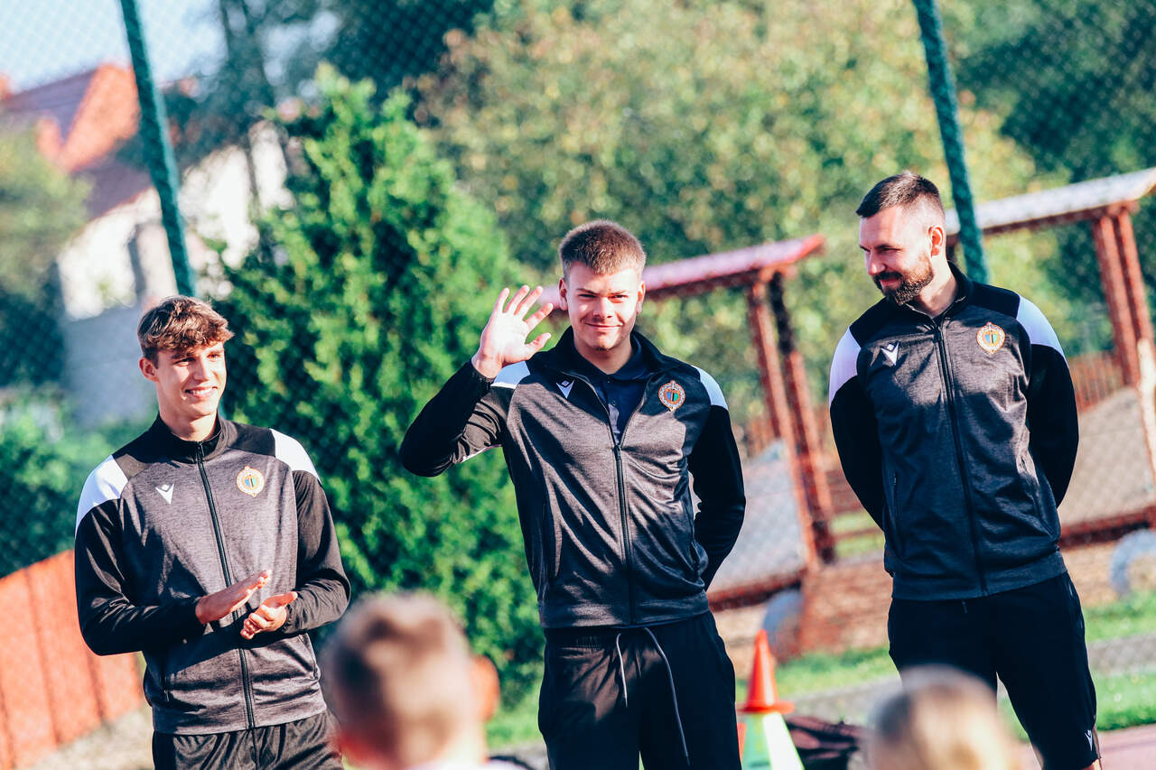 Chrobry z wizytą w Buczynie Chrobry Głogów z gościnną wizytą u najmłodszych klas Szkoły Podstawowej im. Marii Konopnickiej w Buczynie. 24-09-2024 03:03 autor: ŁJ W oddalonej od Głogowa o ponad 20 kilometrów miejscowości pojawiła się silna delegacja pierwszej drużyny, bo z Mavroudisem Bougaidisem, Mikołajem Lebedyńskim, Natanem Malczukiem, Szymonem Bartlewiczem i Marcelem Gawłowskim. Nasi zawodnicy zostali wsparci klubową maskotką i trenerem Akademii Piłki Nożnej Pawłem Marszałkiem, który najpierw poprowadził rozgrzewkę, a następnie sędziował pokazowy mecz reprezentacji szkoły z Chrobrym. Bardzo miłe spotkanie zostało zakończone rozdaniem plakatów, zdjęciami i autografami. Dziękujemy za przyjęcie i do zobaczenia!