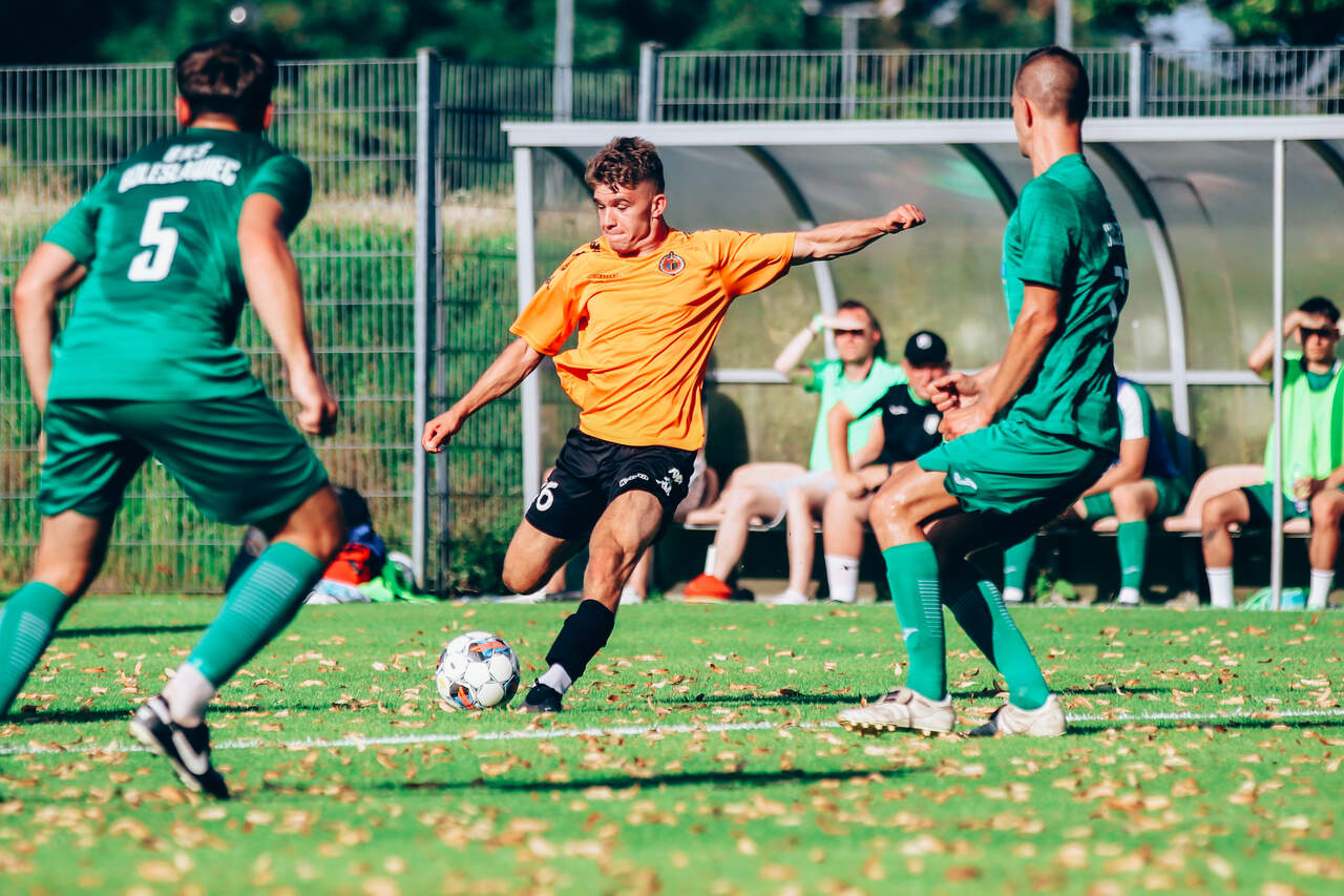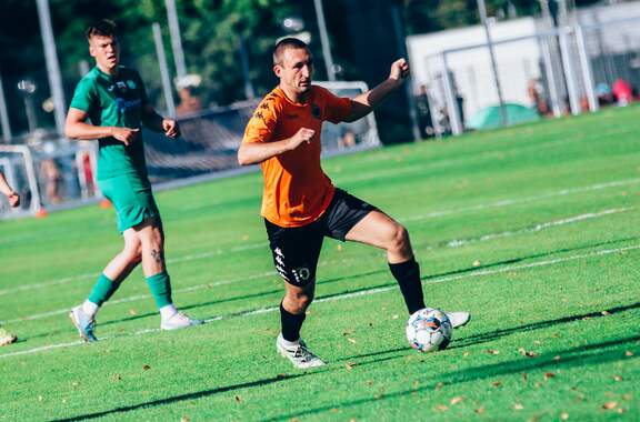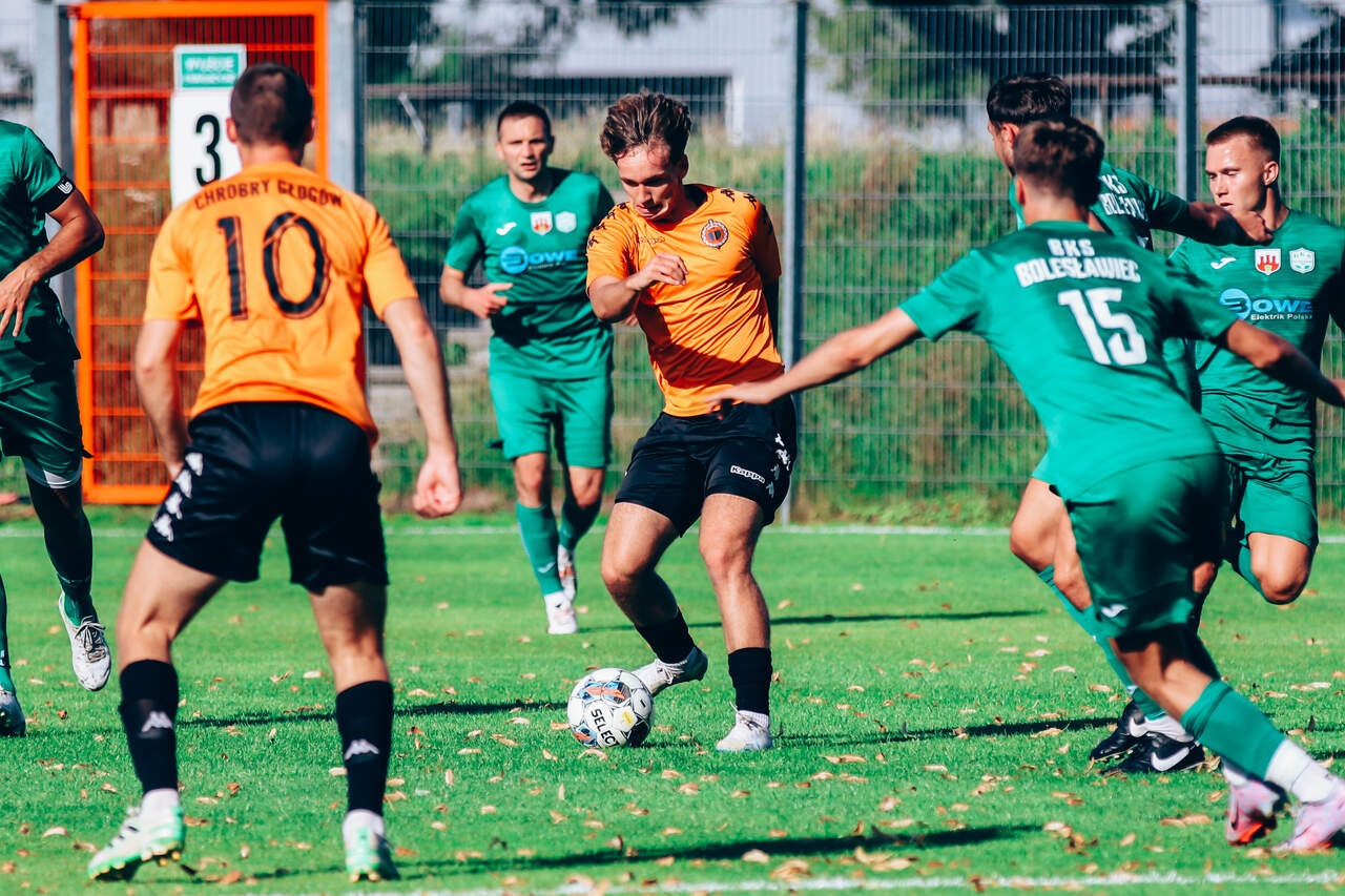 Od 0:1 do 2:1. Chrobry II pokonuje BKS Bolesławiec W 2 kolejce Koleje Dolnośląskie 4 Ligi drugi Chrobry z pierwszym kompletem punktów. 15-08-2023 06:55 autor: ŁJ Mimo dobrego, ofensywnego początku prowadzenie objęli rywale. W 12 minucie wstrzelił się Oliwer Janczak, ale Chrobry zdołał sprawnie odpowiedzieć i już w 17 minucie Ziemowit Witczak doprowadził do wyrównania. Od tego momentu napór głogowian nie ustawał, choć trzeba było wykazać się cierpliwością. Akcję na wagę zwycięstwa przeprowadzono w 77 minucie. Na czystą pozycję wyszedł przebywający na boisku od 46 minuty Olaf Zygmunt i pewnie umieścił piłkę w bramce. W końcówce Chrobry dla odmiany skupił się na obronie korzystnego wyniku. Kilka razy zrobiło się gorąco w polu karnym, ale koniec końców trzy punkty zasłużenie pozostały w Głogowie. W 3 kolejce w sobotę 19 sierpnia Chrobrego II czeka wyjazd do Żmigrodu na mecz z Piastem. CHROBRY II GŁOGÓW - BKS BOLESŁAWIEC 2:1 (1:1) 0:1 Janczak 12 1:1 Witczak 17 2:1 Zygmunt 77 CHROBRY II: Turkiewicz - Malczuk, Jandziak, Maćkowiak, Pieczarka (90 Janiszewski), Wojciechowski (77 Bartecki), Antkowiak (46 Zygmunt), Tworzydło (83 Fryzowicz), Hanc, Jurgo (55 Antosik), Witczak (90 Wysoczański). ŻÓŁTE KARTKI (CHROBRY II): Zygmunt, Malczuk.