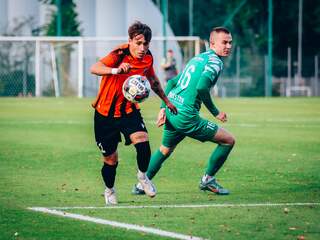 ChG II: Hat-trick Mateusza Machaja i wolny w 90 minucie na wagę punktu! Co to był za mecz! W 12 kolejce Kolei Dolnośląskich 4 Ligi Chrobry II przegrywał z Piastem Żmigród 0:2 i 1:3, a i tak zremisował 3:3. 12-10-2024 07:03 autor: ŁJ ⏱️ 90 minuta, Twój zespół przegrywa 2:3, a Ty masz rzut wolny. Mati Machaj w Chrobrym II wciąż ma to COŚ! 💥 pic.twitter.com/EvV81Rc1qL— Chrobry Głogów (@ChrobryGlogowSA) October 12, 2024 Pierwsza połowa należała do rywali, którzy dwukrotnie pokonali Marcela Gawłowskiego. 0:2 było już w 19 minucie, choć Chrobry miał z czego odpowiedzieć. Najbardziej szkoda strzału Bartosza Biela, po którym piłka odbiła się od słupka. Po zmianie stron działo się bardzo dużo, a wydarzeniami z tej części gry można obdzielić kilka spotkań. W pierwszych minutach sporo zagrożenia było ze strony gości, ale kontaktowego gola w 60 minucie zdobył Chrobry. Na listę strzelców wpisał się wtedy Mateusz Machaj, który dosłownie po chwili miał szansę na 2:2. Remisu jeszcze wtedy nie było, za to po kolejnych kilku minutach było 1:3, a mogło być nawet 1:4. W 68 minucie trzeciego gola dla Piasta zdobył Vladyslav Shvets, a w 73 minucie faulujący w szesnastce Marcel Gawłowski obronił podyktowany rzut karny, więc głogowianie mimo wszystko pozostawali w grze. W końcówce prawdziwy popis dał Mateusz Machaj. W 89 minucie trafił po raz drugi, a po tym Pomarańczowo-Czarni mocno nacierali. Jeden z ataków przyniósł im rzut wolny. Był już doliczony czas gry, jednak Mateusz Machaj wytrzymał tę presję i pięknym strzałem nie dał szans bramkarzowi Piasta i swojej drużynie wartościowy, bo zdobyty po tak emocjonującym pojedynku punkt. CHROBRY II GŁOGÓW - PIAST ŻMIGRÓD 3:3 (0:2) 0:1 Ograbek 11 0:2 Kotyla 19 1:2 Machaj 60 1:3 Shvets 68 2:3 Machaj 89 3:3 Machaj 90 CHROBRY II: Gawłowski - Marcinkowski, Diduszko (86 Francus), Skowronek (58 Bartecki), Wojtal (74 Witczak), Janik, Grzelak, Biel (74 Antkowiak), Rosa (58 Buszewski), Wojciechowski (74 Marciniak), Machaj. ŻÓŁTE KARTKI (CHROBRY II): Wojtal, Machaj, Gawłowski, Francus, Janik.