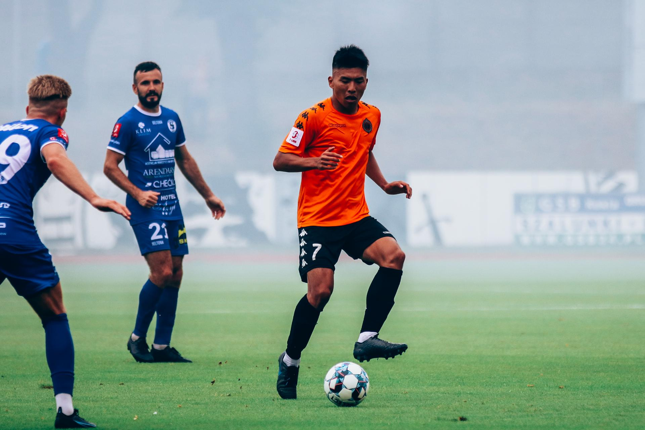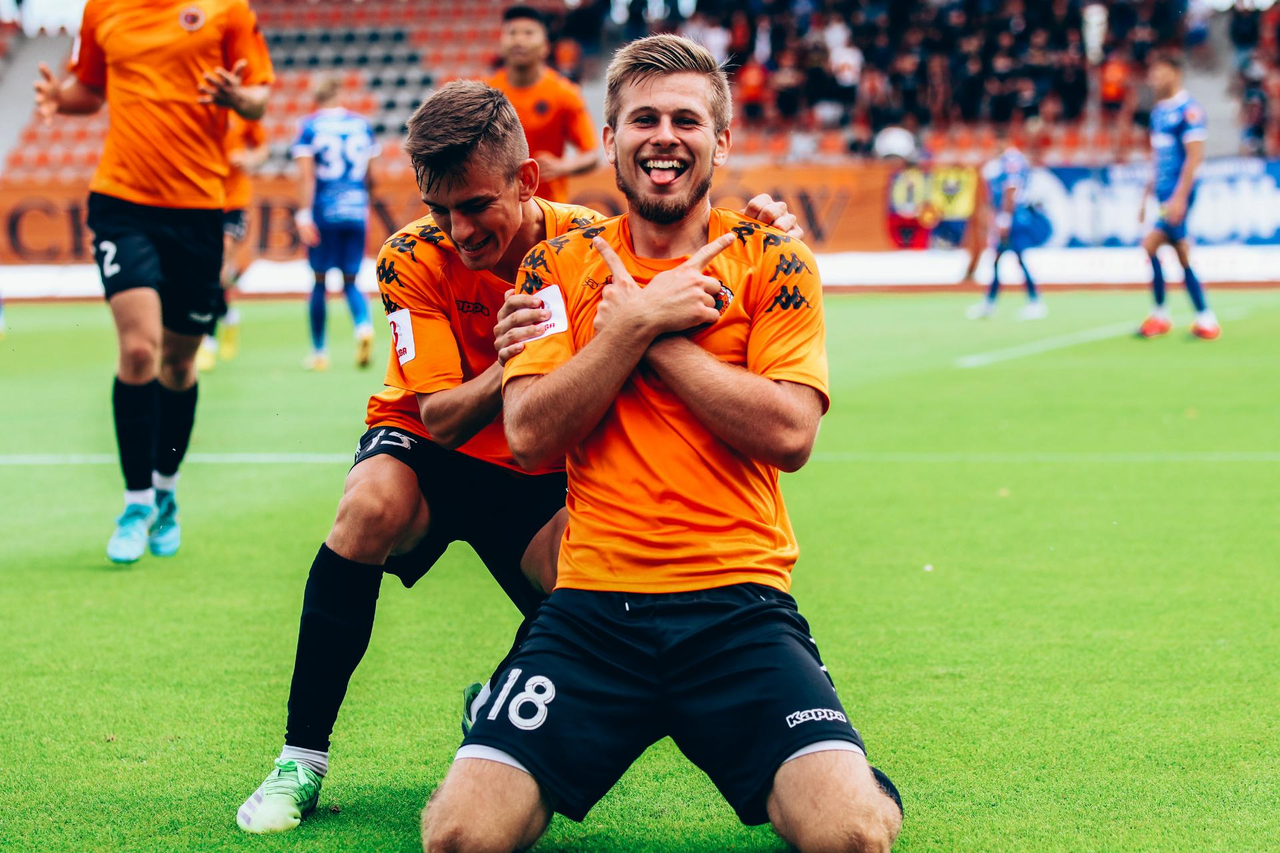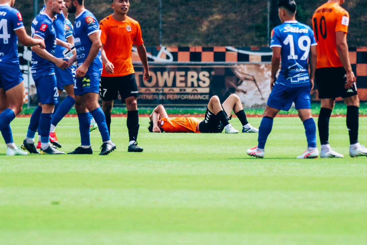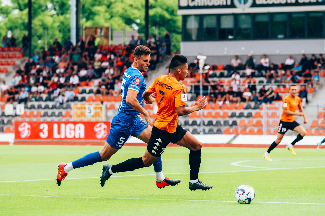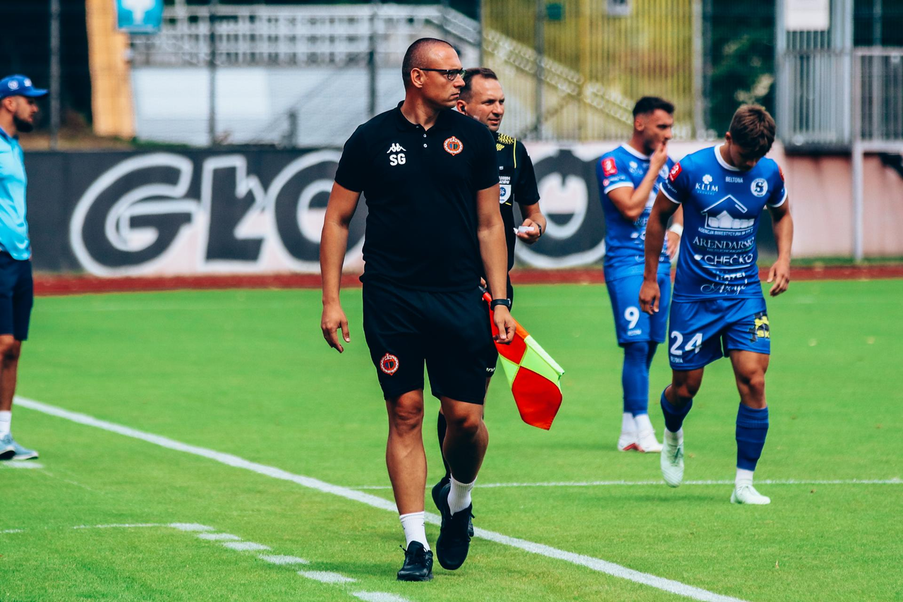 3 LIGA: Chrobry II Głogów - Stilon Gorzów 2:3 W 2 kolejce 3 Ligi Chrobry II Głogów przegrał ze Stilonem Gorzów 2:3. 13-08-2022 02:15 autor: ŁJ Mecz świetnie ułożył się dla Stilonu, który wykorzystał pierwszą groźniejszą okazję. W 3 minucie po wrzutce z lewej strony celnie główkował Emil Drozdowicz. Chrobry nabierał rozpędu, najpierw mając groźne, choć niecelne uderzenie Eryka Pieczarki z rzutu wolnego. Wykorzystał za to kolejną dobrą okazję. W 28 minucie Miłosz Jóźwiak mimo ostrego kąta wpakował piłkę do środka. Pomarańczowo-Czarni poszli za ciosem w ofensywnych zapędach, ale wynik nie uległ zmianie. Nawet wtedy, gdy w samej końcówce, po rzucie rożnym, bardzo dobrą szansę stworzyli dla odmiany goście – przy niej dobrze interweniował Bartek Szafer. Końcowy wynik pozostawał sprawą otwartą, lecz po zmianie stron więcej z przodu mieli rywale i potrafili to wykorzystać. W 52 minucie po raz kolejny nie pomylił się doświadczony Emil Drozdowicz, a w 71 minucie, po zamieszaniu w szesnastce głogowian, futbolówkę do własnej bramki pechowo skierował Miłosz Jandziak. Chrobry powalczył do końca i postarał się przynajmniej o emocje w ostatnich minutach. W 83 minucie z kilkunastu metrów wstrzelił się Bartosz Matysiak i ponownie Pomarańczowo-Czarni byli w grze. W doliczonym czasie przeprowadzili jeszcze jedną akcję, jednak mimo oddania strzału i rykoszetu piłka przeleciała tuż obok słupka, a z punktami wyjechali gorzowianie. Spotkanie skomentował trener Chrobrego II Sebastian Górski. - Przede wszystkich chciałbym podziękować wszystkim ludziom, którzy dziś pojawili się na trybunach, bo stworzyli dobrą atmosferę do gry w piłkę nożną. W takich okolicznościach przyjemnie jest rywalizować. Nasz zespół stworzony jest głównie z młodych wychowanków naszego klubu i dla nich takie wsparcie jest bardzo wartościowe i powoduje poczucie przynależności do klubu. Dziękuję w imieniu zespołu i zapraszam na kolejne spotkania. - Co do naszej gry widać brak doświadczenia. Duże pobudzenie emocjonalne powoduje, że nie bierzemy ciężaru gry na siebie. Dotychczas wyróżniał nas styl, model gry nad którym pracujemy, a w tych pierwszych dwóch spotkaniach więcej było emocji niż gry w piłkę. Wierzę w ten zespół i wiem, że z meczu na mecz emocje będą opadać, a my będziemy realizować założenia w grze. Wyniki bierzemy na klatę - nasi wychowankowie mają się rozwijać. Taki jest cel. Następny mecz w środę w Zielonej Górze. Początek spotkania z miejscową Lechią o godz. 17.00. CHROBRY II GŁOGÓW – STILON GORZÓW 2:3 (1:1) 0:1 Drozdowicz 3 1:1 Jóźwiak 28 1:2 Drozdowicz 52 1:3 Jandziak 71 (sam.) 2:3 Matysiak 83 CHROBRY II: Szafer – Pieczarka, Malczuk (76 Maćkowiak), Zarówny, Wawrzyniak, Jandziak, Inoue, Bartlewicz (68 Matysiak), Iwanowicz (62 Zygmunt), Jóźwiak (46 Wojtyra), Wojciechowski (62 Krawiec). STILON: Łodej – Sadowski, Świerczyński (46 Bohdanov), Kaczor (65 Poniedziałek), Maliszewski (72 Nowak), Trepczyński, Kaniewski (46 Ishizuka), Wiśniewski, Drozdowicz, Łaźniowski (39 Przybylski), Kopeć. ŻÓŁTE KARTKI: Iwanowicz – Kaniewski, Bohdanov. WIDZÓW: 355.