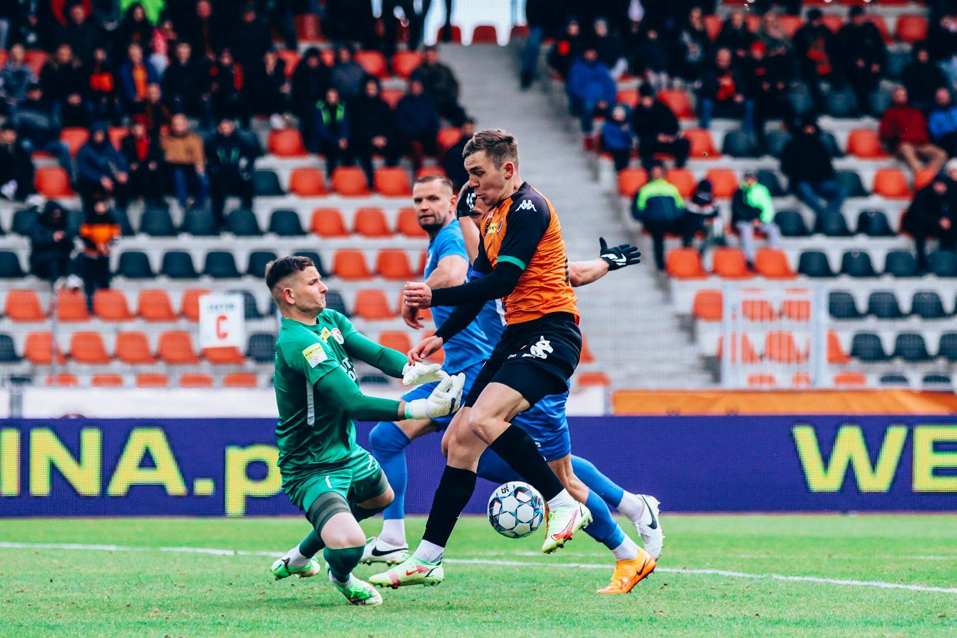 SZKODA, ALE SERIA WCIĄŻ TRWA Szkoda końcówki i straty dwóch goli, ale seria nadal trwa i to ósmy mecz z rzędu bez porażki. 03-04-2022 03:00 autor: ŁJ Jeszcze w 87 minucie Chrobry prowadził z Puszczą Niepołomice 2:0 i choć ostatecznie skończyło się na bolącym 2:2, trzeba na to patrzeć jak na ósmy mecz z rzędu bez porażki. Do składu Chrobrego powrócił wcześniej kontuzjowany Oliver Praznovsky, który środek obrony tworzył z Michałem Michalcem. Pauzującego za kartki Mikołaja Lebedyńskiego zastąpił natomiast Dennis van der Heijden. Z tymi zmianami głogowianie przystąpili do rywalizacji z Puszczą. Początkowo to goście napierali, mając groźne wrzutki po stałych fragmentach gry, ale Chrobry czekał, czekał, a jak swoje wyczekał, to ruszył bardziej konkretnie. Po strzale Mateusza Bochnaka piłkę na rzut rożny skierował interweniujący Gabriel Kobylak. Z tego był rzut rożny, po którego dośrodkowaniu od Mateusza Machaja groźnie obok bramki główkował Michał Michalec. Wreszcie w 29 minucie po bardzo efektownej akcji z podaniami, którymi wymieniali się w biegu Dominik Piła z Dennisem van der Heijdenem, już w polu karnym rywalami pokręcił kończący wszystko Dennis van der Heijden i zdobył tak bardzo wyczekiwanego przez siebie gola. Po kilku chwilach mogło być 2:0, ale po dograniu Dennisa van der Heijdena i strzale z woleja w wykonaniu Mateusza Machaja świetnie interweniował bramkarz Puszczy. Dopiero w końcówce mocniej musiał wykazać się Rafał Leszczyński, który po strzale Roka Kidrica zebrał oklaski za swoją obronę. Po zmianie stron Chrobry nadal atakował. Groźnie uderzali Dominik Piła z Michałem Michalcem. W 55 minucie rzut rożny, już któryś z kolei w tej odsłonie, wykonywał Mateusz Machaj, po czym Oliver Praznovsky na raty wpakował piłkę do środka. Było 2:0, okazje na więcej, więc wydawało się, że tu nic niebezpiecznego nie ma już prawa się stać. Piłka nożna jednak po raz kolejny udowodniła, że w tej dyscyplinie można wiele. Walcząca o utrzymanie Puszcza pokazała to w końcówce. Jeszcze w 83 minucie świetną paradą po próbie Kacpra Cichonia popisał się Rafał Leszczyński. Niestety, skapitulował po raz pierwszy w tym roku w 88 minucie, gdy rywale zrobili użytek z wyrzutu piłki z autu, a po jej przedłużeniu wstrzelił się Szymon Kobusiński. Już w 90 minucie do remisu doprowadził Piotr Mroziński. Szkoda… ale to wciąż trwająca seria bez porażki. Najbliższy tydzień będzie dla Chrobrego mocno wyjazdowy. W czwartek w Bełchatowie mecz ze Skrą Częstochowa (godz. 18.00), a w niedzielę w Jastrzębiu spotkanie z GKS-em (godz. 15.00). Powrót na Wita Stwosza nastąpi w sobotę 16 kwietnia, na kiedy zaplanowano mecz z Koroną Kielce (godz. 12.40).