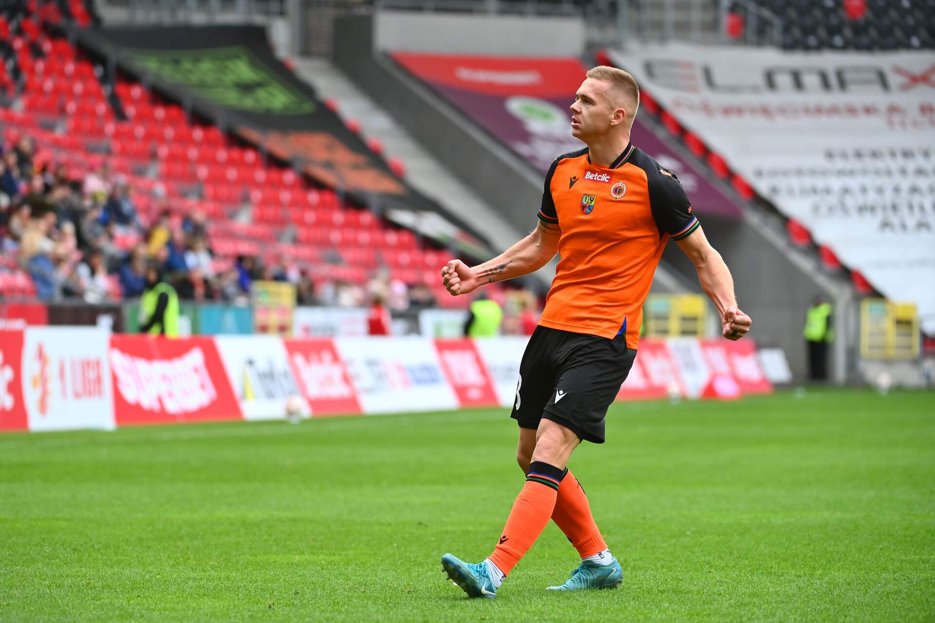 Chrobry blisko bariery 700 goli w pierwszej lidze Chrobry Głogów zbliża się do imponującej granicy 700 bramek zdobytych na poziomie pierwszej ligi. Aktualnie, przed meczem ze Zniczem Pruszków, ma ich na koncie 698. 05-11-2025 09:59 autor: ŁJ 698. gola zdobył Jakub Grič, a jego trafienie zapewniło wówczas zwycięstwo w Tychach. Pomarańczowo-Czarni nie poprawili tego dorobku w spotkaniu z bardzo silną w tym sezonie Wisłą Kraków, ale z pewnością będą chcieli dokonać tego w piątkowym meczu w Pruszkowie. Kibice chcieliby, by jubileuszowy – 700. gol – przyszedł w parze ze zwycięstwem już teraz. Nie będzie to jednak łatwe zadanie. Choć Znicz Pruszków zamyka tabelę, potrafi być groźny, o czym niedawno przekonał się Śląsk Wrocław, przegrywając na wyjeździe 1:2 – m.in. po trafieniu byłego reprezentanta Polski Radosława Majewskiego. Ostatnim autorem „okrągłej” bramki był Patryk Mucha, który w zremisowanym 1:1 meczu z Resovią Rzeszów w sezonie 2022/23 wpisał się na listę strzelców po raz 600. Wcześniejsze jubileuszowe trafienia należały m.in. do Mikołaja Lebedyńskiego i Mateusza Machaja. Jubileuszowe gole Chrobrego Głogów w I lidze: 1. gol: Krzysztof Teper – Zawisza Bydgoszcz – Chrobry Głogów 1:1 (26.08.1984) 100. gol: Remigiusz Bukowski – Chrobry Głogów – Naprzód Rydułtowy 1:1 (07.08.1993) 200. gol: Piotr Heintze – Naprzód Rydułtowy – Chrobry Głogów 5:2 (31.08.1996) 300. gol: Maciej Górski – Chrobry Głogów – Rozwój Katowice 1:2 (02.04.2016) 400. gol: Mateusz Machaj – Chrobry Głogów – Pogoń Siedlce 3:1 (11.04.2018) 500. gol: Mikołaj Lebedyński – Zagłębie Sosnowiec – Chrobry Głogów 1:2 (21.11.2020) 600. gol: Patryk Mucha – Resovia Rzeszów – Chrobry Głogów 1:1 (14.04.2023) *Na potrzeby tego zestawienia nie uwzględniono meczu z Górnikiem Wałbrzych z sezonu 1991/92 z uwagi na wycofanie się tej drużyny. Choć bramki w tamtym spotkaniu padły, Górnik ostatecznie nie został sklasyfikowany. Zestawienie nie obejmuje również meczów barażowych. autorem statystyk jest Tomasz Rubiś