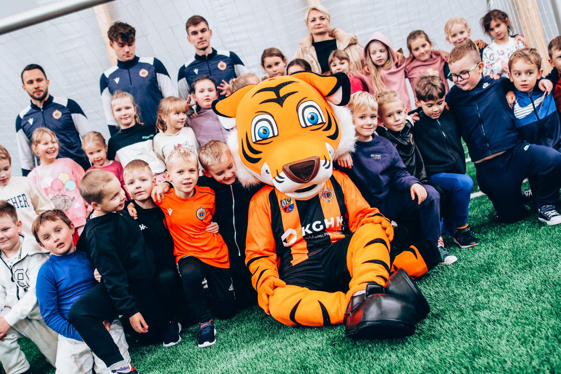 Z Chrobrym spotkało się 700 dzieci W trakcie pierwszej połowy roku szkolnego zorganizowaliśmy 15 spotkań z uczniami i przedszkolakami. Czas na kolejne grupy. 08-01-2025 12:59 autor: ŁJ Po wrześniowej inauguracji roku szkolnego daliśmy wszystkim kilka tygodni na wdrożenie się w powakacyjne obowiązki i… ruszyliśmy. Do szkół i przedszkoli. W Głogowie, ale byliśmy też poza miastem - w Jaczowie, a nawet w Buczynie. W sumie od października do końca roku byliśmy lub zaprosiliśmy do siebie 6 szkół, 9 przedszkoli. Dzięki temu 700 najmłodszych mieszkańców naszego miasta i okolic miało okazję spotkać się z Chrobrym. W przedszkolach organizowaliśmy mini-trening Akademii Piłki Nożnej, dzięki czemu najmłodsi mieli namiastkę tego, jak trenują ich rówieśnicy na prawdziwych boiskach w Chrobrym. Do szkół udawali się natomiast piłkarze pierwszej drużyny, aby - przykładowo - rozegrać towarzyski mecz ze szkolną reprezentacją. Czasami jednak to szkoła lub przedszkole odwiedzało nas na Wita Stwosza, gdzie trenowaliśmy na boisku pod „balonem” i zwiedzaliśmy różne, często niedostępne w trakcie meczów zakamarki stadionu. A do tego wszystkiego obecność klubowej maskotki, pomarańczowo-czarne upominki i mnóstwo dobrej zabawy, poprzez którą pokazujemy, że sport to jest taki element, o który warto w swoim jeszcze niedorosłym życiu zadbać. A skoro w szkołach rozpoczął się nowy semestr, my rozpoczynamy zapisy na organizację takiego spotkania z Chrobrym na tę część roku. Trochę terminów jest już zarezerwowanych, ale nie wszystkie. Dlatego zapraszamy do kontaktu! Umów wizytę: Tomasz Olczak Tel. 504 591 831
