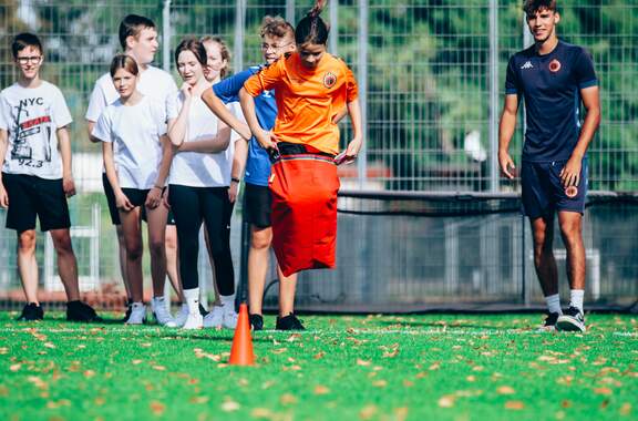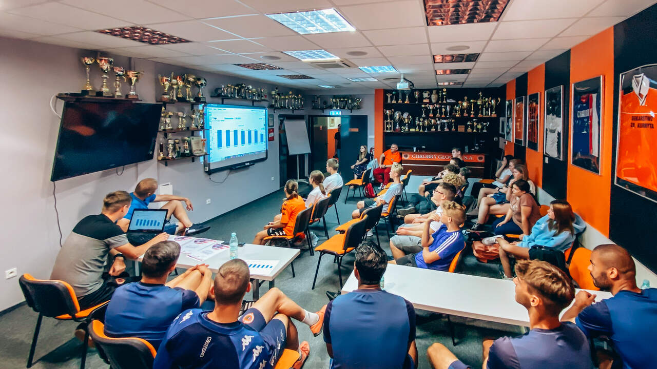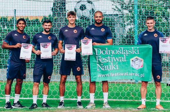 Chrobry wziął udział w Dolnośląskim Festiwalu Nauki Trening uczniów prowadzony przez piłkarzy i monitorowany przez system GPS, którego działania wyjaśnili trenerzy, czyli Chrobry na Dolnośląski Festiwal Nauki. 03-10-2023 11:03 autor: AM / ŁJ Po raz czwarty Chrobry Głogów wziął czynny udział w Dolnośląskim Festiwalu Nauki, którego 26 edycja przebiegała pod hasłem NAUKA PORUSZA. Tym razem przygotowaliśmy dla uczniów zajęcia praktyczne i teoretyczne, a temat zaproponował trener przygotowania motorycznego Maciej Idczak, członek sztabu szkoleniowego pierwszego zespołu. Poruszyliśmy temat: Technologia GPS w treningu piłkarskim, a z zajęć skorzystali uczniowie klasy 8A i 8B ze Szkoły Podstawowej nr 12 z Oddziałami integracyjnymi im. Kawalerów Orderu Uśmiechu. Część praktyczną zajęć, czyli trening na boisku poprowadzili piłkarze pierwszego zespołu, biorąc też w nim czynny udział. Natan Malczuk poprowadził rozgrzewkę, Mateusz Machaj konkurencje sprawnościowe, a Mateusz Ozimek sędziował mecz, który był monitorowany poprzez nadajniki GPS. Obie drużyny były wspierane przez Gabriela Estigarribię i Jesusa Paza. Dane z nadajników zostały na koniec przeanalizowane przez trenerów Maćka Idczaka i Piotra Plewnię. Wszyscy uczestnicy zajęć byli niesamowicie zaangażowani i było sporo pytań o rozmów o sporcie i zdrowym stylu życia. Fajnie było gościć w klubie tak pozytywne dzieciaki, więc obie klasy otrzymały w nagrodę bilety na nasz najbliższy mecz z Odrą Opole, a najbardziej zaangażowani zestawy upominków od klubu i organizatora Festiwalu. Wydarzenie w Głogowie trwa jeszcze do 4 października a program jest dostępny na stronie: https://www.festiwal.wroc.pl/program/ Serdecznie polecamy i zapraszamy do skorzystania z oferty.
