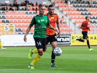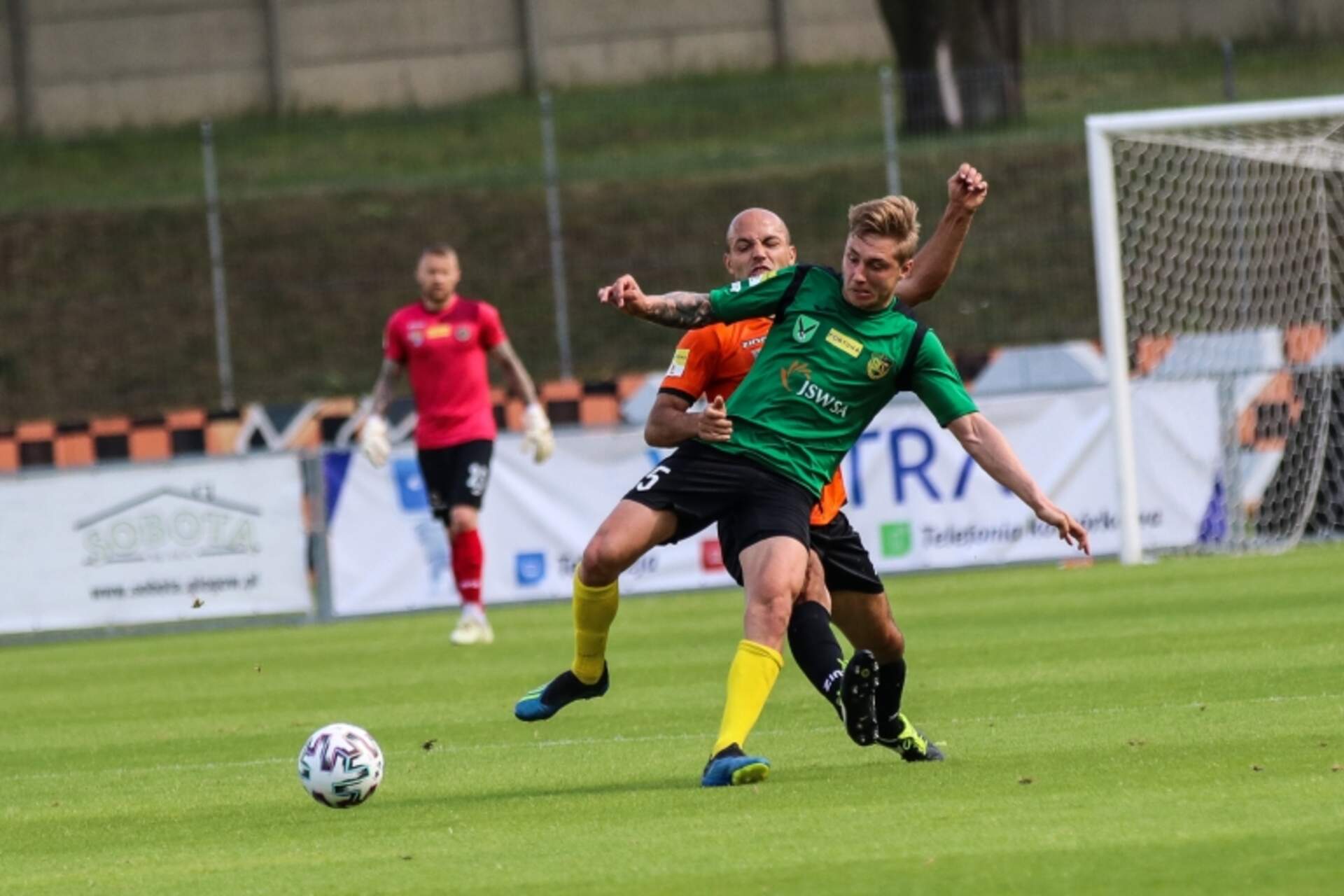 Chrobry z kolejnym punktem. Bez goli przy WS3 Chrobry pod względem stworzonych sytuacji rozegrał najlepszy mecz po wznowieniu rozgrywek i choć nie dał on kompletu punktów, tylko jeden, każdy mniej lub bardziej może przybliżyć do realizacji celu. Chrobry - GKS Jastrzębie… 16-06-2020 08:01 autor: ŁJ Chrobry pod względem stworzonych sytuacji rozegrał najlepszy mecz po wznowieniu rozgrywek i choć nie dał on kompletu punktów, tylko jeden, każdy mniej lub bardziej może przybliżyć do realizacji celu. Chrobry - GKS Jastrzębie 0:0.Pierwszą okazję zobaczyliśmy w 10 minucie i należała do rywali. Petr Galuska główkował po wrzutce z prawej strony, ale zrobił to niecelnie. Chrobry miał dobre sześćdziesiąt sekund między 19 a 20 minutą. Wtedy dwa razy uderzał na bramkę GKS-u. Najpierw zrobił to Maksymilian Banaszewski - dziś będący po raz pierwszy w wyjściowej jedenastce - następnie Damian Kowalczyk próbujący z pierwszej piłki po podaniu Roberta Mandrysza. Niestety, nie było z tego bramek, a swoją robotę między słupkami wykonywał Mariusz Pawełek. Swoje podobne sześćdziesiąt sekund mieli też przyjezdni. W 24 minucie za sprawą Farida Aliego skierowali futbolówkę na poprzeczkę, by po chwili i kolejnym strzale, tym razem Daniela Szczepana, interweniować musiał Michał Szromnik, odbijając futbolówkę na bok.Ostatni kwadrans pod względem sytuacji należał do Pomarańczowo-Czarnych. W 30 minucie składną akcję starał się głową wykończyć Robert Mandrysz, trafiając jednak w bramkarza. W 40 minucie przy rzucie rożnym wykonywanym przez Szymona Drewniaka groźnie, choć niecelnie głową strzelał natomiast Michał Michalec. A tuż przed końcem na dobrą pozycją po dograniu Marcela Ziemanna wychodził Michał Ilków-Gołąb, lecz wobec jego mocnego uderzenia dobrze zachował się Mariusz Pawełek.Po zmianie stron więcej z gry, jeśli chodzi o posiadanie piłki czy próby konstruowania akcji, mieli piłkarze GKS-u. Ilość jednak nie do końca poszła w jakość i konkretniejsi z przodu byli głogowianie. W 62 minucie w powietrzu piłkę przejął wbiegający w szesnastkę Adrian Benedyczak, naciskany przez rywala zdołał nawet oddać strzał, ale bardzo dobrym wyczuciem popisał się Pawełek. W 75 minucie niecelnie z dystansu przymierzył Marcel Ziemann, a na samym finiszu głogowianie przycisnęli jeszcze bardziej, jakby do tej pory usypiając czujność przeciwnika i wykorzystując odpowiedni moment. Swoje szanse mieli Benedyczak i wchodzący wcześniej Miłosz Kozak, lecz choć dla Chrobrego był to najlepszy pod względem akcji mecz rozegrany po przerwie, to skuteczność od początku do końca nie dopisywała. Dlatego na tym końcu Chrobry ma punkt, piąty po przerwie. W sytuacji walki o utrzymanie każdy może być cenny i oby tak było z nim.Teraz tylko dwa dni przerwy, bo już w piątek 27 kolejka i wyjazdowy mecz z Odrą Opole. Początek o godz. 20.10.