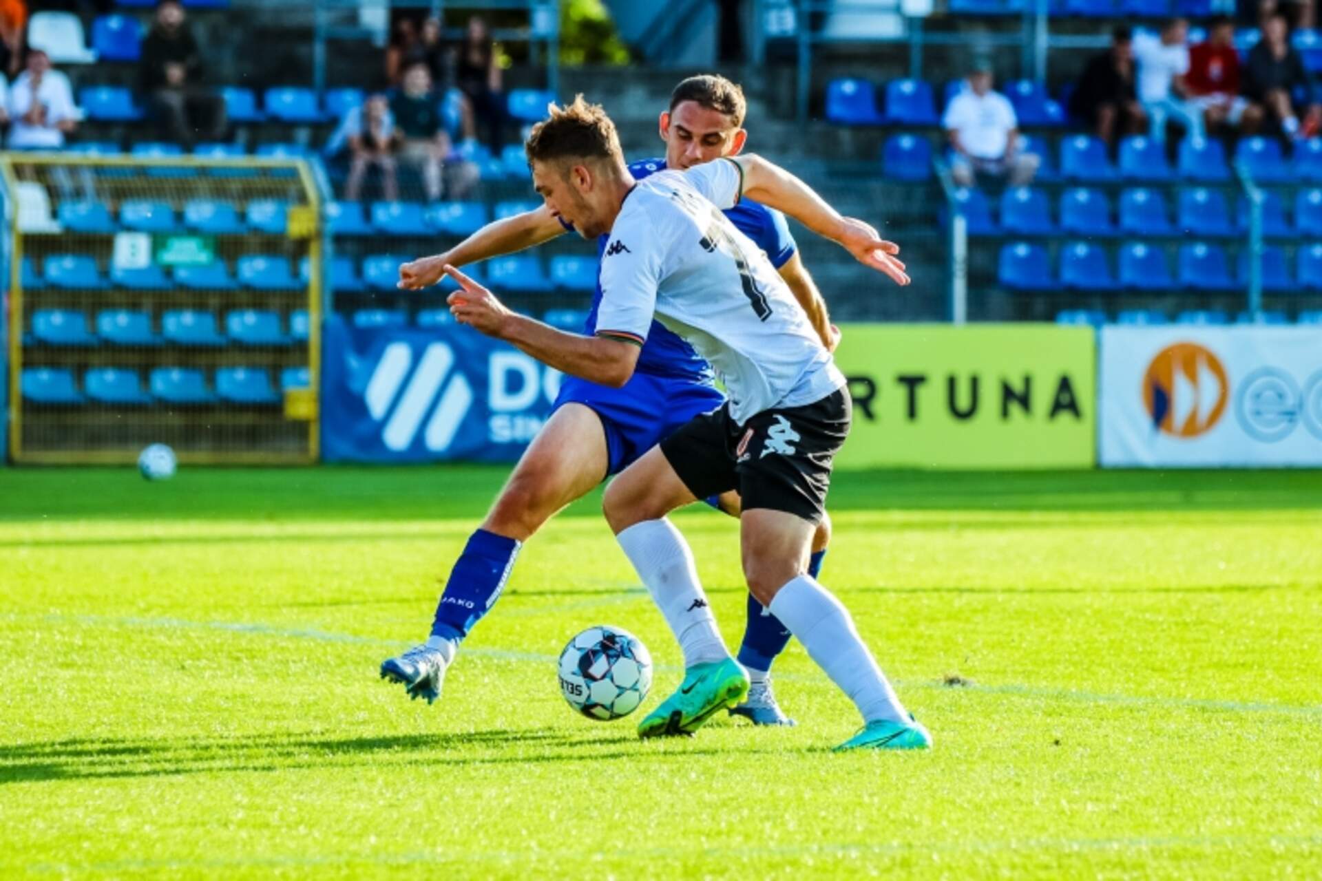 Czerwona kartka, rzut karny... Pech nie opuszcza Chrobrego Chrobry po raz drugi z rzędu wpada w kłopoty, grając tym razem w dziesięciu, i niewiele zabrakło, aby okazał się specjalistą radzenia sobie z trudnymi sytuacjami. Po golu w 89 minucie z rzutu karnego przegrywa jednak 0:1, tracąc… 23-08-2021 09:57 autor: ŁJ Chrobry po raz drugi z rzędu wpada w kłopoty, grając tym razem w dziesięciu, i niewiele zabrakło, aby okazał się specjalistą radzenia sobie z trudnymi sytuacjami. Po golu w 89 minucie z rzutu karnego przegrywa jednak 0:1, tracąc punkt, do którego zabrakło tak niewiele.Chrobry może żałować sytuacji z początku meczu, kiedy po dograniu Dominika Piły z pierwszej piłki starał się uderzać Mikołaj Lebedyński, lecz nie trafił czysto. Gdyby się udało, mogłoby to być bardzo groźne dla bramkarza Odry. Tymczasem później groźniej było po drugiej stronie. W 6 minucie na czystą pozycję wychodził Cezary Sauczek, lecz przegrał pojedynek z Rafałem Leszczyńskim. Głogowski bramkarz w świetnym stylu zatrzymał też zdecydowanie szarżującego w szesnastce Miłosza Trojaka w 20 minucie. Zawodnik opolan zdołał oddać strzał, ale pokonać Leszczyńskiego już nie. Bramkarz Pomarańczowo-Czarnych uratował sytuację wybiciem na rzut rożny.W 32 minucie Chrobrego zrobiło się dziesięciu. Czerwoną kartką ukarano Tomasza Cywkę, więc ostatnio pod tym względem mamy do czynienia z jakimś fatum.Gospodarze osiągnęli większą przewagę, lecz defensywa Chrobrego nie pozwoliła zamienić tego na bramkę. Ofensywa szukała natomiast swoich szans po stałych fragmentach. Po jednym z nich, w 41 minucie, było blisko. Na raty uderzał Mikołaj Lebedyński, przy czym za pierwszym razem dobrze interweniował Mateusz Kuchta, a za drugim napastnik głogowian został w porę przyblokowany. Po 45 minutach był bezbramkowy remis, a rywalizujący w osłabieniu Chrobry po raz drugi z rzędu musiał nastawić się na ciężkie 45 minut.Druga połowa - nie ma o czym mówić - to już zdecydowana przewaga Odry. Nabijała sobie procenty w utrzymywaniu się przy piłce, a Chrobry wytrącał ją z rytmu i bronił dostępu do bramki. Trzeba przyznać, że robił to niezwykle skutecznie. Momentami było tylko słychać dźwięk odbijanej różnymi częściami ciała futbolówki, kolanem, kostką i pewnie nie tylko. Odra poważniej zagroziła dopiero w 71 minucie po stałym fragmencie, przy którym kapitalną paradą popisał się Rafał Leszczyński. Kiedy wydawało się, że Pomarańczowo-Czarni po raz kolejny wyjdą obronną ręką z tarapatów i wywiozą z Opola punkt, ta ręka zadecydowała. W 89 minucie sędzia wskazał na rzut karny, widząc takie zagranie w szesnastce u Jakuba Michalczyka, a z tej pozycji Krzysztof Janus się nie pomylił. Chrobry miał jeszcze kilka minut, trenerzy posłali do gry Huberta Turskiego, lecz nic z tego. Odra pozostaje z kompletem punktów.