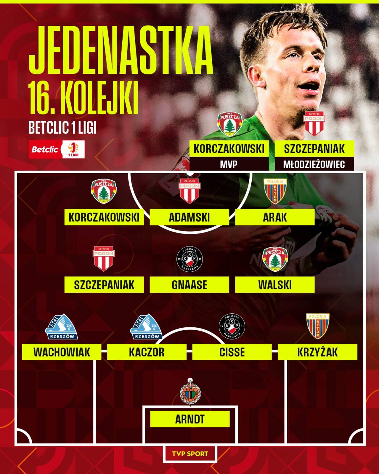 Dawid Arndt w jedenastce kolejki Dawid Arndt w najlepszej jedenastce 16. kolejki Betclic 1 Ligi. 11-11-2025 10:44 autor: ŁJ W oficjalnym zestawieniu wybranym przez redakcję TVP Sport to właśnie Dawid został wyróżniony jako przedstawiciel Chrobrego. W piątkowym meczu ze Zniczem Pruszków zaliczył kilka interwencji, które przybliżyły Pomarańczowo-Czarnych do zwycięstwa i sprawiły, że zespół już po raz szósty zakończył spotkanie z czystym kontem. Warto podkreślić, że defensywa Chrobrego, z dorobkiem zaledwie 14 straconych bramek, jest - obok Wisły Kraków - jedną z dwóch najlepszych w całej lidze. Nasza jedenastka 16. kolejki @_1liga_ ⚽Zgoda? pic.twitter.com/p1ypNOb00Y— TVP SPORT (@sport_tvppl) November 10, 2025