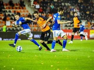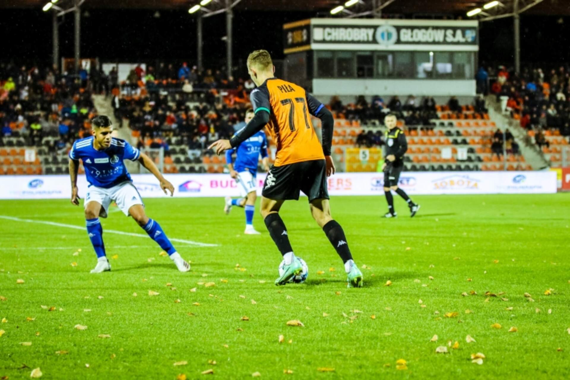 Derby znów nie zostały rozstrzygnięte Derby z Miedzią Legnica najczęściej kończyły się remisem i piątkowy mecz wpisał się w to idealnie. Okazje były po obu stronach, po jednej poprzeczka, po drugiej słupek, a po 90 minutach 0:0, czyli drugi bezbramkowy remis z… 23-10-2021 12:30 autor: ŁJ Derby z Miedzią Legnica najczęściej kończyły się remisem i piątkowy mecz wpisał się w to idealnie. Okazje były po obu stronach, po jednej poprzeczka, po drugiej słupek, a po 90 minutach 0:0, czyli drugi bezbramkowy remis z rzędu w derbach z Miedzią.W kadrze Chrobrego na mecz z Miedzią zabrakło jedynie Michała Ilkowa-Gołąba, którego niemal w ostatniej chwili wyeliminowała choroba. Miejsce na bokach obrony zajęli Marcel Ziemann z Adamem Banasiakiem, a na tym nie koniec zmian. Kolejną było wprowadzenie do „11” Jaki Kolenca za Tomasza Cywkę. Z tymi roszadami w wyjściowym składzie Chrobry przystąpił do 57. ligowych derbów z Miedzią.Chrobry nieźle zaczął. Było widać, że szuka swoich szans, bo zza pola karnego uderzali Dominik Piła czy Adam Banasiak. Groźne miał rzuty rożne. Po jednym niecelnie główkował Oliver Praznovsky, a bardzo blisko gola było po kolejnym. W 21 minucie po wrzutce Jaki Kolenca najwyżej do futbolówki wyskoczył Mavroudis Bougaidis, lecz po jego strzale ta obiła poprzeczkę.Kolejne fragmenty tej połowy lepiej ułożyły się dla rywali. Najgroźniej za ich sprawą było w 40 minucie, gdy będący w świetnej sytuacji, blisko bramki Patryk Makuch głową nie trafił w światło bramki.Było wietrznie i deszczowo, więc aż prosiło się o rozgrzewającego publiczność gola. Mimo szans, po 45 minutach utrzymywał się remis.Po zmianie stron aktywniejsi z przodu byli legniczanie. W 56 minucie mogli pokonać Rafała Leszczyńskiego, ale po raz kolejny próbujący Patryk Makuch nie miał szczęścia i trafił w słupek. Miedź w większości innych sytuacji nie była w stanie przebić się przez obronę Chrobrego, a jeśli już, to Rafał Leszczyński spisywał się bez zarzutu, choć starali się go zaskoczyć Jurich Carolina, Michał Bednarski i ponownie Patryk Makuch. Chrobry natomiast nie miał aż tyle z przodu. Większych pod tym względem emocji dostarczył dopiero doliczony czas gry. Wtedy to Pomarańczowo-Czarni przycisnęli i po jednej z akcji bohaterem pojedynku mógł zostać Robert Mandrysz. Kończył całość uderzeniem zza pola karnego, po którym piłkę na rzut rożny skierował interweniujący Paweł Lenarcik. Korner nie był tak groźny, jak podczas pierwszych 45 minut, a sędzia zaraz po nim zakończył spotkanie.W tym miesiącu Chrobry rozegra jeszcze jeden mecz. W niedzielę 31 października głogowianie zmierzą się z Podbeskidziem Bielsko-Biała. Początek o godz. 18.00 na stadionie w Bielsku-Białej.