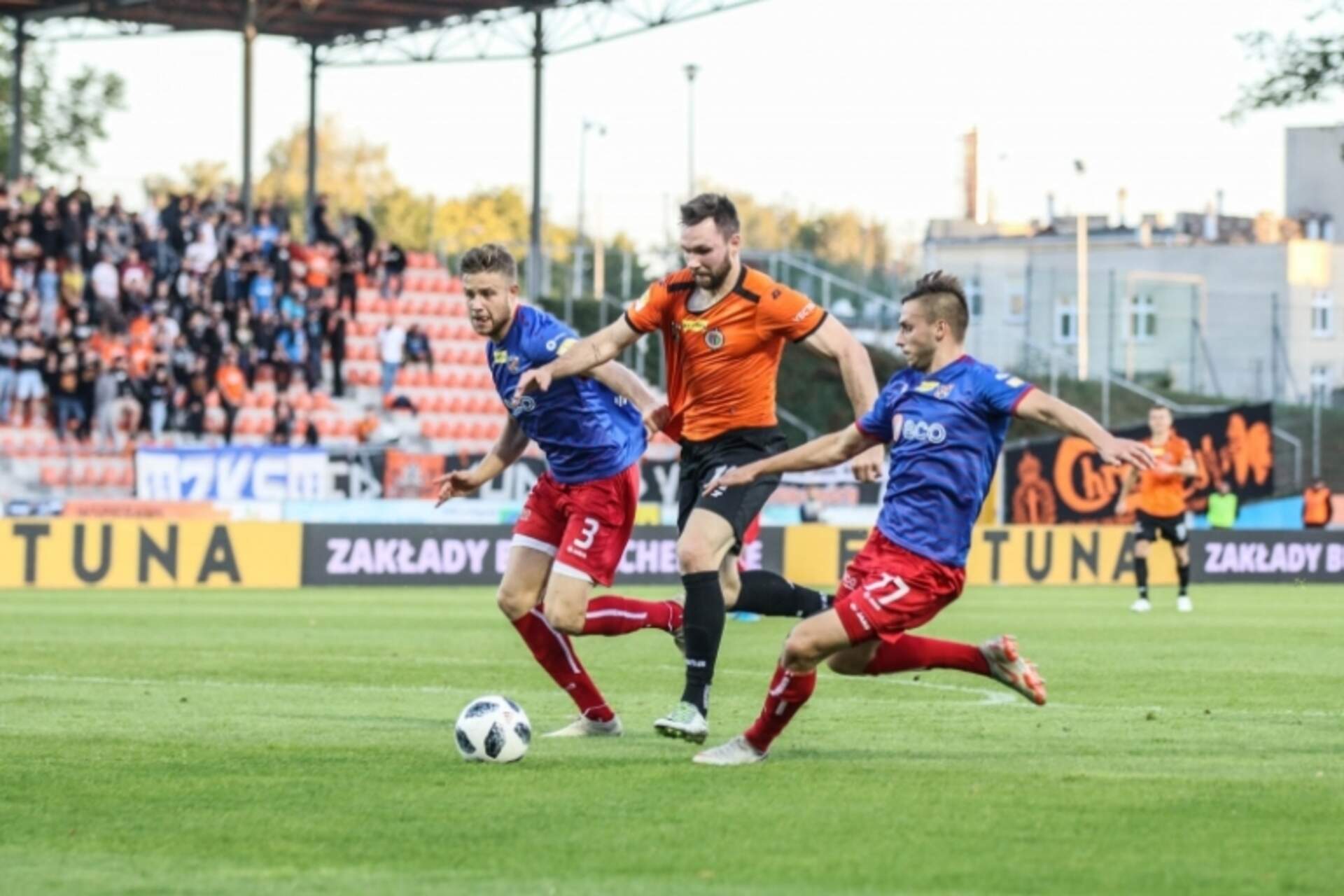 Duża stawka. Przed Opolem Po raz drugi w tym sezonie mecz Chrobrego z Odrą Opole ma bardzo dużą stawkę i jest kolejnym bezpośrednim w walce o utrzymanie. W rundzie jesiennej dodatkowo towarzyszyło mu bardzo dużo emocji, bo z 2:0 zrobiło się 2:2, a… 18-06-2020 10:12 autor: ŁJ Po raz drugi w tym sezonie mecz Chrobrego z Odrą Opole ma bardzo dużą stawkę i jest kolejnym bezpośrednim w walce o utrzymanie. W rundzie jesiennej dodatkowo towarzyszyło mu bardzo dużo emocji, bo z 2:0 zrobiło się 2:2, a zwycięską bramkę na 3:2 już w doliczonym czasie gry zdobył Michał Ilków-Gołąb. W piątek o godz. 20.10 w Opolu rewanż. Poczytajcie więcej o zbliżającym się spotkaniu. O KLUBIEObchodząca we wtorek 75-lecie powstania Odra Opole swoje najlepsze czasy miała w latach 60-tych, zajmując wtedy trzecie miejsce w najwyższej lidze i trzecie w Pucharze Polski. W 1981 roku zakończyła swój udział w ówczesnej pierwszej lidze i przez tyle lat nie udało jej się tam powrócić. Co prawda jeszcze na początku tysiąclecia awansowała do półfinału PP, ale przez kolejne lata zespół był kojarzy bardziej z trzecią ligą, w jednym z sezonów będąc nawet w czwartej. Obecnie próbuje zbudować podwaliny pod nawiązanie do bardzo odległych już czasów. Zespół na zapleczu rywalizuje trzeci sezon z rzędu i choć walczy o jego utrzymanie, to pracę wykonuje się też w obrębie klubu. Stąd przekształcenie w miejską spółkę i zapowiedziana już wcześniej budowa nowego stadionu w innej lokalizacji miasta. Prace z tym związane najpewniej nie rozpoczną się w tym roku, ale same deklaracje, wcześniejsze rozstrzygnięcie konkursu są już czymś.BILANS SPOTKAŃTaką wisienką w historii 19 spotkań jest mecz z rundy jesiennej. Chrobry pokonał Odrę 3:2, choć jeszcze w 83 minucie było 2:0, a gdy rozpoczynał się doliczony czas już 2:2. Zwycięskiego, pamiętnego gola w ostatniej akcji zdobył Michał Ilków-Gołąb i tym zapewnił Chrobremu ósme zwycięstwo z Odrą. Tyle samo mają opolanie, którzy po raz ostatni wygrali w kwietniu ubiegłego roku - wówczas na stadionie w Głogowie zwyciężyli 2:1.Już pojedynek z jesieni miał dużą wagę. Obie ekipy zajmowały dwa ostatnie miejsca bez szans na szybkie opuszczenie strefy. Punkt przewagi był po stronie Pomarańczowo-Czarnych i to oni lepiej udźwignęli ten ciężar. Teraz zdaje się być on jeszcze pokaźniejszy, bo choć Chrobry ma trzy punkty więcej, to nikt nie chce być w strefie spadkowej na kilka kolejek przed końcem. A być albo w niej nie być jest tym razem stawką.FORMAZ zespołów, które po przerwie były w strefie spadkowej, Odra robi najwięcej w kierunku wydostania się z niej. W czterech meczach przegrała tylko raz - z GKS-em Jastrzębie 1:2, choć nawet wtedy przez moment prowadziła, decydującego - samobójczego w tym przypadku - gola tracąc na sześć minut przed końcem. Poza tym 0:0 z Radomiakiem, ostatnio 1:1 z Sandecją, której dobra forma pozwoliła zbliżyć się do baraży, a zwłaszcza 2:0 z Wartą Poznań każą budzić uznanie. Kłopotów Odry należy szukać z przodu. O Chrobrym mówiło się, że niewiele strzela (po przerwie tylko jeden gol, ale ogółem ma ich 27), choć to Odra zdobytych bramek ma mniej (23).O KADRZEOd grudnia trenerem Odry jest Dietmar Brehmer, pod którego okiem zimą doszło do kilku wzmocnień. Nimi jakoś szczególnie nie przeobrażono kadry (w podstawie gra tylko 20-letni Kacper Tabiś z GKS-u Katowice), ale od strony personalnej o Odrze i tak mówi się, że to nie jest drużyna na spadek. Przede wszystkim ma Arkadiusza Piecha i ten Arkadiusz Piech potrafi swoim doświadczeniem pomóc w trudniejszym momencie (dwie bramki po przerwie). Ogranymi, mniej lub bardziej nawet na wyższym poziomie, piłkarzami są też Szymon Skrzypczak, Krzysztof Janus, Miłosz Trojak czy Dawid Błanik. Po kontuzji powrócił jeden z najbardziej kojarzonych z tamtym regionem Rafał Niziołek, a my szczególnie kojarzymy Sebastiana Boneckiego.Obecnie gra toczy się co kilka dni i być może dlatego trener Brehmer stosuje rotacje. Przyjęło się mówić, żeby nie zmieniać zwycięskiego składu, a kilku zawodników tworzących jedenastkę na Wartę, w tej na Sandecję już się nie znalazło (Janus i Niziołek wchodzili z ławki).KLUBOWE POWIĄZANIAW sezonie 2018/19 bramkarzem Odry był podstawowy teraz golkiper Chrobrego Michał Szromnik. Wtedy rozegrał 18 meczów, a Odra sezon zakończyła na 12 miejscu. Po drugiej stronie jest Sebastian Bonecki, który będąc w Głogowie zaliczył bardzo udany dla siebie sezon 2016/17. Gdyby nie odniesiona zaraz po nim kontuzja, może dziś byłby w innym miejscu, jednak fakt jest taki, że gra dla Odry, w barwach której występuje w podstawie (w tym sezonie 25/1).