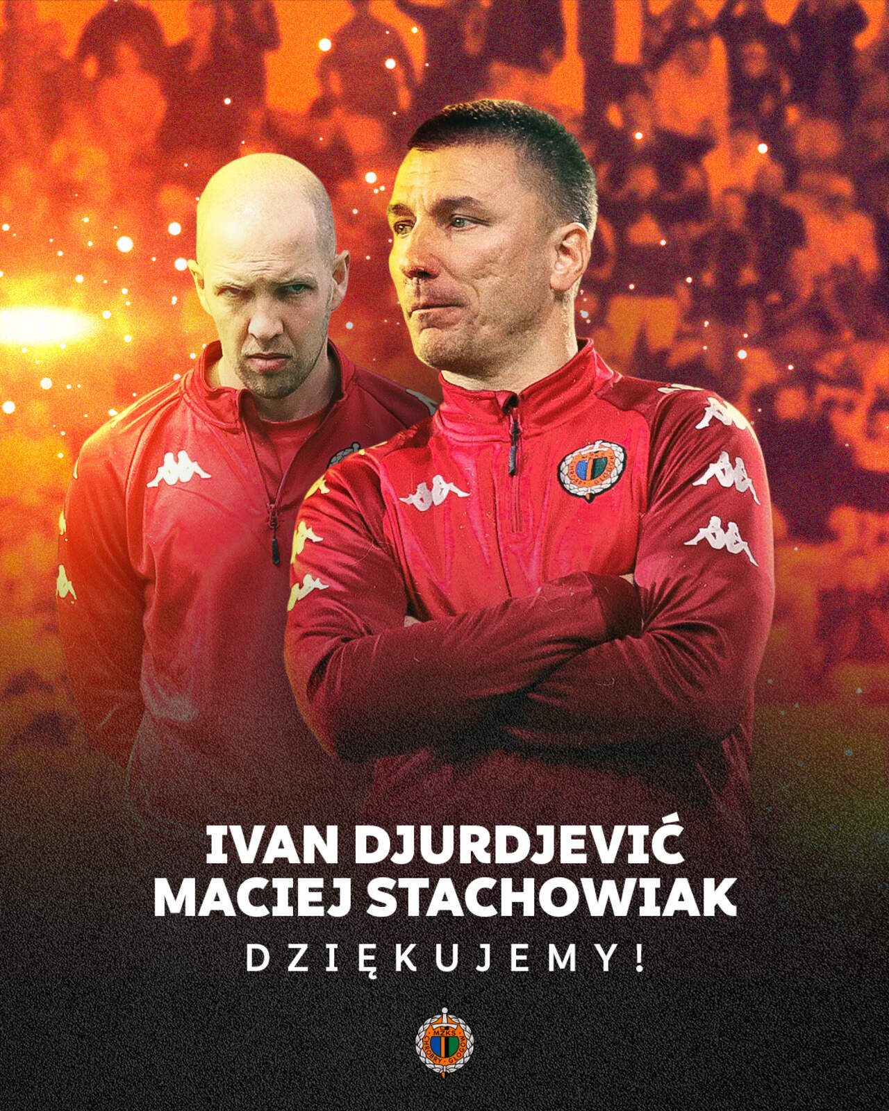 DZIĘKUJEMY ZA WSZYSTKO! Trener Ivan Djurdjević i II trener Maciej Stachowiak kończą misję w Chrobrym Głogów. 30-05-2022 06:16 autor: ŁJ Mecz w Kielcach był ostatnim trenerów Ivana Djurdjevicia i Macieja Stachowiaka w Chrobrym Głogów. Ich trzyletnia misja w Chrobrym dobiegła końca i teraz przed oboma trenerami nowe wyzwania. Swoje odejście trenerzy zapowiedzieli jeszcze w trakcie sezonu. Został zakończony 6. miejscem w Fortuna 1 Lidze i najważniejszym meczem w historii klubu, którego stawką był awans do Ekstraklasy. - W pierwszym roku po dziewiątym przegranym meczu dyrektor wchodzi do autobusu i mówi: spokojnie, damy radę. Daliśmy, zbudowaliśmy bardzo mocny zespół i mocny klub, kibiców i miasto, które odżyło, mogło żyć przez chwilę nadzieją. Może się wydawać, że to mało, ale z perspektywy czasu nabierze wielkiego sensu. Żeby coś w życiu wygrać, trzeba nauczyć się przegrywać - powiedział po ostatnim meczu trener Ivan Djurdjević. Trener Ivan Djurdjević jest w Chrobrym od początku sezonu 2019/20. Od tamtego momentu zespół pod jego wodzą rozegrał 107 meczów, w których odniósł 40 zwycięstw, 26 remisów i poniósł 41 porażek. W pierwszym roku Pomarańczowo-Czarni pod wodzą szkoleniowców zajęli 7. miejsce ocierając się o baraże, w kolejnym 11. miejsce, a w tym drużyna powtórzyła największe osiągnięcie z 2016 roku – 6. miejsce i po raz pierwszy wzięła udział w barażach o awans do Ekstraklasy, przegrywając dopiero w finale. DZIĘKUJEMY ZA WSZYSTKO! POWODZENIA DALEJ!