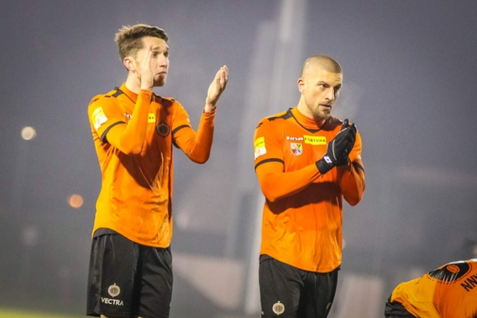 F1L: od zera do bezpiecznego miejsca Był moment, że Chrobry do bezpiecznego miejsca tracił już siedem punktów. Trudny dla siebie czas kończy jednak na niezagrożonej pozycji. Pomarańczowo-czarni w efektowny sposób odbili się od dna, i choć finisz należał do… 02-12-2019 12:04 autor: ŁJ Był moment, że Chrobry do bezpiecznego miejsca tracił już siedem punktów. Trudny dla siebie czas kończy jednak na niezagrożonej pozycji. Pomarańczowo-czarni w efektowny sposób odbili się od dna, i choć finisz należał do trudnych, na sam koniec byli w stanie to obronić. Punkt z Olimpią Grudziądz sprzed kilku dni daje 15 lokatę z taką samą liczbą punktów, jak 16 Odra Opole, z punktem przewagi nad Wigrami Suwałki i czterema nad Chojniczanką Chojnice. Jeszcze dwa miesiące temu brzmiało to niemal nierealnie.W końcówce, gdy drużyna borykała się z dużymi problemami kadrowymi i była w stanie tylko zremisować z Olimpią, trochę pomogły rezultaty z innych stadionów. Spośród drużyn będących za Chrobrym, w ostatniej kolejce punkt zdobyła jedna. Odra Opole zremisowała z GKS-em Tychy 0:0 i przy równej liczbie punktów nadal jest za głogowianami, bo bezpośredni mecz przegrała. Widać, ile może znaczyć takie 3:2 z Odrą po bramce Michała Ilkowa-Gołąba w doliczonym czasie gry.Długą zimową przerwę nie wszyscy spędzą w choć trochę pozytywnych nastrojach. Na ostatnim miejscu pozostanie Chojniczanka Chojnice, która przegrała z Olimpią Grudziądz 1:3 zaczynając od samobójczego trafienia Jacka Podgórskiego. To była jej piąta porażka z rzędu.- Chciałbym jak najszybciej zatrzasnąć drzwi i otworzyć drugie. Mogę tylko obiecać, że będzie się lał pot, bo trzeba się wziąć do pracy - mówił trener Chojniczanki Zbigniew Smółka.Przełamała się Puszcza Niepołomice, która wygrała po raz pierwszy od ponad miesiąca. Na koniec pokonała Sandecję Nowy Sącz 1:0, a trzecią bramkę w trzecim kolejnym występie zdobył Jose Embalo. Jednym golem zwyciężyło też Zagłębie Sosnowiec (1:0 z Termaliką Nieciecza po trafieniu również mającego taką serię, jak Embalo Fabiana Piaseckiego), a Stomil Olsztyn jest pierwszym zespołem, który zdołał wygrać w Jastrzębiu. Olsztynianie pokonali GKS 2:1, o czym zadecydował wykorzystany przez Grzegorza Lecha rzut karny z 88 minuty. Dla Stomilu był to pierwszy komplet od 28 września.Na pierwszym miejscu przezimuje Warta Poznań. 3:0 z Wigrami Suwałki to jej dwunaste zwycięstwo w sezonie. W ostatnich siedmiu kolejkach zespół przegrał tylko raz, więc na górze jest w pełni zasłużenie. Dwa lata temu dwie czołowe lokaty należały do Chojniczanki Chojnice i Odry Opole. Drużyny tempa nie utrzymały, a dziś muszą walczyć o utrzymanie, co pokazuje, że granica jest bardzo cienka. Wydaje się jednak, że Warta najgorsze już przeszła rok temu nie wiedząc czy dane jej będzie brać udział w rozgrywkach, a teraz idzie w zupełnie innym kierunku.20 kolejka Fortuna 1 Ligi:Zagłębie Sosnowiec - Bruk-Bet Termalica Nieciecza 1:0Fabian Piasecki 78Stal Mielec - Podbeskidzie Bielsko-Biała 2:1Mateusz Żyro 13, Mateusz Mak 15 - Łukasz Sierpina 43 (k)GKS Jastrzębie - Stomil Olsztyn 1:2Jakub Wróbel 3 - Wojciech Hajda 29, Grzegorz Lech 88 (k)Chojniczanka Chojnice - Olimpia Grudziądz 1:3Mateusz Kuzimski 42 - Jacek Podgórski 17 (s), Joao Criciuma 58, 77Sandecja Nowy Sącz - Puszcza Niepołomice 0:1Jose Embalo 62Radomiak Radom - GKS Bełchatów 2:0Mateusz Michalski 6, Patryk Mikita 49 (k)Warta Poznań - Wigry Suwałki 3:0Gracjan Jaroch 27, Mateusz Kupczak 52 (k), Michał Ozga 90 (s)Odra Opole - GKS Tychy 0:0Chrobry Głogów - Miedź Legnica 0:2Jakub Łukowski 45, Marquitos 68