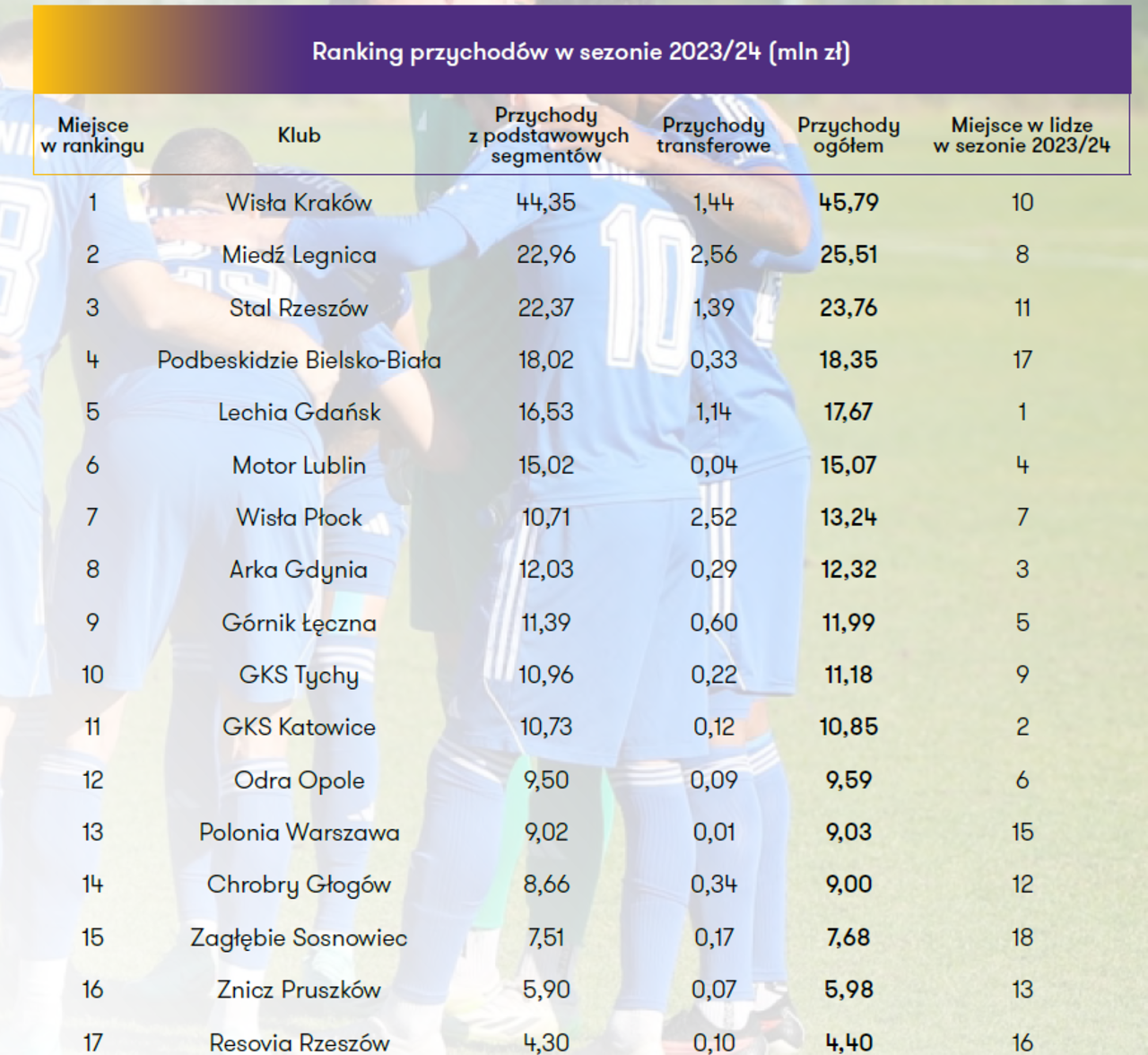 Ćwierć miliarda przychodów pierwszoligowych klubów (raport) Pod względem budżetowym ostatni sezon był najlepszym w historii Betclic 1 Ligi. Kluby osiągnęły 251 mln zł przychodów ogółem, czyli o 29% więcej niż w rekordowym do tej pory sezonie 2022/2023 – wynika z raportu „Finansowa pierwsza liga”, przygotowanego przez firmę audytorsko-doradczą Grant Thornton we współpracy z Pierwszą Ligą Piłkarską. 05-11-2024 05:24 autor: ŁJ Jak wynika z danych zebranych od klubów, w sezonie 2023/2024 przychody ogółem klubów biorących udział w rozgrywkach Betclic 1 Ligi przekroczyły 251 mln zł (dane nie uwzględniają klubu Bruk-Bet Termalica Nieciecza, który nie zdecydował się udostępnić danych). To zdecydowanie najwyższy wynik w historii – o 29% wyższy niż w sezonie poprzednim i o 156% wyższy niż cztery lata temu. Nawet jeśli uwzględnić podwyższoną inflację w Polsce w ostatnich latach, tzn. 5% w trakcie ostatniego sezonu oraz 39% w ostatnich 4 latach, wzrost ten jest imponujący. - Wraz z sezonem 2023/24 zakończył się pewien etap w rozwoju 1 Ligi. Po – odpowiednio – dziewięciu i siedmiu latach zakończyła się współpraca Polskiego Związku Piłki Nożnej i Pierwszej Ligi Piłkarskiej ze strategicznymi partnerami rozgrywek: Telewizją Polsat i firmą Fortuna. Ostatni rok wspólnego działania jeszcze bardziej wzmocnił pierwszoligowe środowisko, co znalazło odzwierciedlenie nie tylko w rosnącej frekwencji czy rekordowej liczbie transmisji, ale także w znaczącym wzroście wartości przychodów generowanych przez kluby – komentuje Marcin Janicki, prezes zarządu Pierwszej Ligi Piłkarskiej. Największym źródłem przychodów klubów pierwszoligowych były – podobnie jak w poprzednich latach - tzw. przychody komercyjne, a więc przede wszystkim wpływy od reklamodawców czy sponsorów wynikające z umów podpisanych bezpośrednio przez klub. W sezonie 2023/2024 wyniosły one 170 mln zł, czyli stanowiły 68% generowanych wpływów ogółem, a w porównaniu z sezonem 2022/2023 wzrosły o 30% (39 mln zł). To pokazuje, że kluby Betclic 1 Ligi w coraz bardziej profesjonalny sposób przyciągają biznes i potrafią przekonać firmy do wykorzystania ich możliwości promocyjnych. Dzień meczowy, dniem przychodowym Drugim największym segmentem przychodów były w tym roku tzw. przychody z dnia meczowego, a więc uzyskane np. ze sprzedaży biletów czy usług cateringowych. Wzrosły przez rok o 79% i sięgnęły 35,2 mln zł. To skutek wysokiej frekwencji na meczach (o czym dalej), ale też rozwoju infrastruktury stadionowej i coraz wyższej specjalizacji komórek odpowiadających w klubach za komercjalizację dnia meczowego. Skokowy wzrost przychodów z tego segmentu po raz pierwszy wyprzedził trzeci segment przychodów klubów, a więc tzw. scentralizowane prawa mediowe i marketingowe. Są to wpływy, jakie kluby otrzymują od Pierwszej Ligi Piłkarskiej z tytułu centralnie zawieranych umów dotyczących transmisji czy kontraktów reklamowych i sponsorskich. Wpływy te również wzrosły, choć w mniejszym stopniu niż w poprzednich dwóch segmentach – wyniosły 34,9 mln zł wobec 34,2 mln zł przed rokiem. - W ostatnim sezonie kluby Betclic 1 Ligi postawiły kolejny krok w stronę rozwoju biznesowego. Osiągnęły wzrost przychodów we wszystkich badanych przez nas kategoriach. Cieszy zwłaszcza fakt, że coraz skuteczniej pozyskują własnych sponsorów i coraz lepiej potrafią zarabiać na samej organizacji meczu, nie tylko przyciągając kibiców na stadiony, ale też organizując kluby biznesowe czy sprzedając możliwość oglądania meczów w lożach VIP – komentuje Tomasz Mleczak, partner w zespole Corporate Finance w Grant Thornton. Pierwszoligowe stadiony coraz mocniej zapełnione Co ważne, na stadionach klubów Betclic 1 Ligi kolejny rok z rzędu dynamicznie rośnie również frekwencja. W minionym sezonie na trybunach zasiadło łącznie 1,5 mln kibiców, a jeden mecz ligowy oglądało średnio 4,4 tys. osób, czyli o 26% więcej niż rok wcześniej i o 58% więcej niż dwa sezony temu. To efekt nie tylko rosnącej popularności rozgrywek wśród kibiców, ale też rozwoju stadionów i innej infrastruktury klubów. - Popyt na emocje sportowe po pandemii z roku na rok w Polsce rośnie, a Betclic 1 Liga i jej kluby pokazuję, że coraz lepiej potrafią tę falę wykorzystać, aby rozwijać się na polu biznesowym i finansowym. A to oznacza jeszcze lepiej skrojoną pod potrzeby kibica ofertę i profesjonalną jej realizację w praktyce. Oczywiście nadal przestrzeń do poprawy jest duża, wiele klubów nadal zmaga się niewystarczającymi budżetami, ale postęp w ostatnich latach jest widoczny – mówi Łukasz Słyż, menedżer w Departamencie Audytu w Grant Thornton. Wisła Kraków z przychodowym mistrzostwem Choć Wisła Kraków nie zdołała awansować do PKO BP Ekstraklasy, to pod względem biznesowym krakowski klub w minionym sezonie utrzymał tytuł lidera, z ogromną przewagą nad resztą klubów. Osiągnął przychody ogółem na poziomie 45,8 mln zł, czyli o prawie 10 mln zł więcej niż w poprzednim sezonie i prawie dwukrotnie więcej niż kolejne dwa kluby w rankingu. Biała Gwiazda ze swoimi przychodami spokojnie odnalazłaby się nawet w Ekstraklasie – w minionym sezonie taki wynik dałby jej wysokie 10. miejsce wśród klubów najwyższej ligi. Wisła sukces ten zawdzięcza przede wszystkim wysokim przychodom komercyjnym, głównie z umów sponsorskich i reklam, które przyniosły jej 27,7 mln zł. Jak pokazują prezentowane w raporcie dane firmy Pentagon Research, Biała Gwiazda w trakcie sezonu aż 666,1 tys. razy wyeksponowała marki swoich sponsorów oraz wygenerowała dla swojego miasta, Krakowa, wartość promocyjną szacowaną na 95,5 mln zł (teoretycznie tyle musiałby zapłacić urząd miasta Krakowa za reklamy w mediach, aby osiągnąć analogiczną korzyść wizerunkową). Według danyc