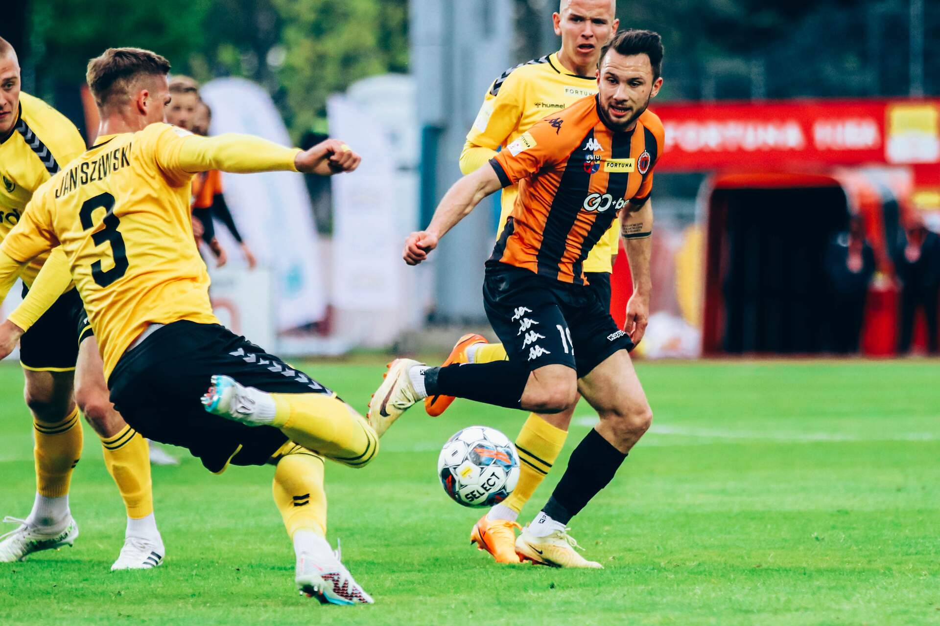 Bramkowe przełamanie i punkt z Tychów Jeszcze bez wygranej, ale z bramkowym przełamaniem. Chrobry remisuje w Tychach 2:2. 14-05-2023 05:00 autor: ŁJ Zaczęło się dosyć niefortunnie. W 15 minucie w polu karnym doszło do pojedynku Alberta Zarównego z Mateusz Czyżyckim, a po analizie VAR sędzia Piotr Idzik zdecydował się na rzut karny. Z jedenastego metra Damiana Węglarza pokonał Krzysztof Wołkowicz. Chrobry jednak nie złożył broni i szybko odpowiedział. W 23 minucie po serii podań i dobrej wrzutce Jakuba Kuzdry z prawej strony celnie główkował Patryk Mucha. Upragniona bramka - bo pierwsza po ponad 350 minutach (ostatnią zresztą zdobył też Patryk Mucha i też w… 23 minucie) – podziałała mobilizująco na Pomarańczowo-Czarnych. Nie czekali oni na drugą odsłonę i już w 45 minucie, tuż przed zejściem do szatni objęli prowadzenie. Sprawy na siebie wziął Sebastian Steblecki. Były gracz GKS-u Tychy wywalczył jedenastkę, bo po jego dograniu ręką zagrał zawodnik tyszan, i sam zamienił ją na gola. Po pierwszej odsłonie Chrobry wreszcie był na prowadzeniu. Tych goli mogło być więcej, ponieważ po próbach z dystansu w wykonaniu Krzysztofa Wołkowicza i Jaki Kolenca dobrze interweniowali obaj golkiperzy, niemniej jednak pod względem wypracowanych szans głogowianie zasłużenie prowadzili. W drugiej części gospodarze dążyli do wyrównania. Dużym ostrzeżeniem była szansa, przed którą w 74 minucie stanął Krzysztof Wołkowicz, ale w sytuacji sam na sam świetnie bronił Damian Węglarz. W ostatnich minutach wzmocniono więc szyki obronne. Na boisko wszedł Michał Michalec, tyle że miejscowi poniekąd obeszli to uderzeniem z dalszej odległości. Tak w 82 minucie strzelił Mateusz Czyżycki i po nim futbolówka odbijając się od poprzeczki wpadła do środka. Ten gol był jednocześnie ustalającym rezultat pojedynku. Spotkanie w Tychach zakończyło się na remisie 2:2. Do końca sezonu pozostały już tylko trzy mecze, w tym dwa najbliższe na stadionie w Głogowie. W poniedziałek 22 maja o godz. 18.00 Chrobry zagra ze Skrą Częstochowa.