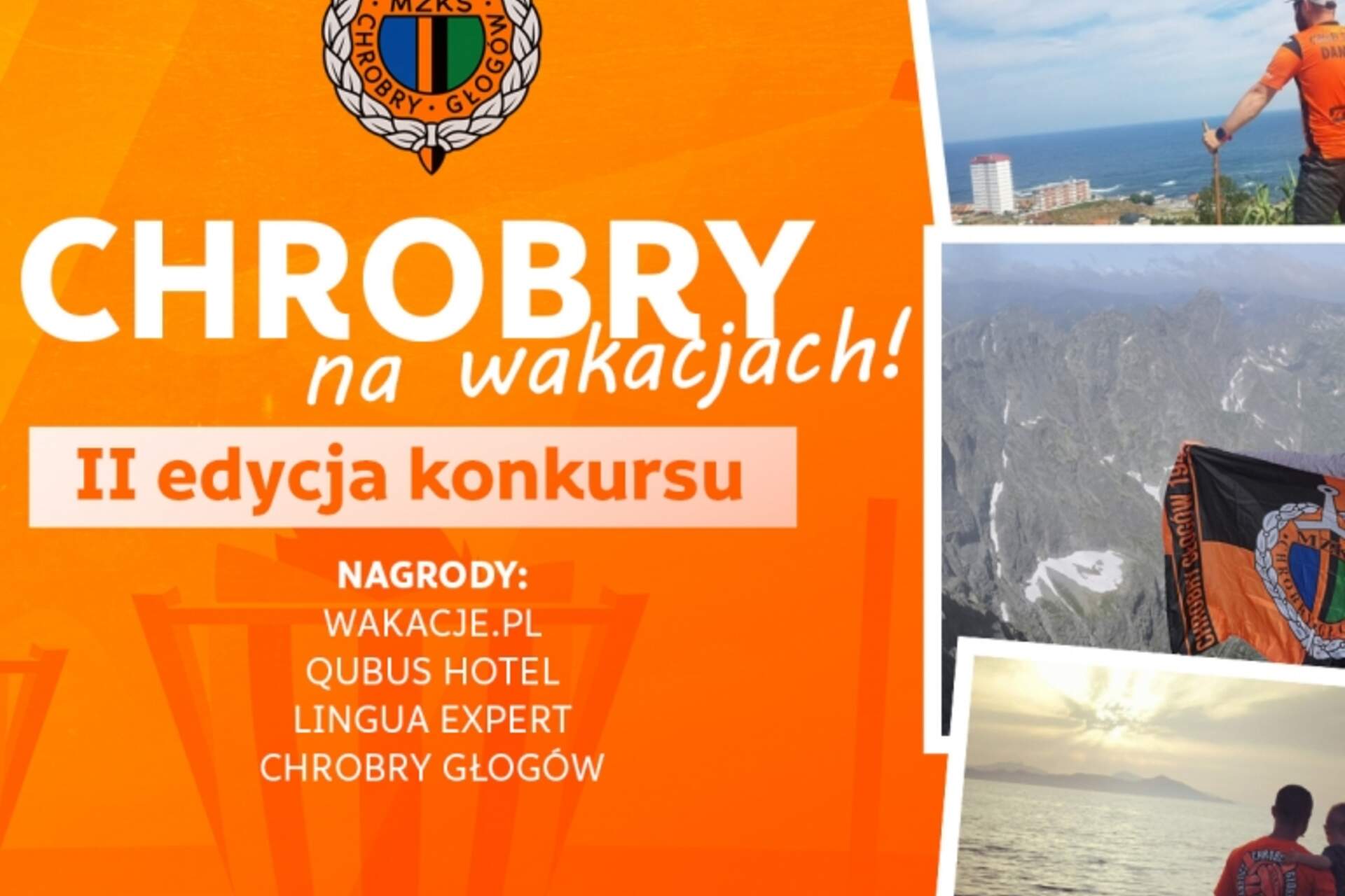 II edycja Chrobry na Wakacjach Początek lata i wakacji oznaczają drugą edycję konkursu dla kibiców Chrobrego Głogów „Chrobry na wakacjach”, w którym do wygrania są nagrody o łącznej wartości 1500 zł. Podróżując pamiętajcie o swoim klubie,… 29-06-2020 02:09 autor: ŁJ Początek lata i wakacji oznaczają drugą edycję konkursu dla kibiców Chrobrego Głogów „Chrobry na wakacjach”, w którym do wygrania są nagrody o łącznej wartości 1500 zł. Podróżując pamiętajcie o swoim klubie, dokumentujcie to na zdjęciach i je nam wysyłajcie!1) dokumentujcie na fotografiach swoje wakacyjne podróże i zwiedzanie ciekawych miejsc, ale z Chrobrym w tle - Wy w klubowych barwach lub same klubowe barwy w charakterystycznym, ciekawym otoczeniu2) wyślijcie je do nas na Facebooka lub klub@chrobry-glogow.pl. Wysłanie jest jednocześnie zgodą na ich wykorzystanie w celu publikacji na naszych kanałach oraz realizacji wystawy3) zdjęcia nadsyłajcie do 31.08.2020 roku. Po tym terminie wybierzemy trzy najciekawsze, najbardziej pomysłowe lub najbardziej efektowne, które zostaną nagrodzone4) Sponsorami konkursu są Wakacje.pl Głogów, Qubus Hotel Głogów, Lingua-Expert Głogów oraz klub, którzy fundują następujące nagrody o łącznej wartości 1500 zł:- bon wakacyjny do realizacji w biurze podróży Wakacje.pl o wartości 300 zł- weekendowy pobyt w wybranym hotelu Qubus na terenie całej Polski- bon na dwa miesiące nauki języka angielskiego w grupie w Lingua Expert na wybranym poziomie- klubowa walizka podróżna5) z konkursu wyłączamy zdjęcia przyklejonych naklejek i innych czynności mogących stanowić naruszenie czyichś dóbr TAK BYŁO - CHROBRY NA WAKACJACH 2019 1 miejsce Damian pieszo pokonał 300-kilometrową drogę z Porto do Santiago de Compostela. 2 miejsce Tatry, Rysy - Rafał zdobył najwyższy szczyt Polski 3 miejsce